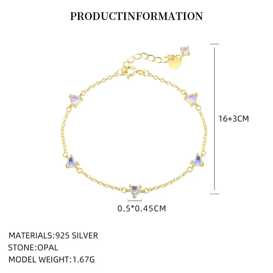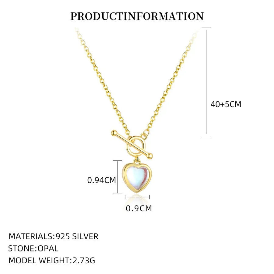 Colorful Moonstone Series Jewelry Set S925 Sterling Silver Silver OT Clasp Heart Pendant Necklace for Women