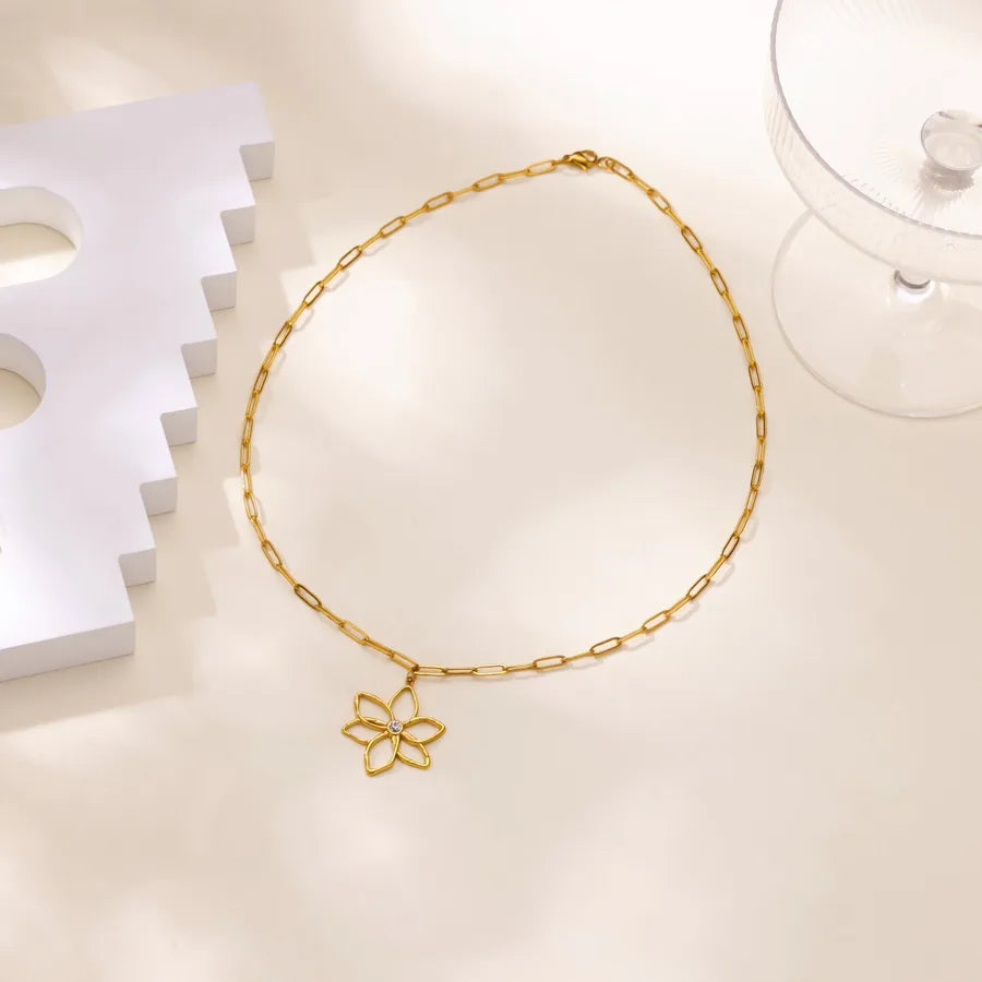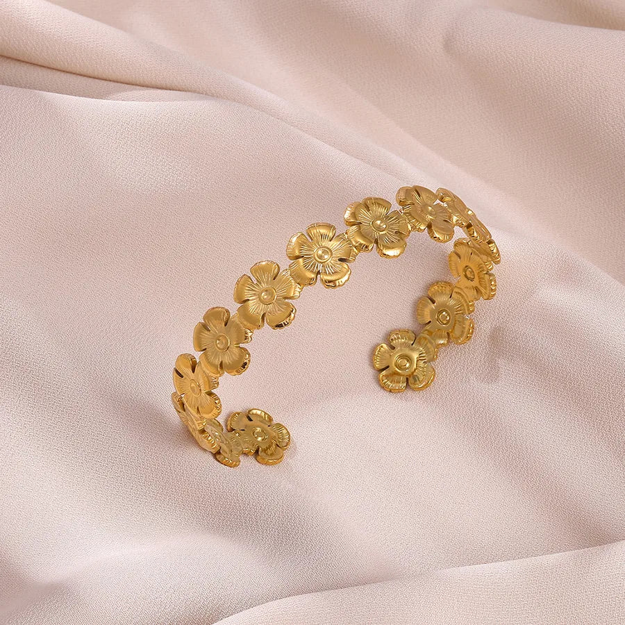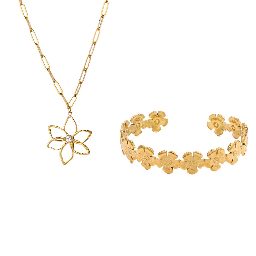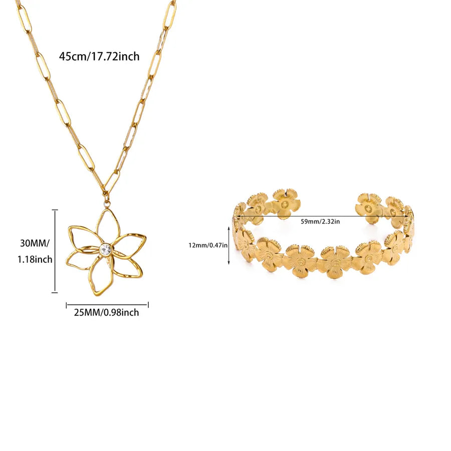 Two-Piece Floral Set Jewelry 18K Gold Plated Women's 304 Stainless Steel Floral Necklace Bracelet Accessories Valentine's Day Waterproof Non-Fading Cable Chain Cross Chain O Chain Jewelry Set Unisex