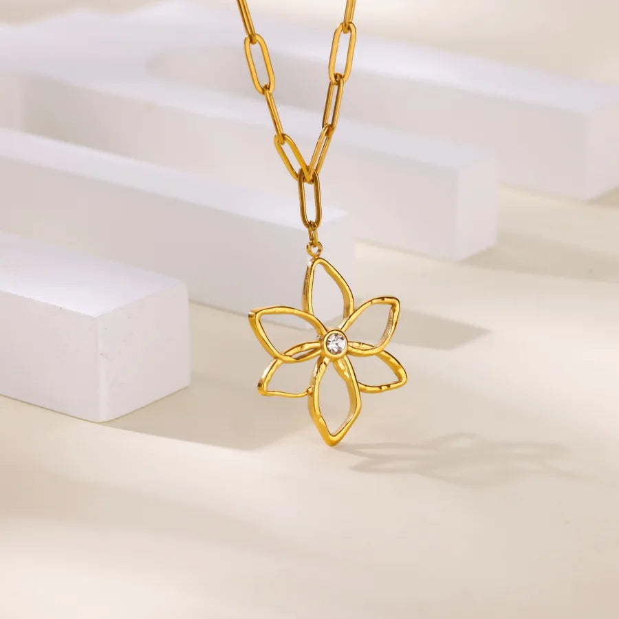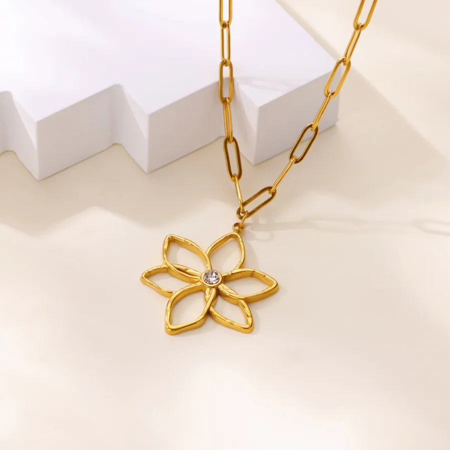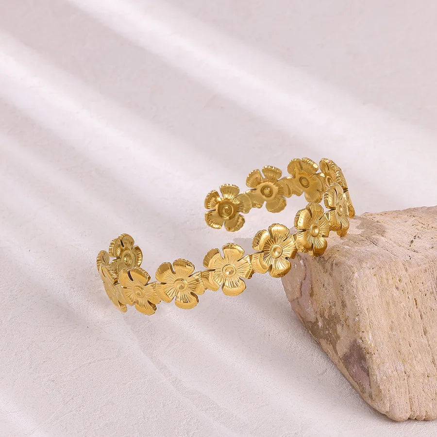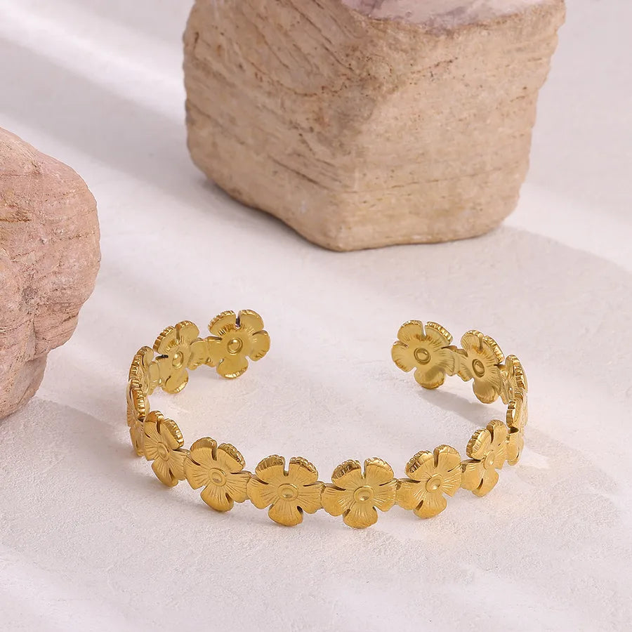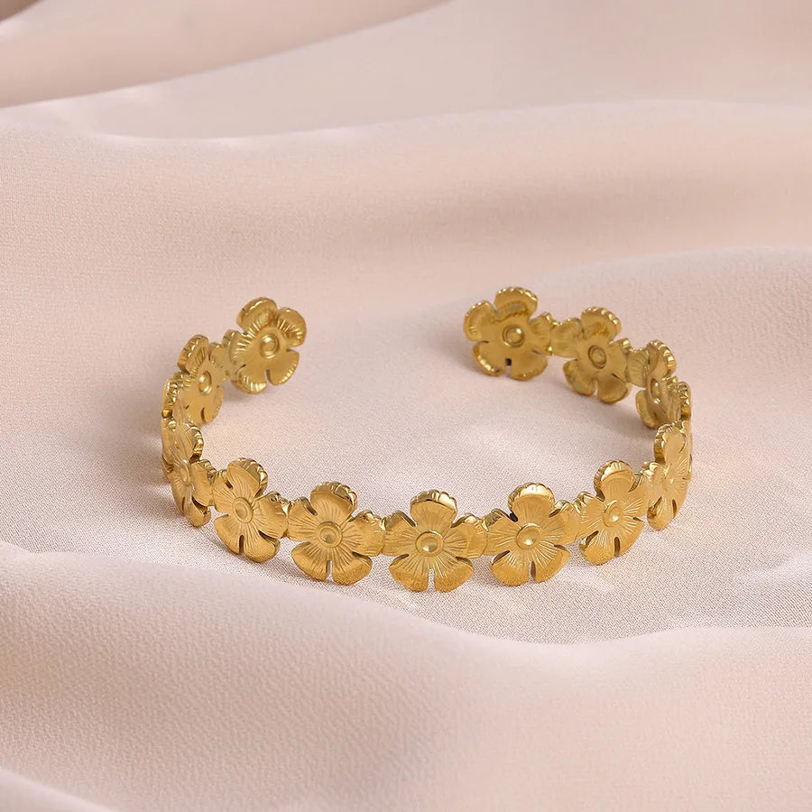 Two-Piece Floral Set Jewelry 18K Gold Plated Women's 304 Stainless Steel Floral Necklace Bracelet Accessories Valentine's Day Waterproof Non-Fading Cable Chain Cross Chain O Chain Jewelry Set Unisex