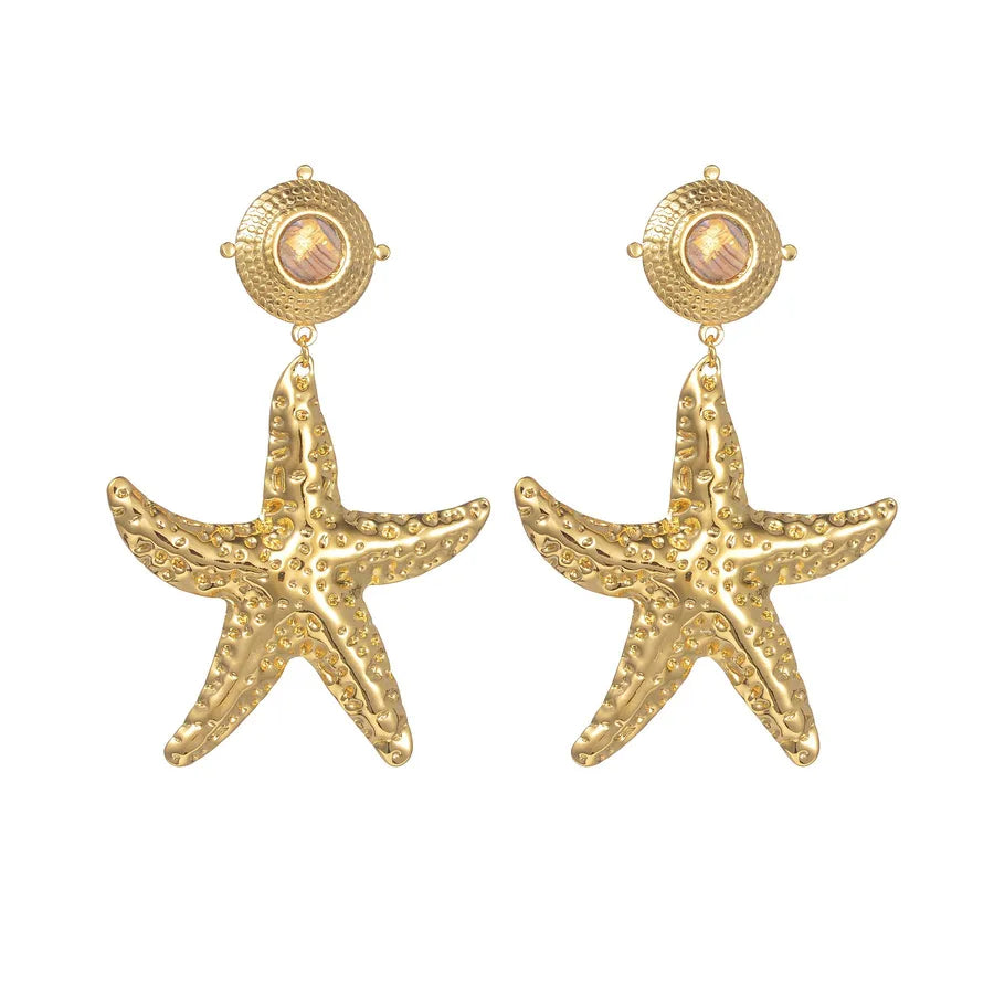 Metal Wrinkled Large Earrings for Women Stainless Steel Abalone Shell Studs Ocean Starfish Ear Jewelry Summer