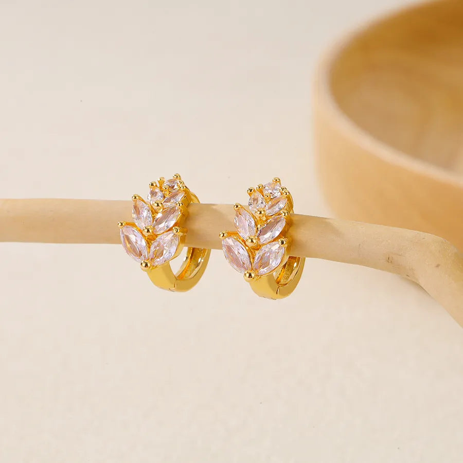 1 Pair Elegant Heart Shape Flower Bow Knot Inlay Copper Zircon Hoop Earrings