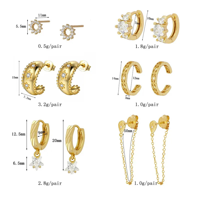 1 Pair Formal Roman Style U Shape Geometric Star Inlay Copper Zircon Ear Studs