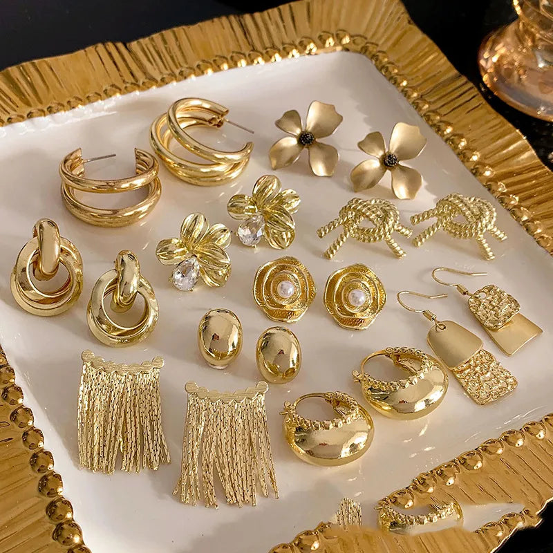 1 pair lady streetwear geometric flower plating inlay copper zircon earrings