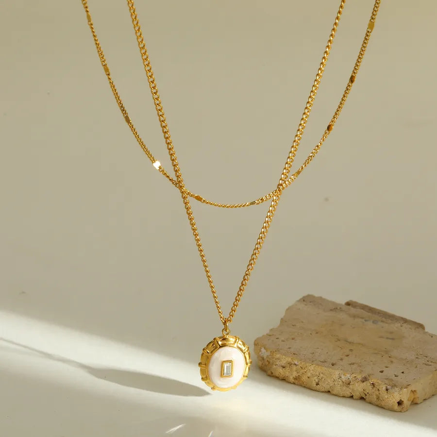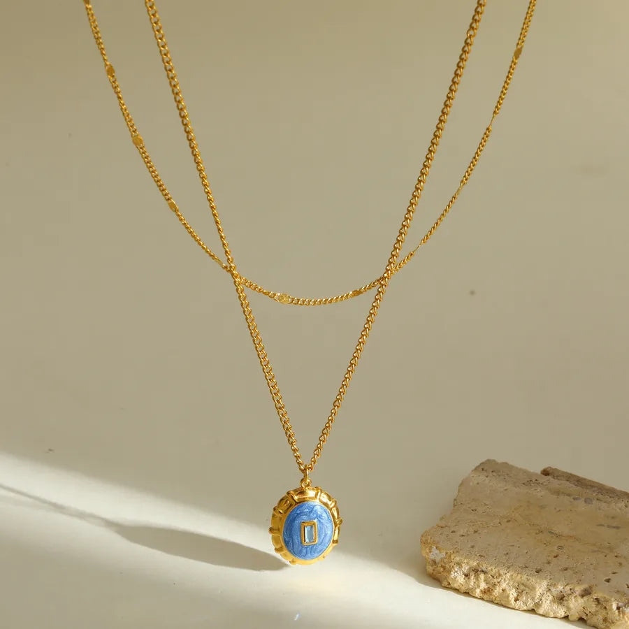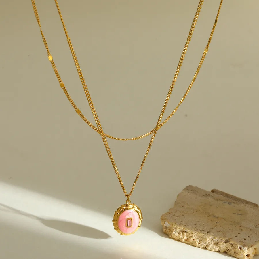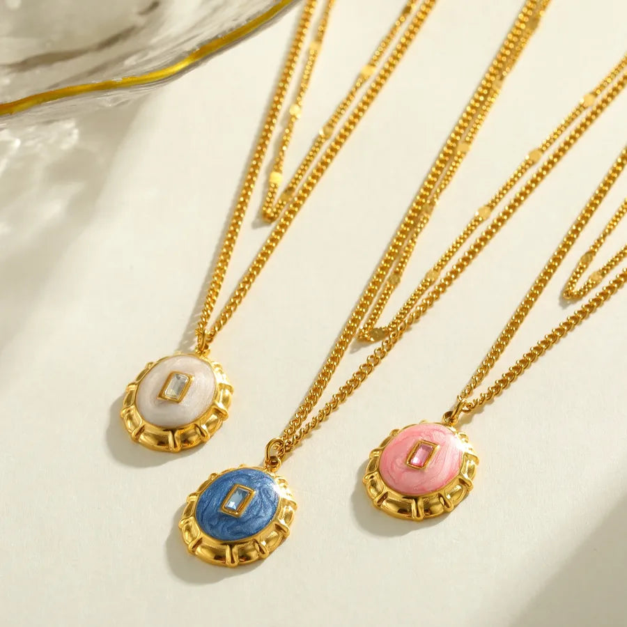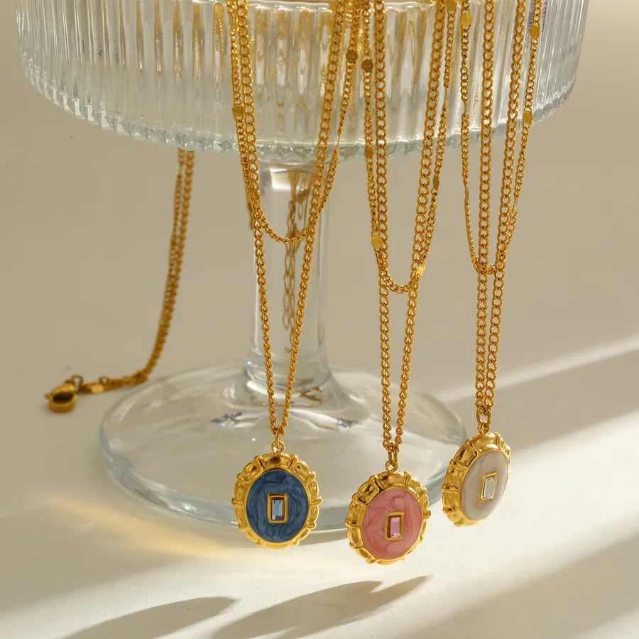 18K Gold Plated 304 Stainless Steel Vacuum Electroplating (In Furnace) Round Oil Drop Cable Chain Pendant Necklace for Women