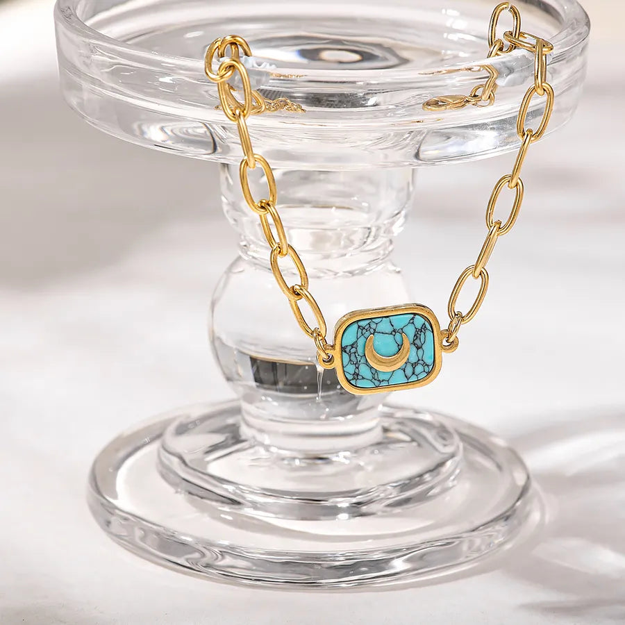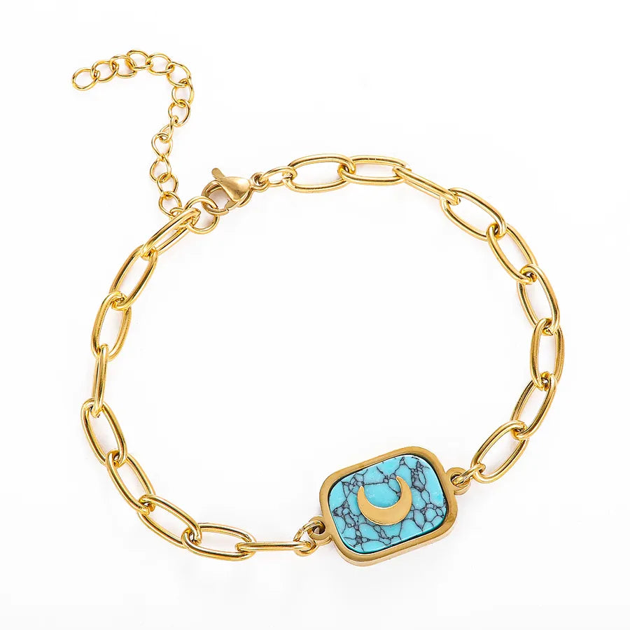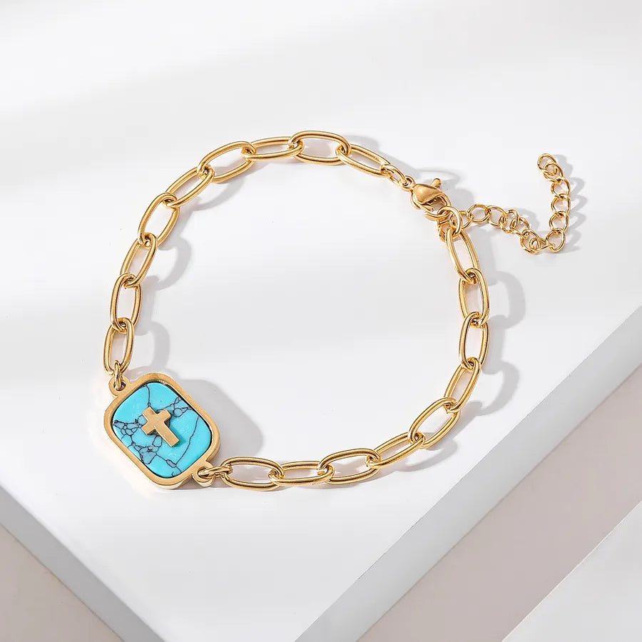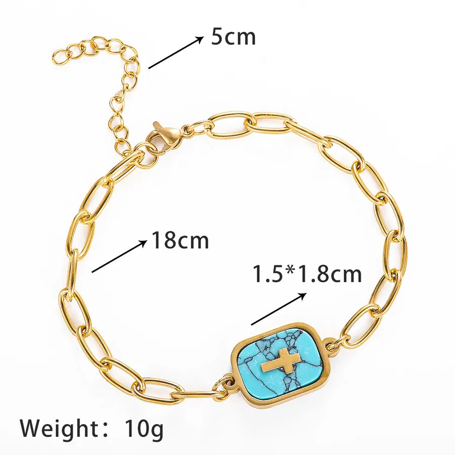 18K Gold Plated 304 Stainless Steel Vacuum Electroplating (In Furnace) Turquoise Cross Moon (Jewelry) Waterproof Non-Fading Cable Chain/Cross Chain/O Chain Bracelet for Women