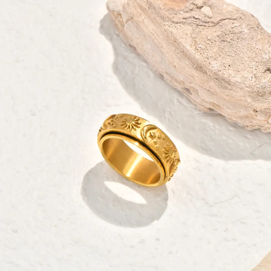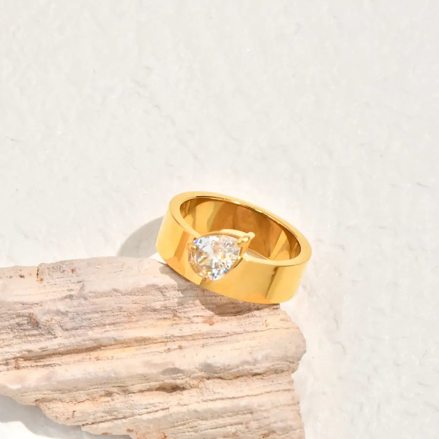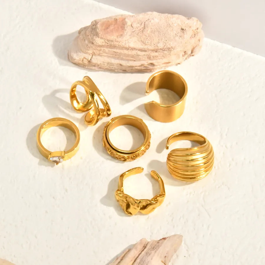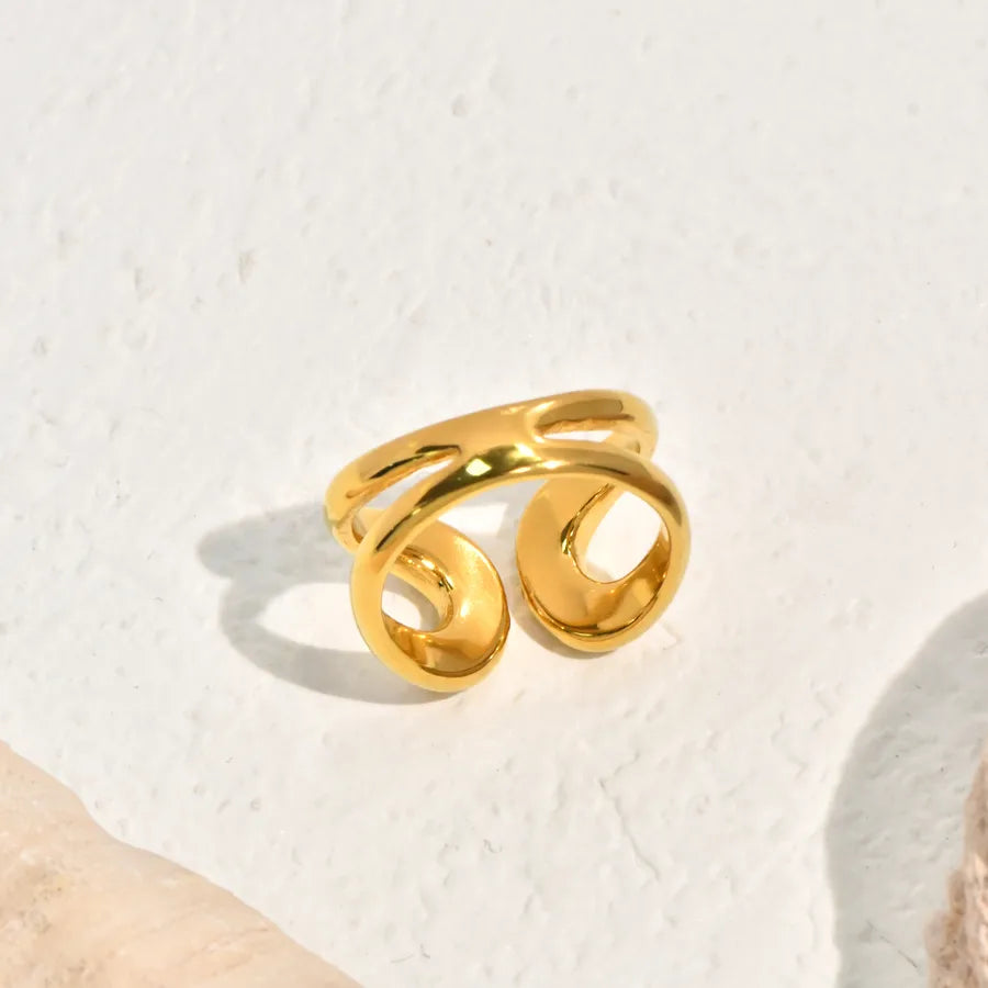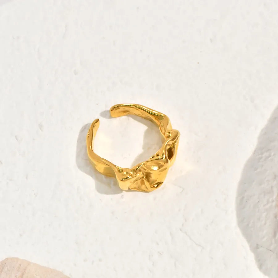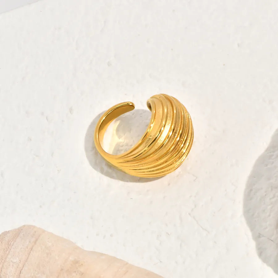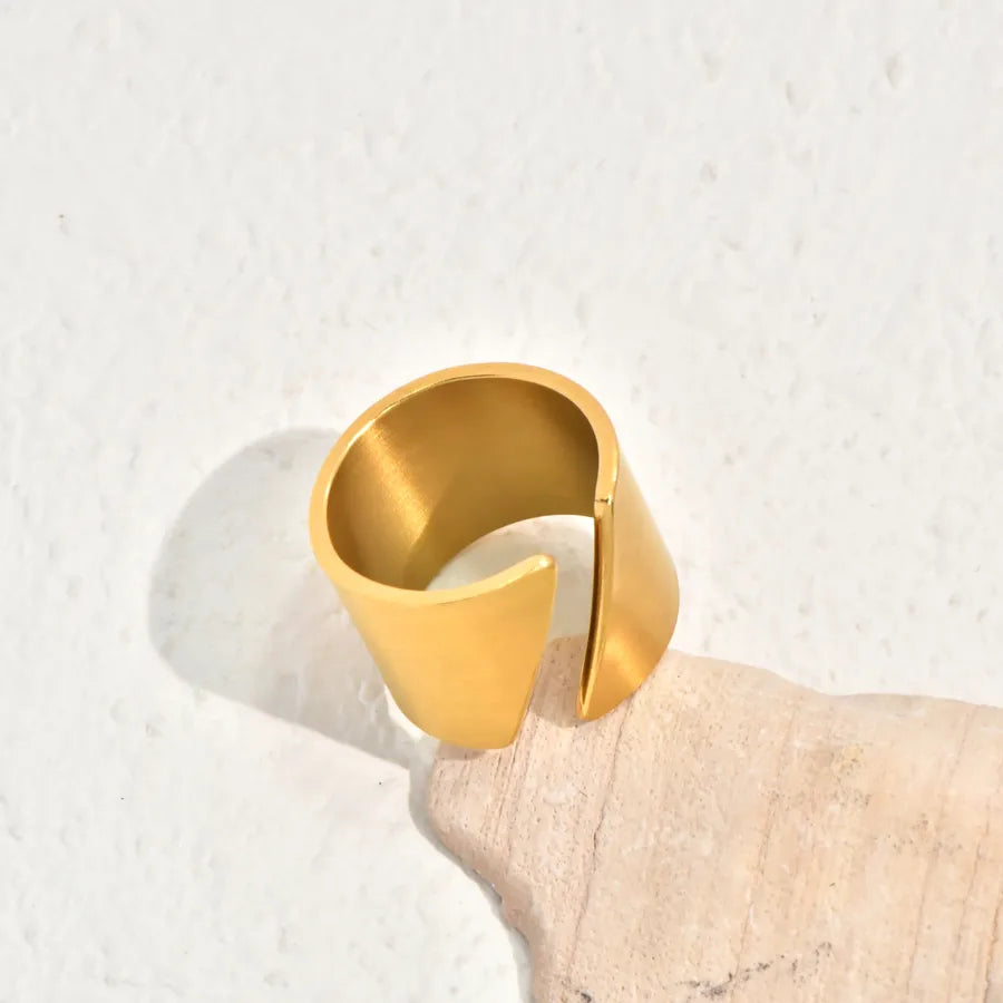 Lava Geometric Fashion Niche Texture Layered Bohemian Style Beveled Open Stainless Steel 18K Gold Plated Ring
