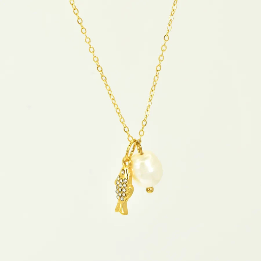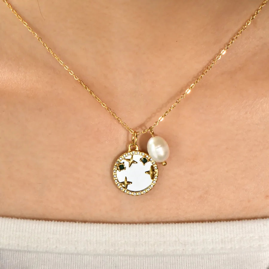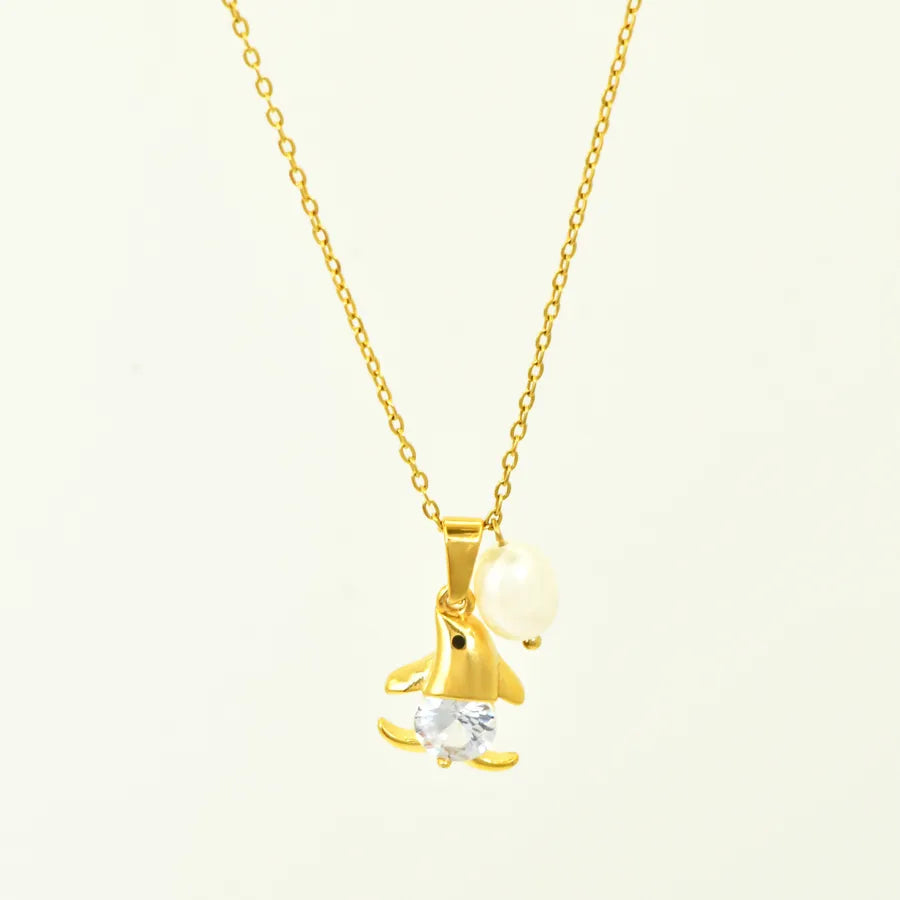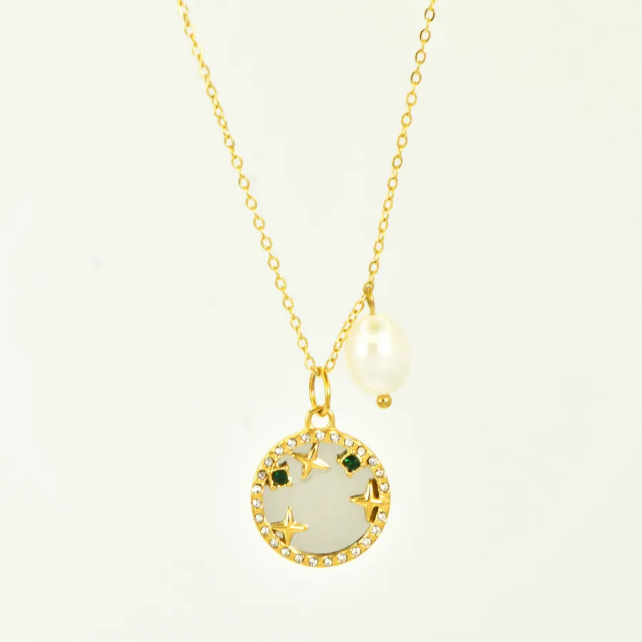 Ocean Style Zircon Inlaid Freshwater Pearl 304 Stainless Steel 18K Gold Plated Vacuum Electroplated Waterproof Non-Fading Women's Necklace