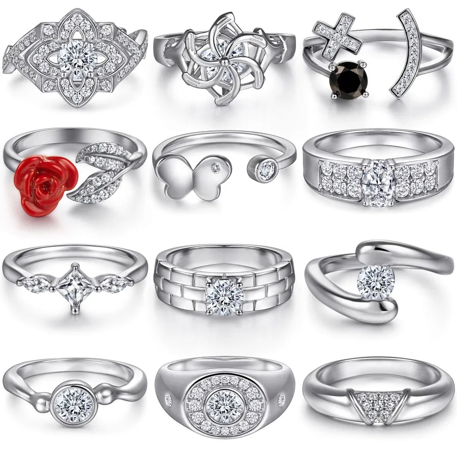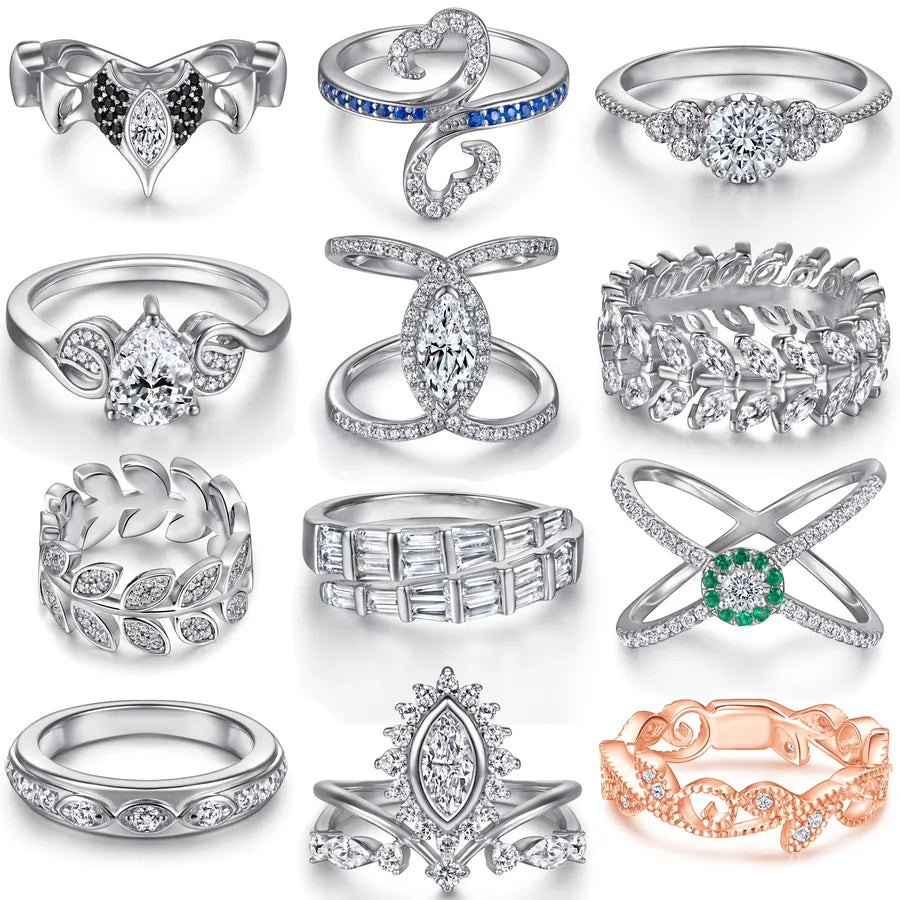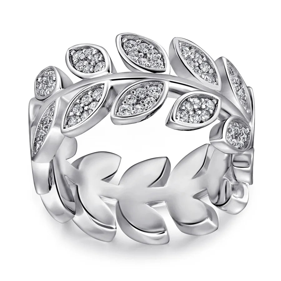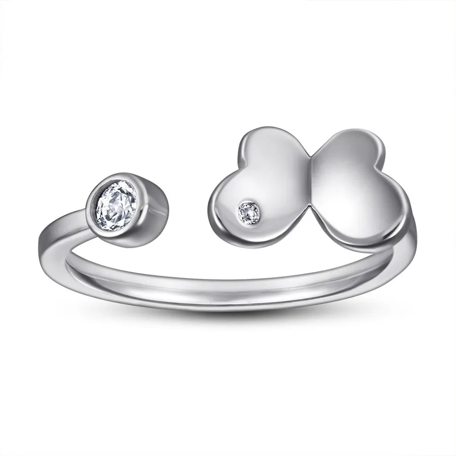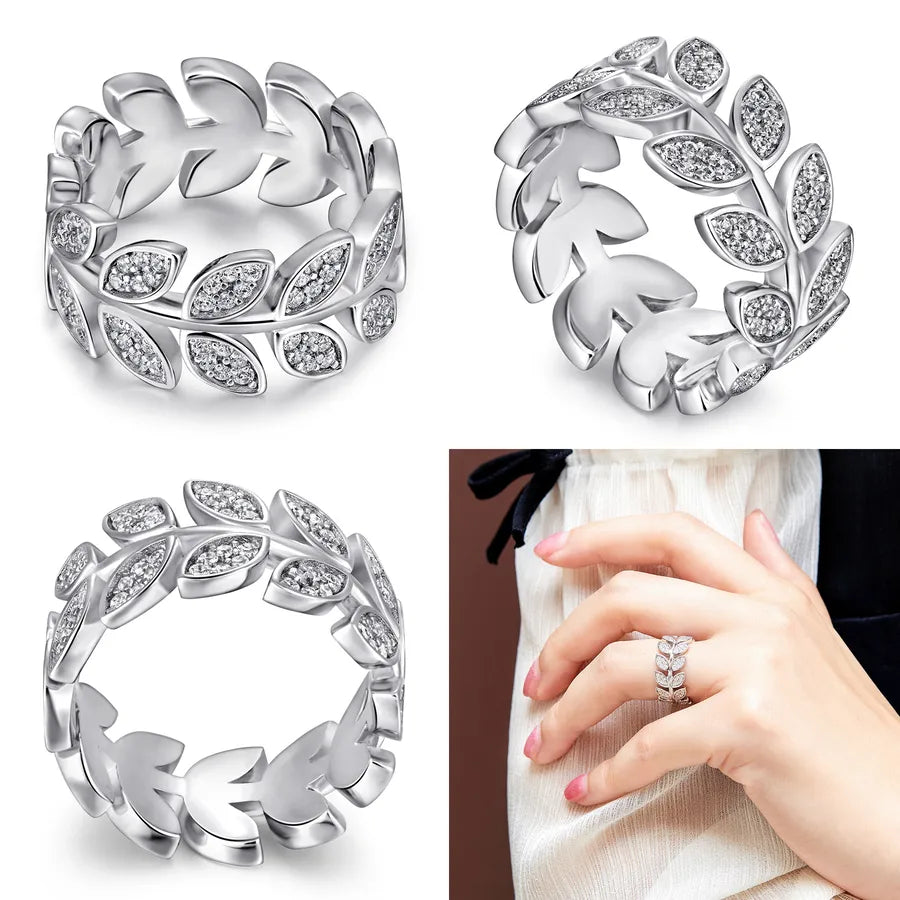 Elegant Butterfly Open Ring 925 Silver Zircon Simple Band Ring Luxury Feel Diamond Embedded Leaf Pattern Bohemian Style For Women