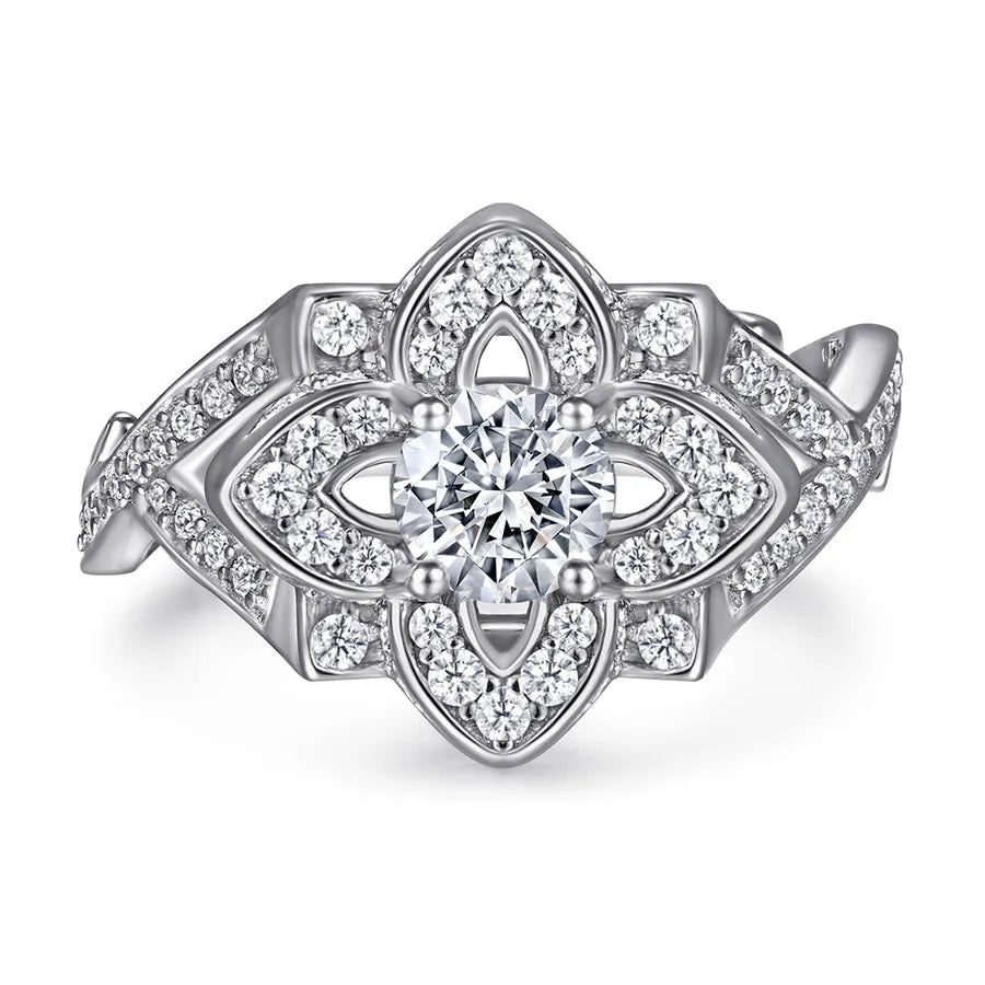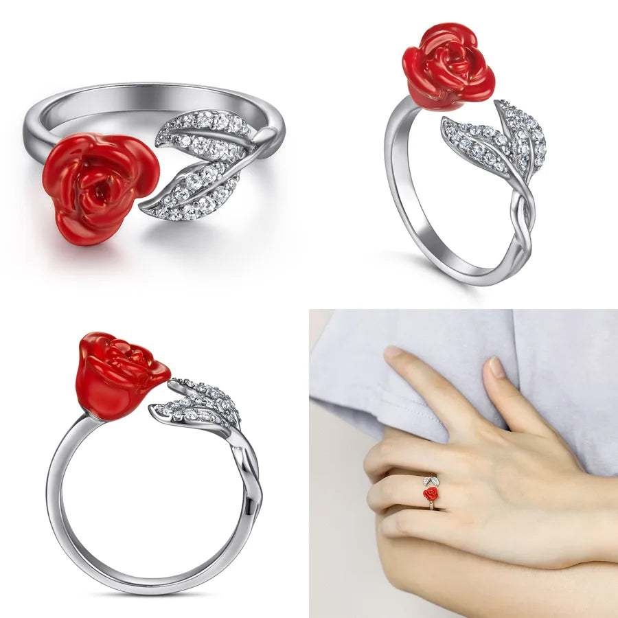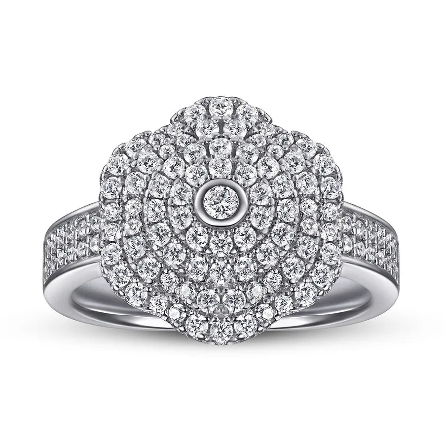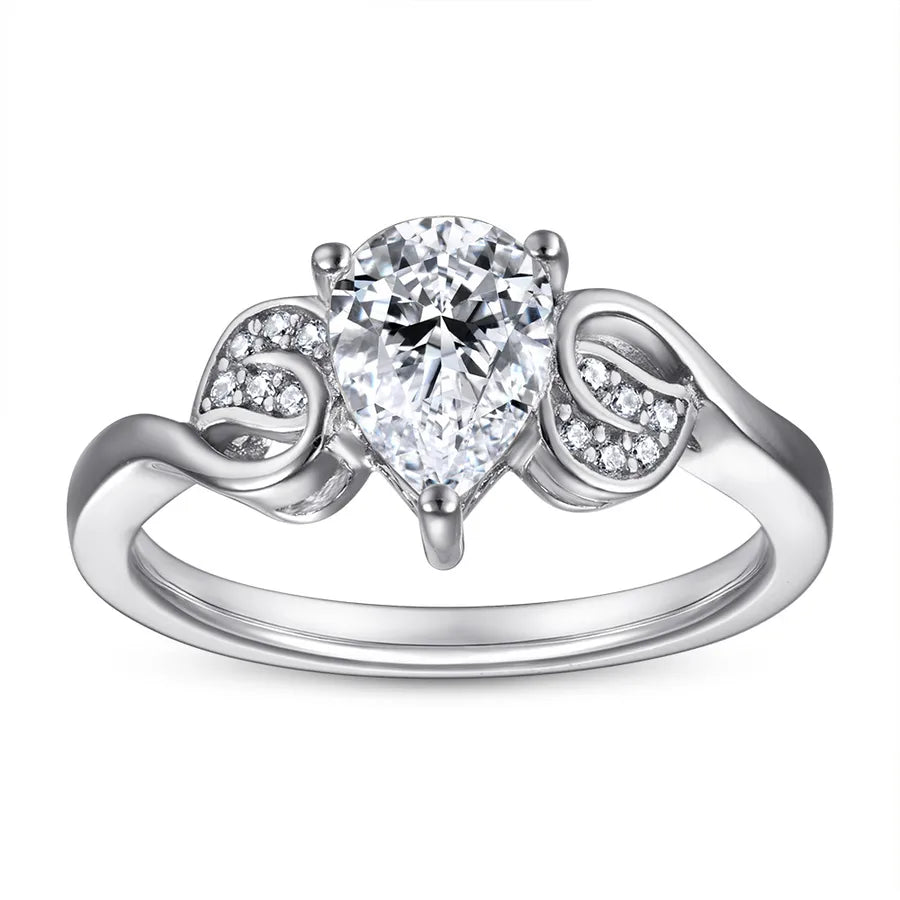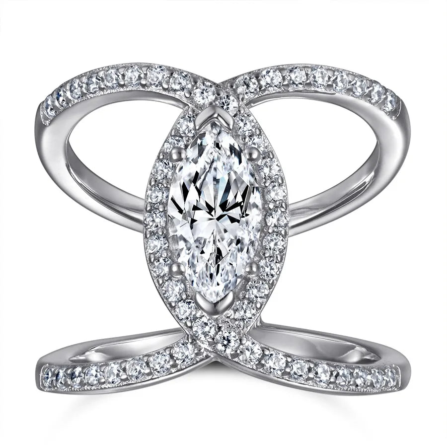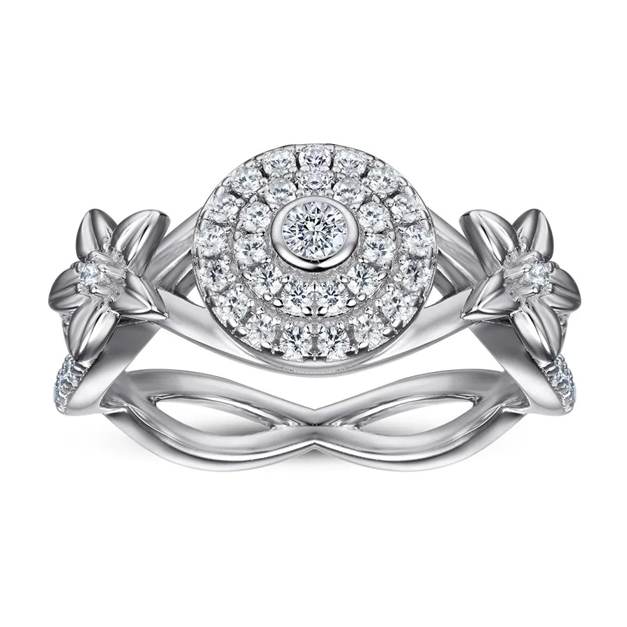 Elegant Butterfly Open Ring 925 Silver Zircon Simple Band Ring Luxury Feel Diamond Embedded Leaf Pattern Bohemian Style For Women