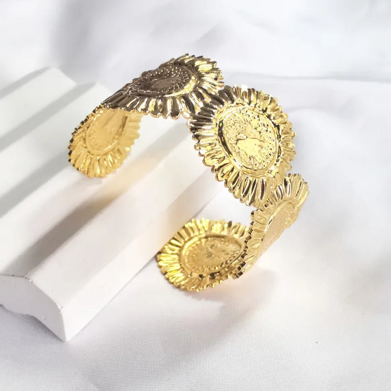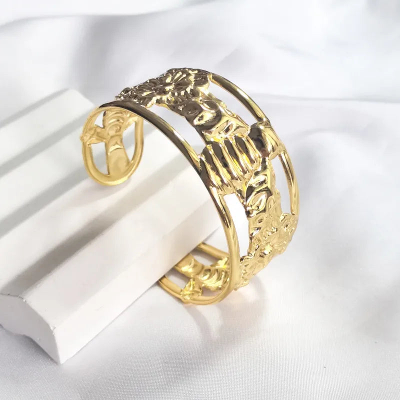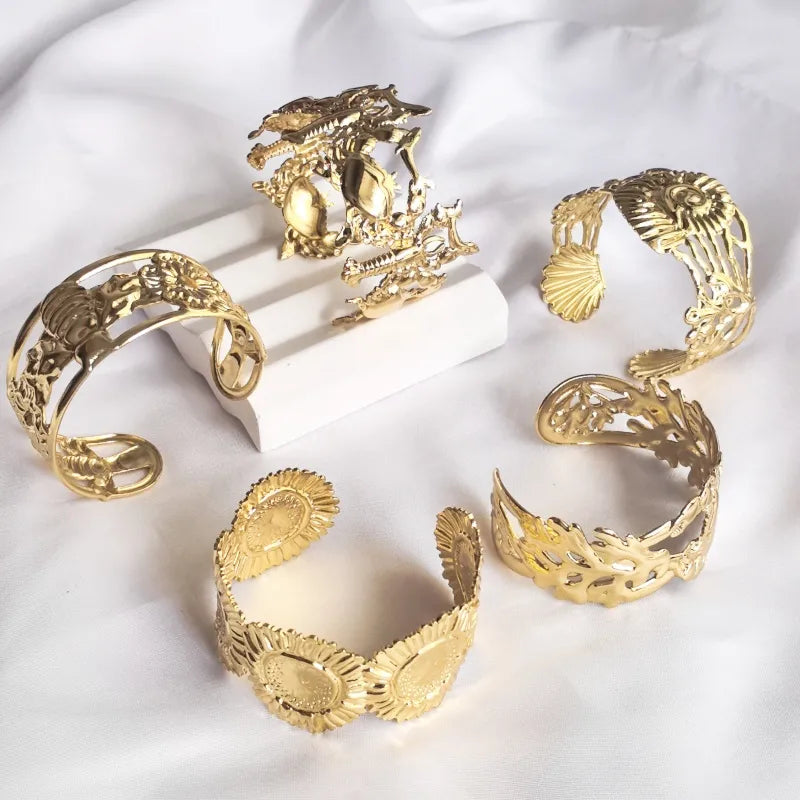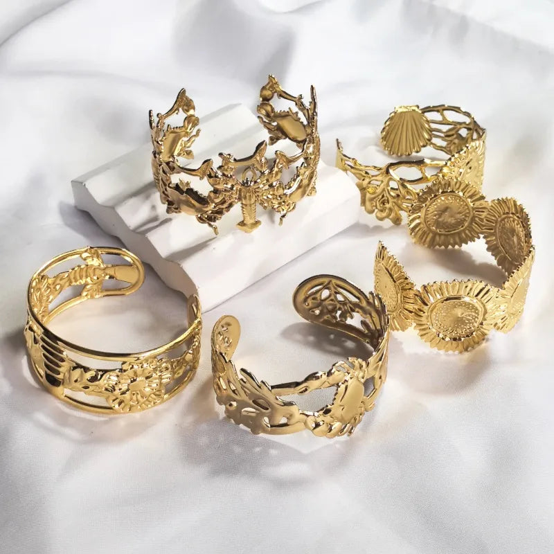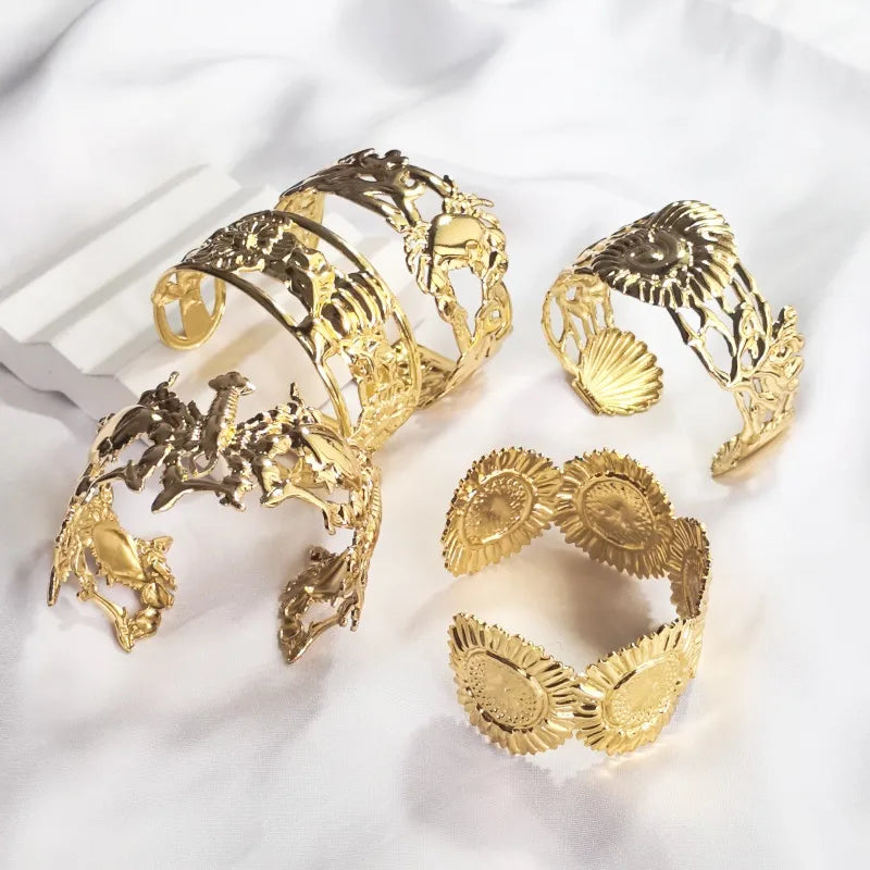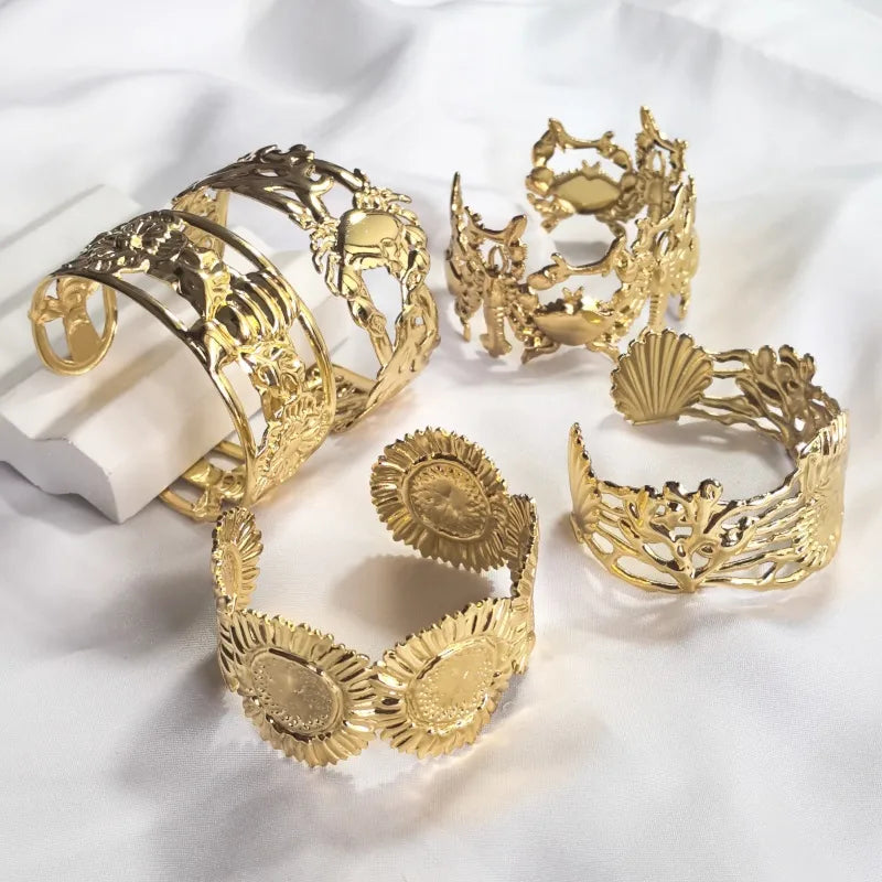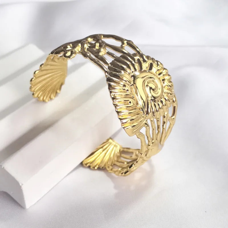 Electroplating Golden Plated Conch Flower Crab 304 Stainless Steel Bangle