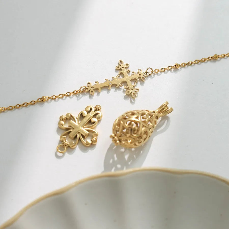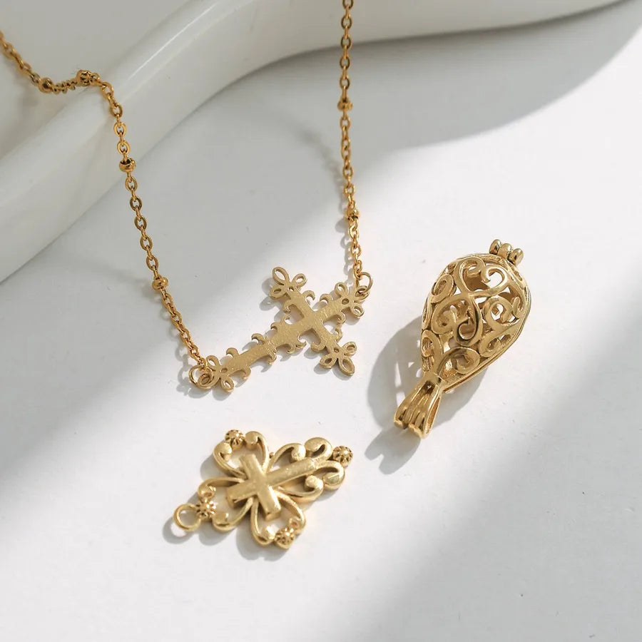 Handmade Stainless Steel Flower Cross Hollow Pattern Fish Basket Pendant Women's Style Jewelry Accessories New Arrival