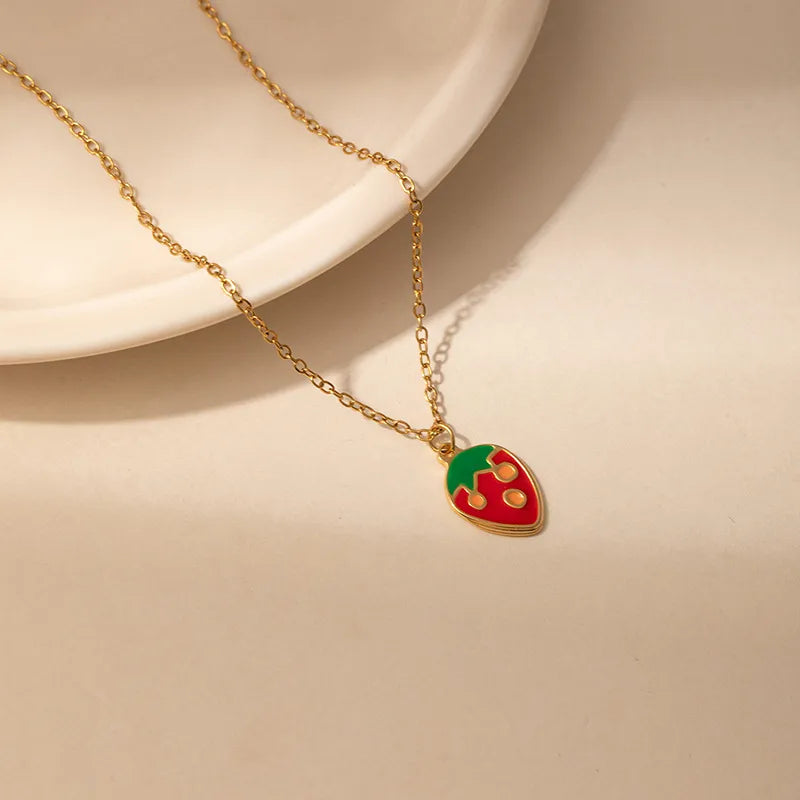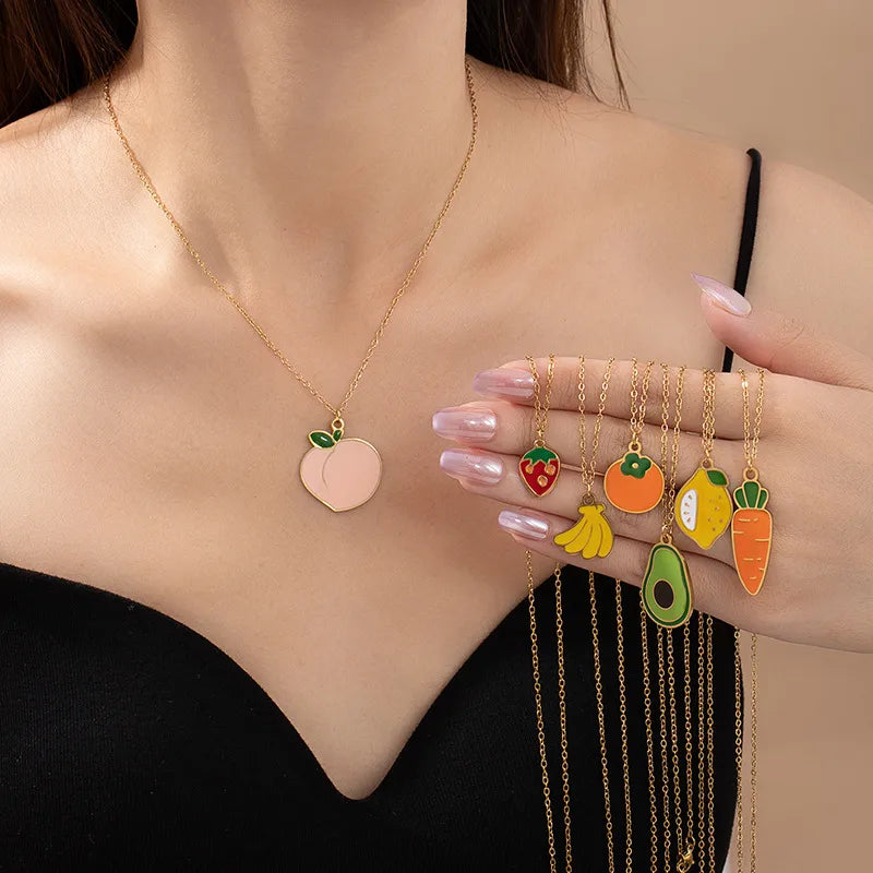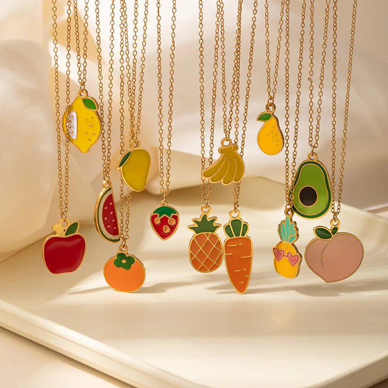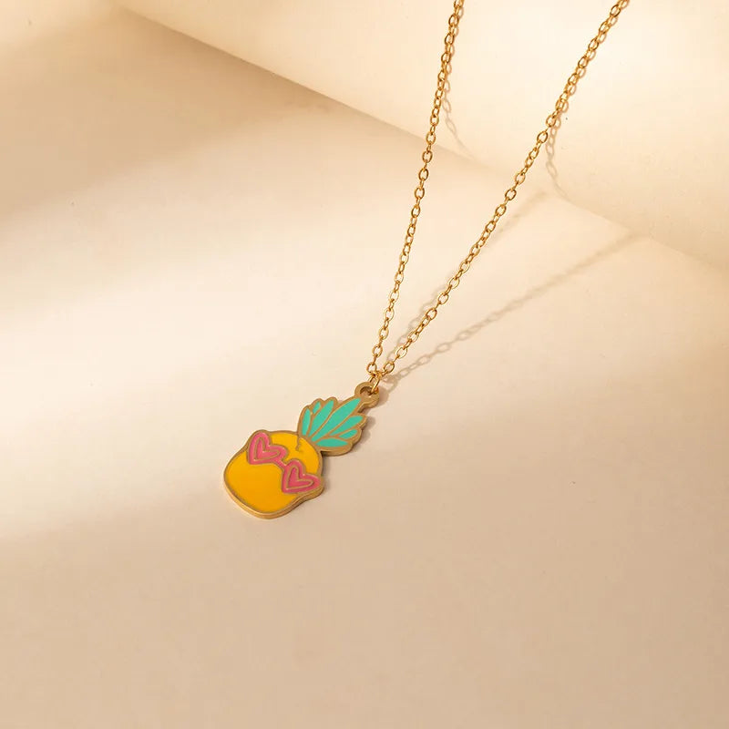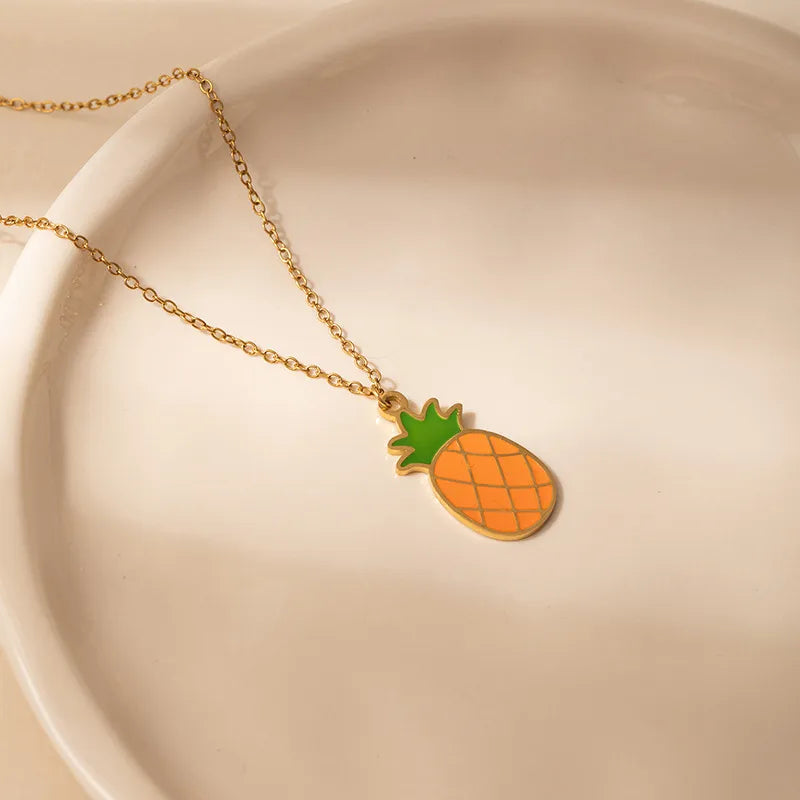 Strawberry Pineapple Fruit Series Pendant Women's Fashion Simple Unique Lobster Clasp Choker DIY Titanium Steel Necklace