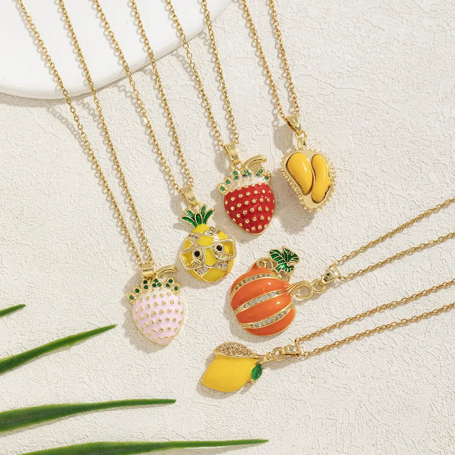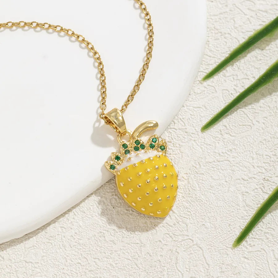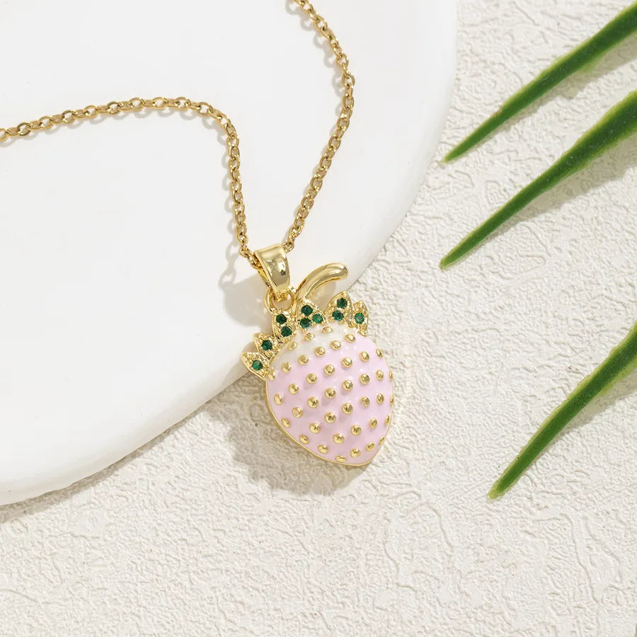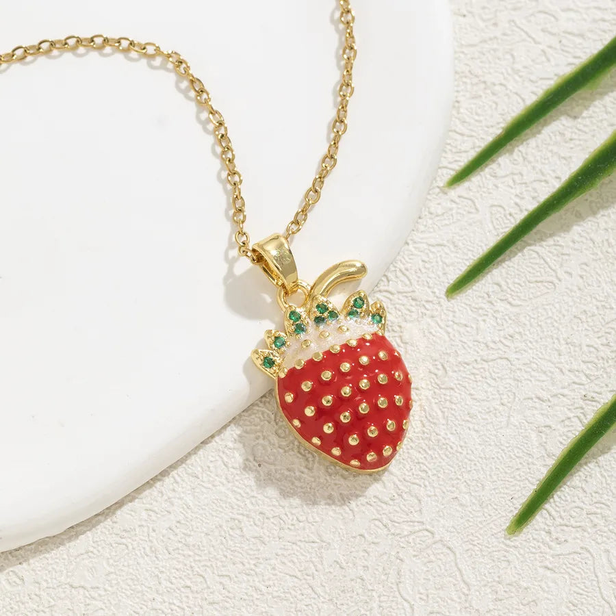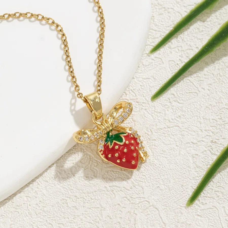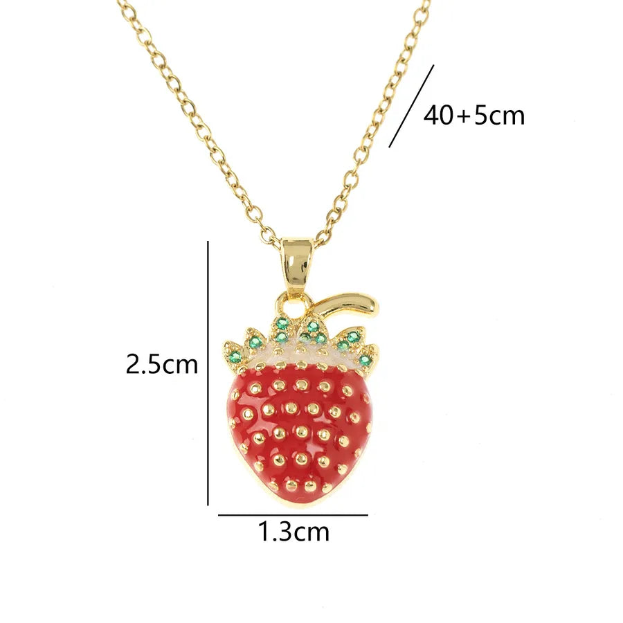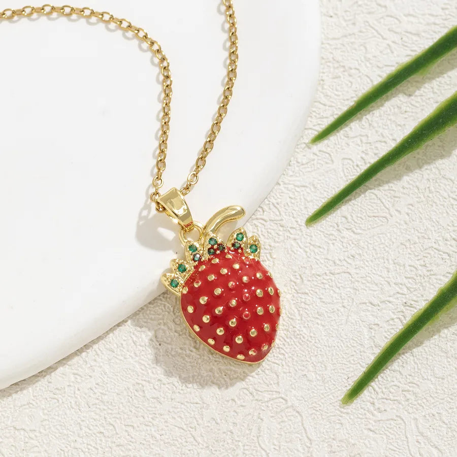 Titanium Steel Strawberry Full Diamond Fruit Series Necklace Women's Luxury Versatile Exquisite Lockbone Chain Jewelry Accessory