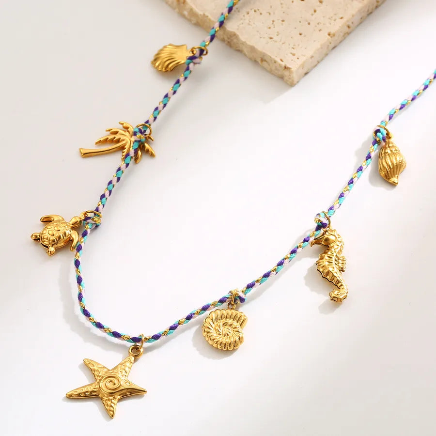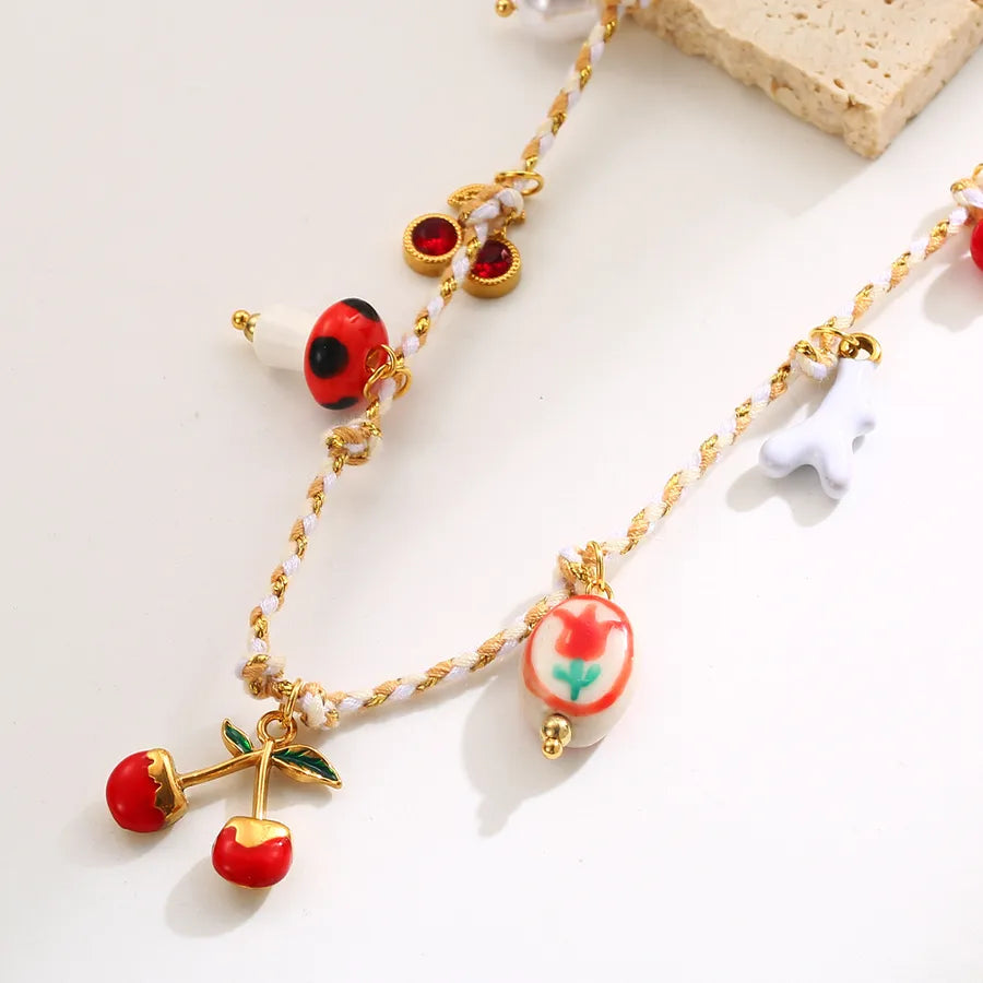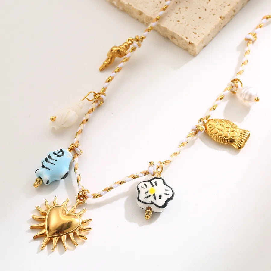 Colorful Trendy Women's Necklace Star Conch Heart Cherry Shell Pendant Accessory Resin and Thread Material Holiday Style