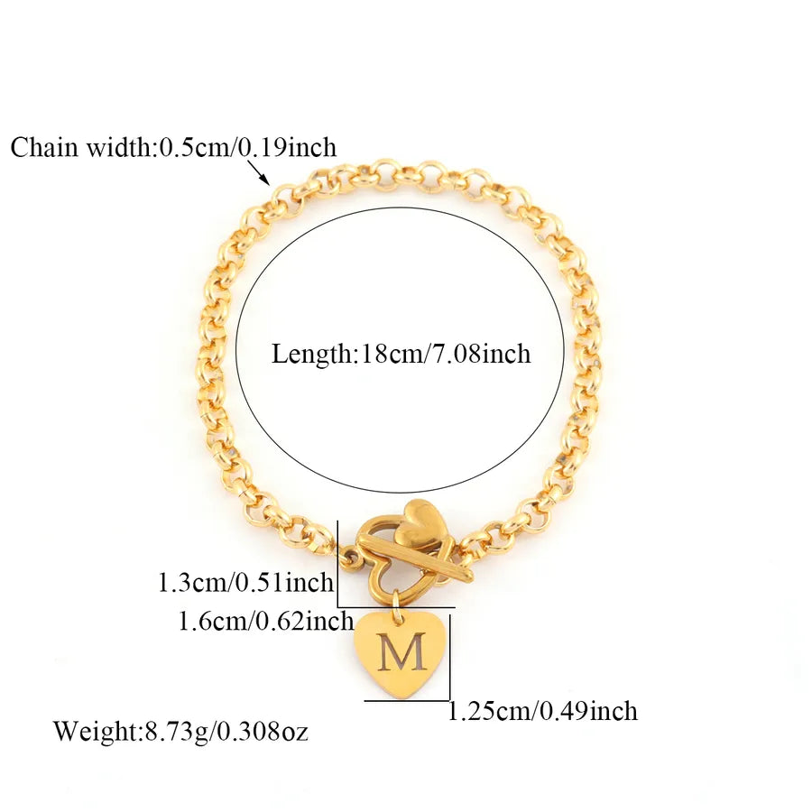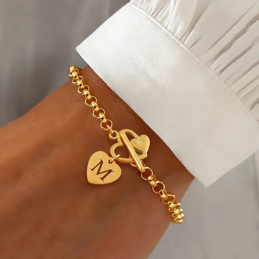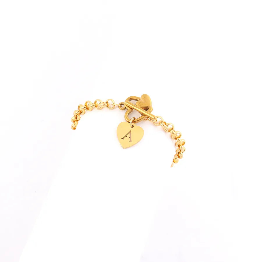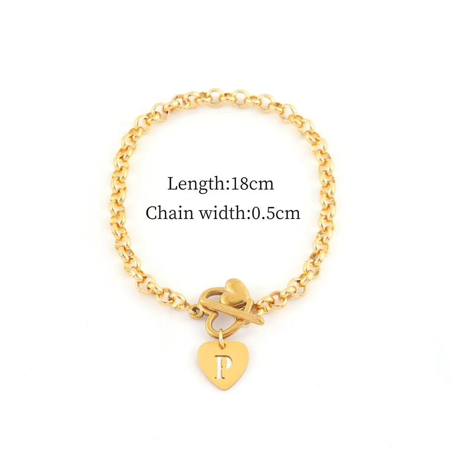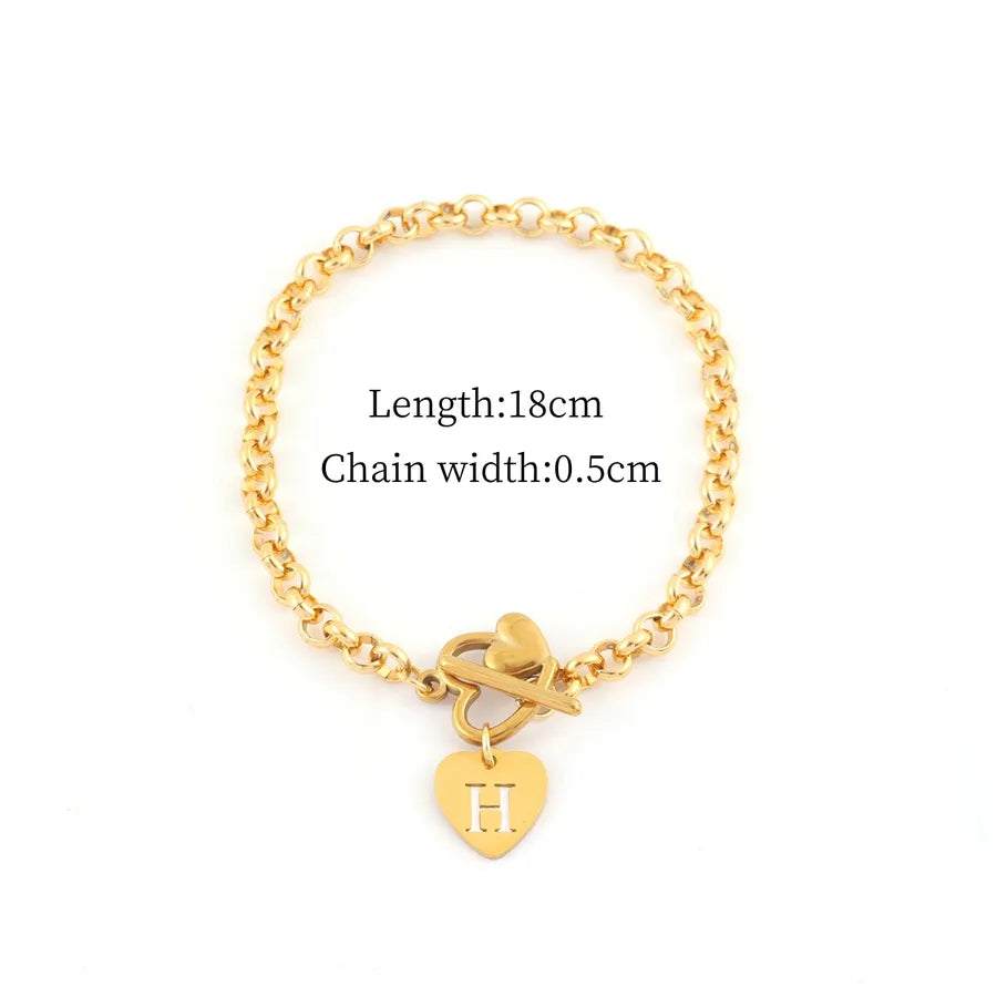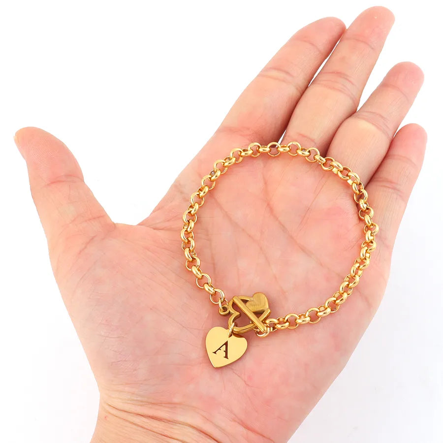 Elegant Fashion Heart-shaped Initial Heart-shaped Clasp 18K Gold Plated Gold 201 Stainless Steel Chain Bracelet for Women Simple Style