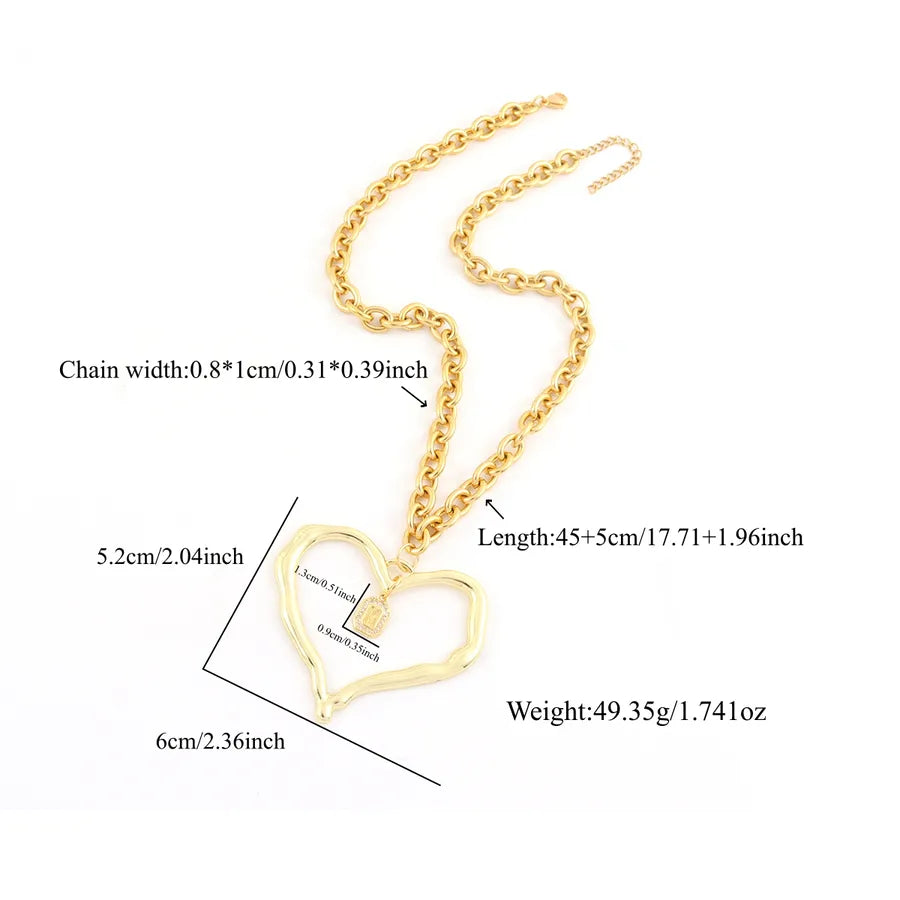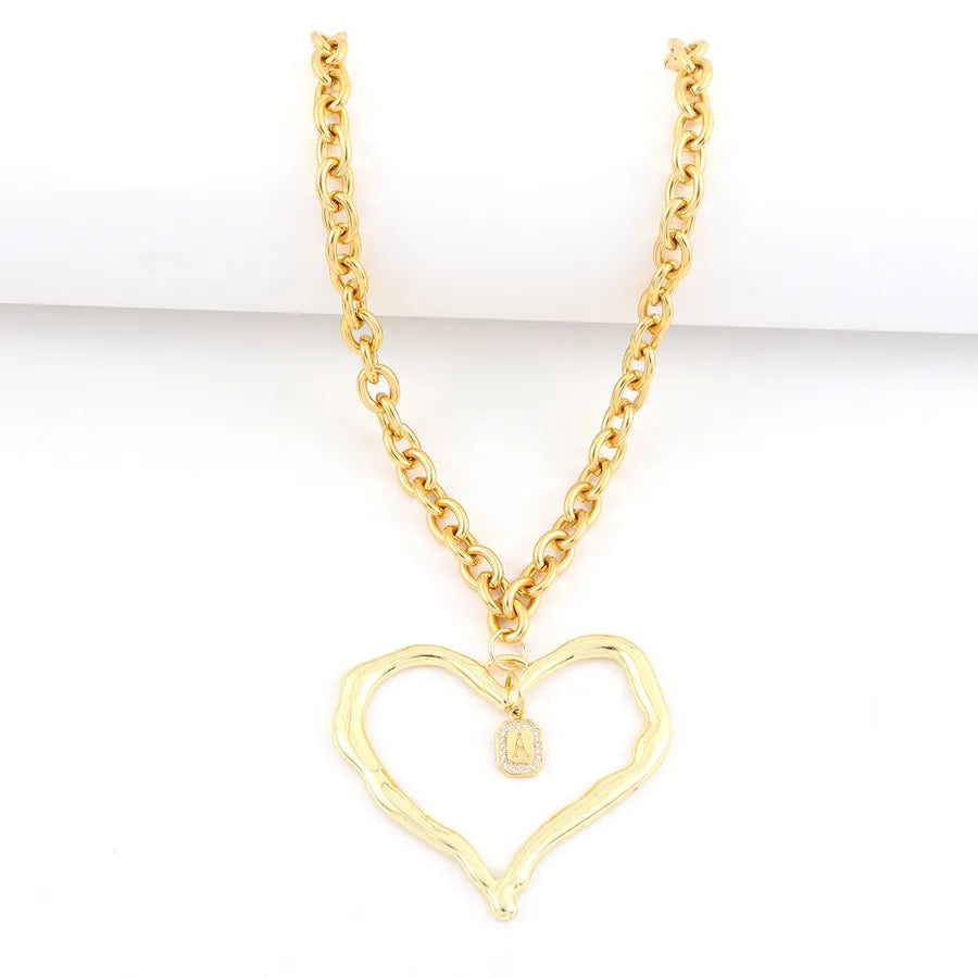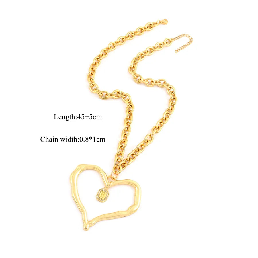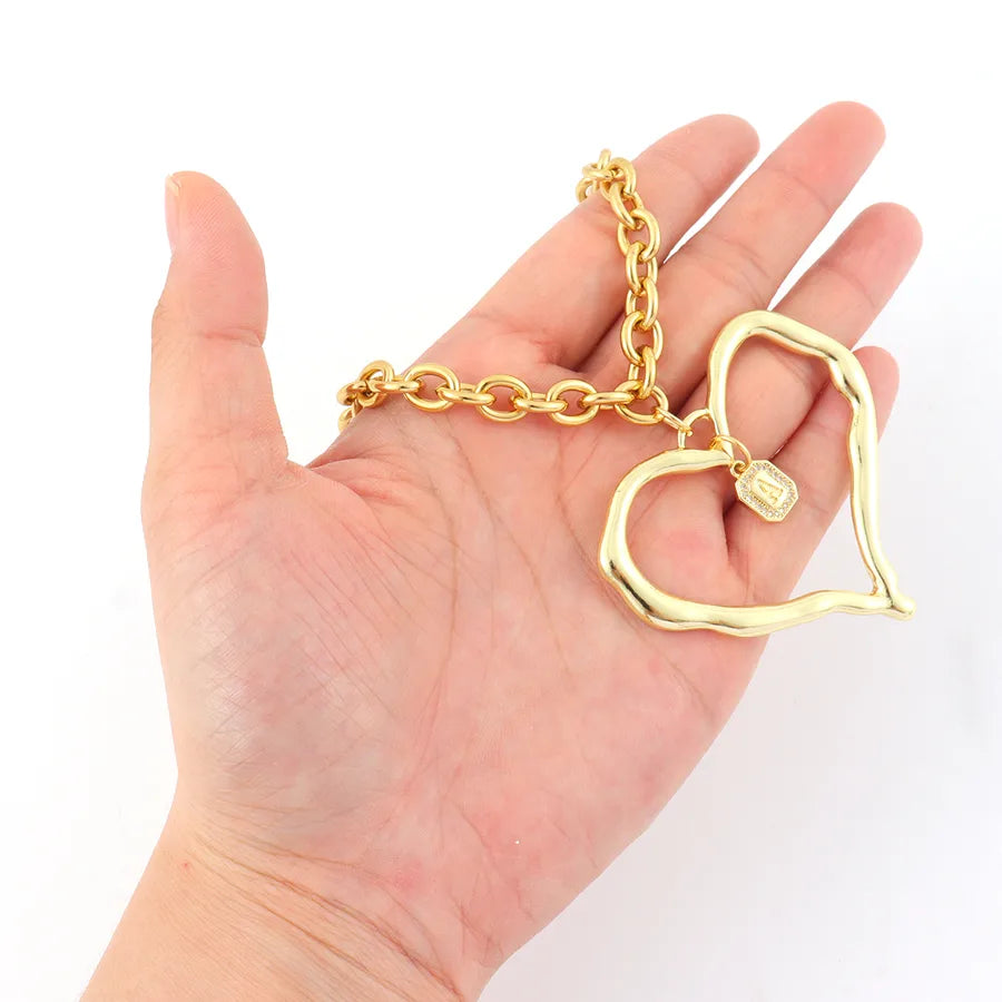 Fashion Exaggerated Heart-Shaped Micro-Inlaid Zircon Square Initial Pendant 18K Gold Plated Gold 201 Stainless Steel Chain Women's Necklace