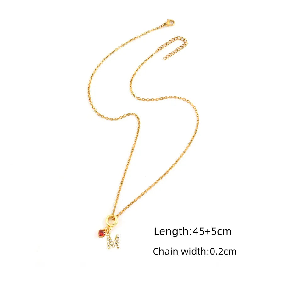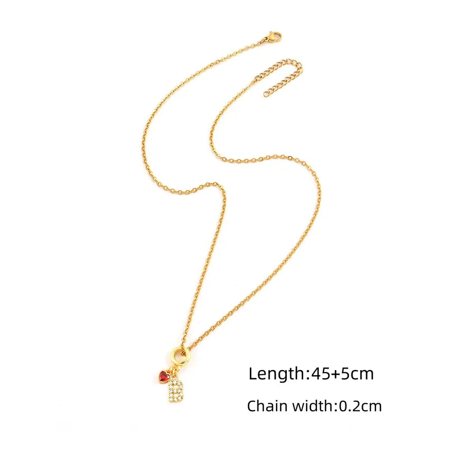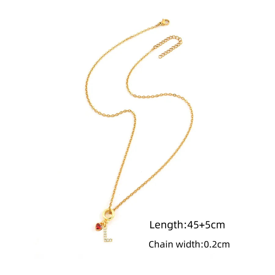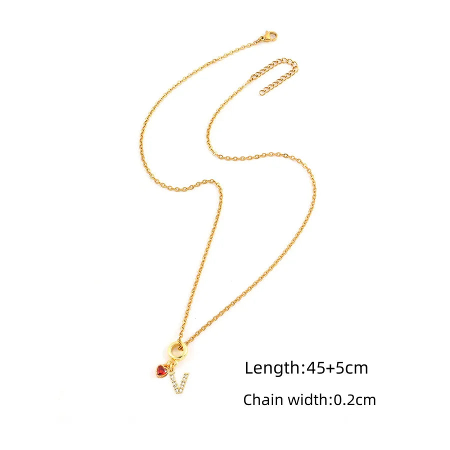 Simple Classic Micro Pave Zircon Vacuum Electroplating (In Furnace) 18K Real Gold Plated Initial Artificial Crystal Heart Pendant 201 Stainless Steel Chain Women's Necklace