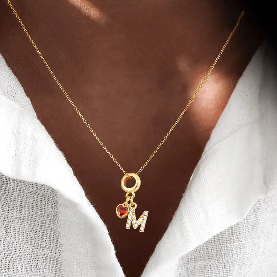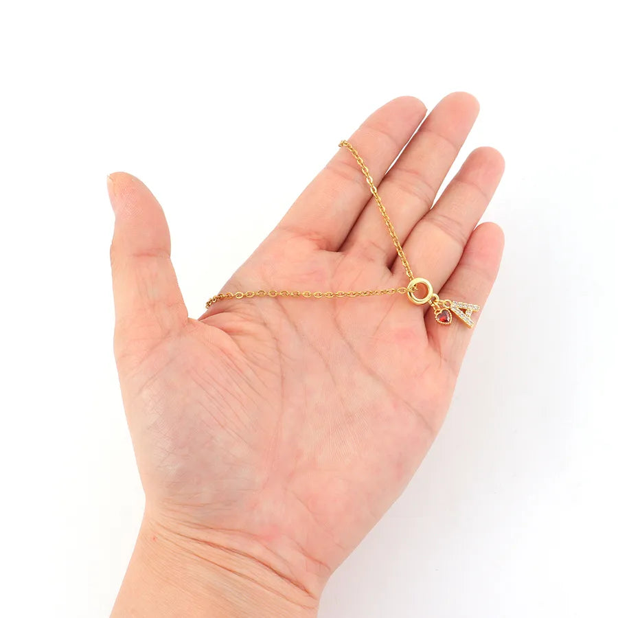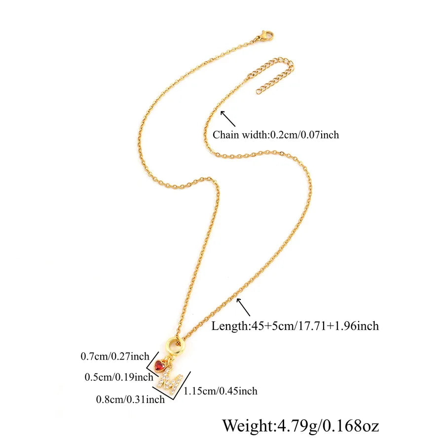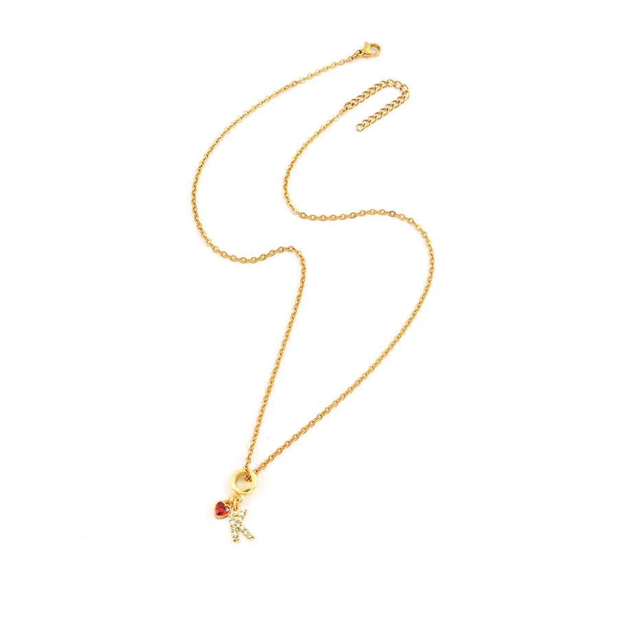 Simple Classic Micro Pave Zircon Vacuum Electroplating (In Furnace) 18K Real Gold Plated Initial Artificial Crystal Heart Pendant 201 Stainless Steel Chain Women's Necklace