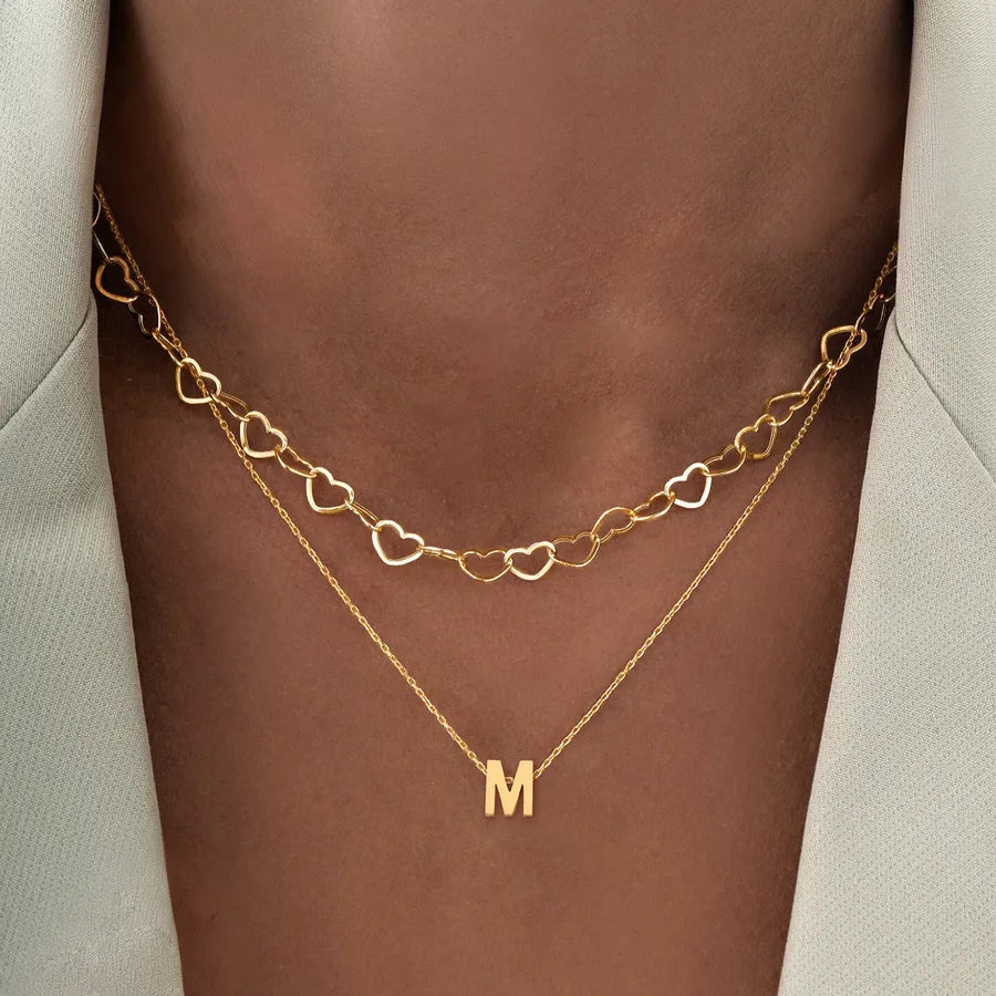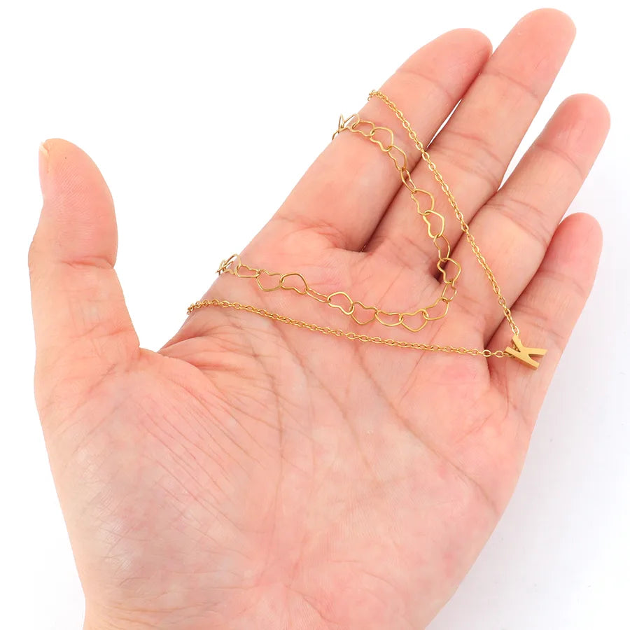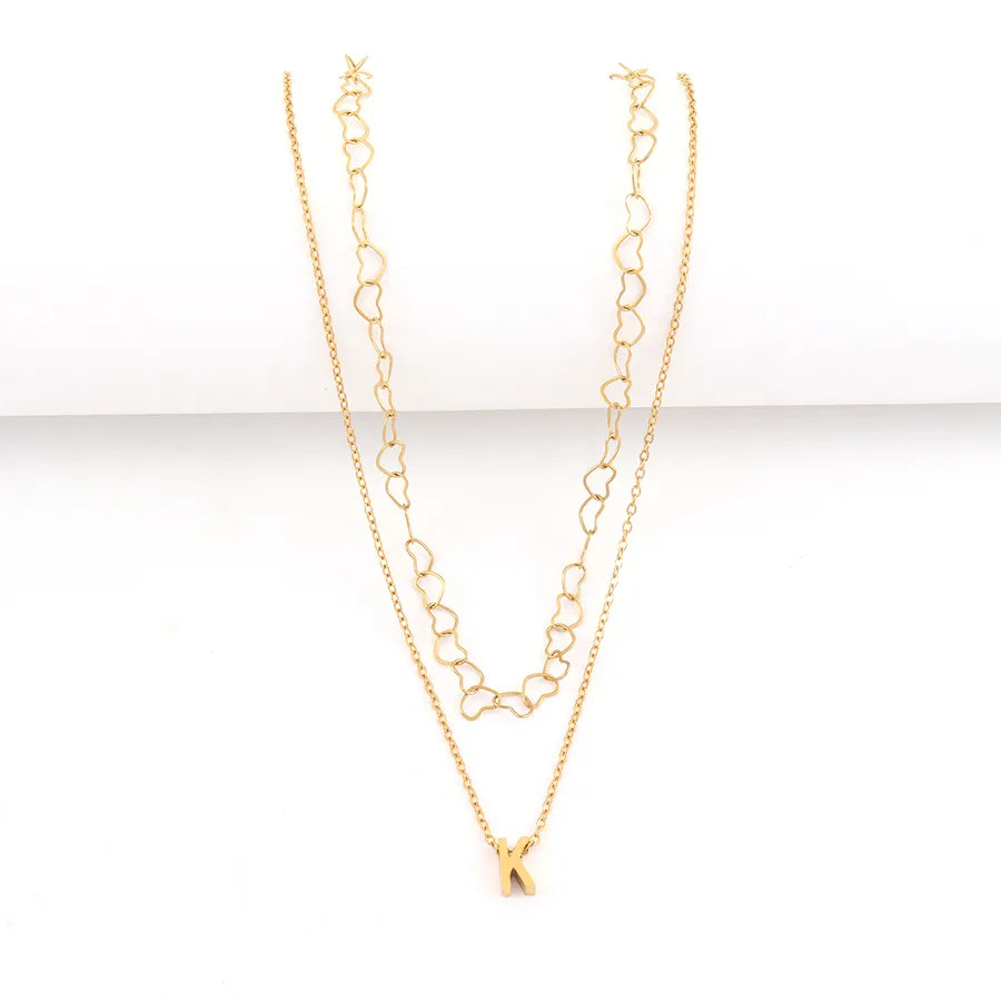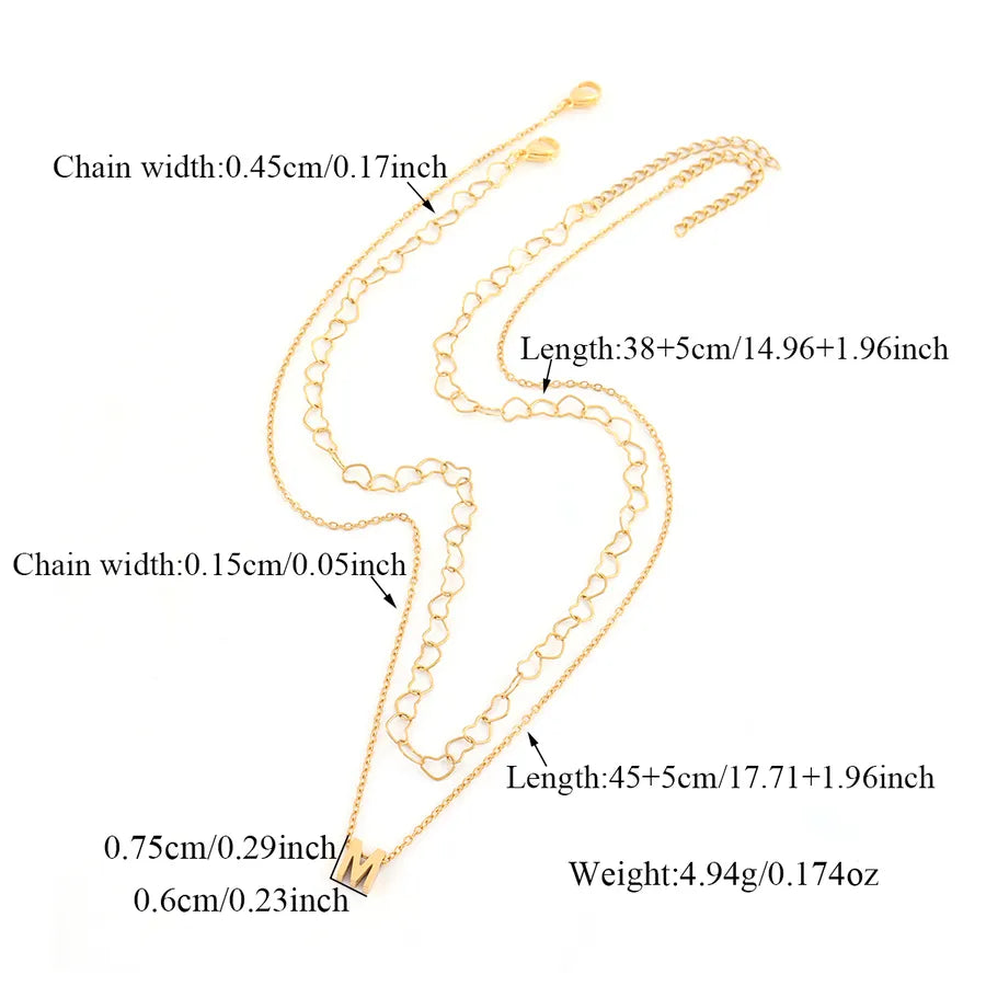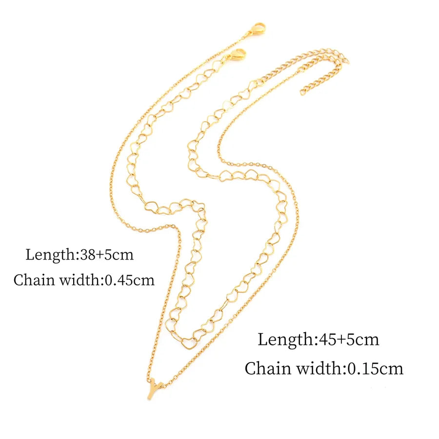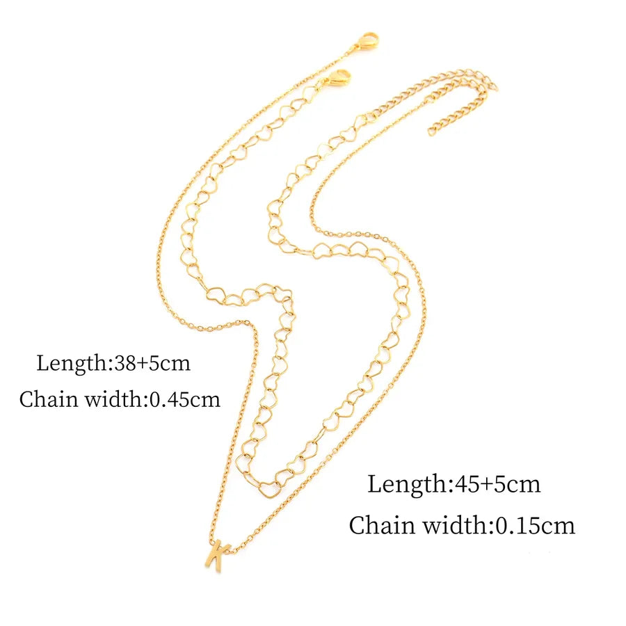 Universal Electroplated 18K Real Gold Simple Fashion Initial Pendant Gold 201 Stainless Steel Chain Heart Chain Necklace Multi-layer Chain Women's Necklace Set