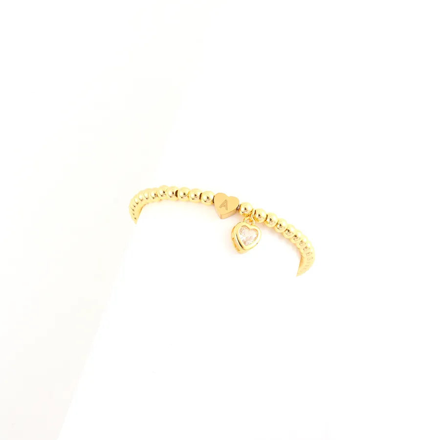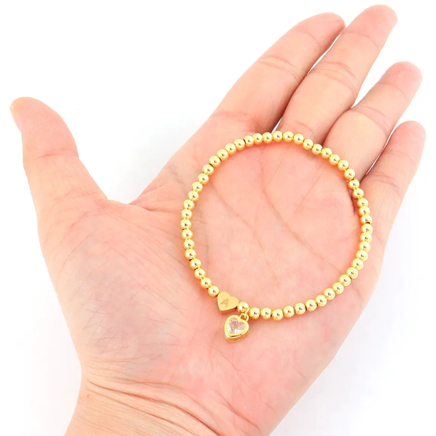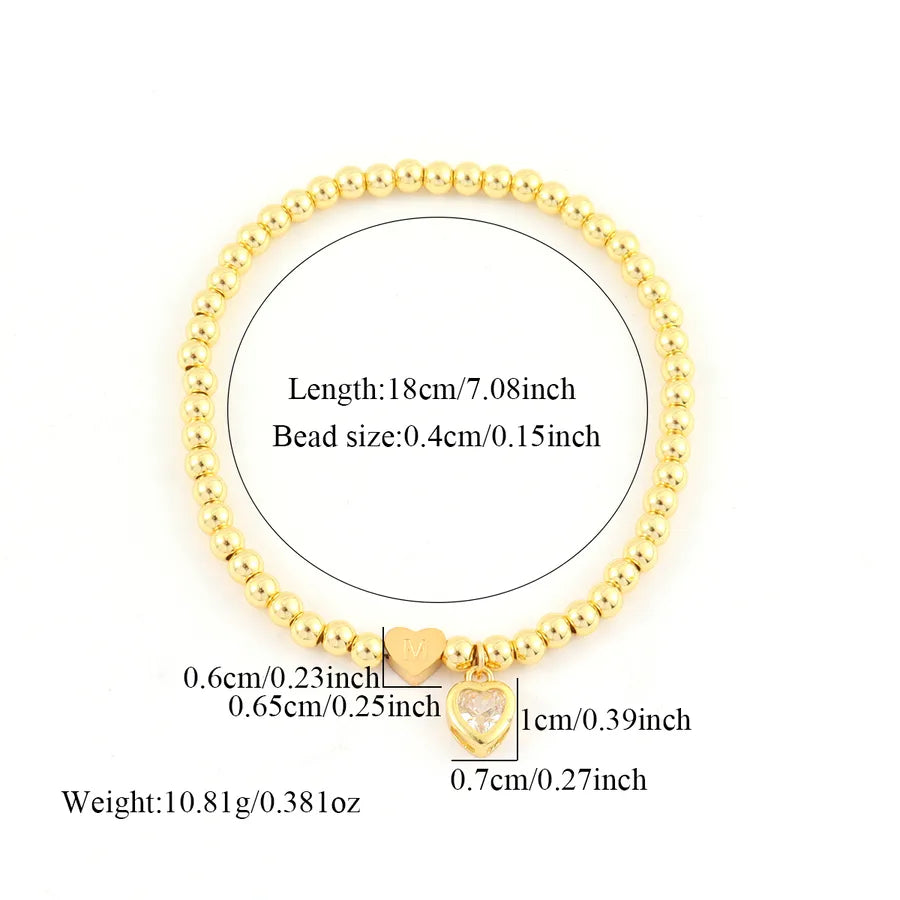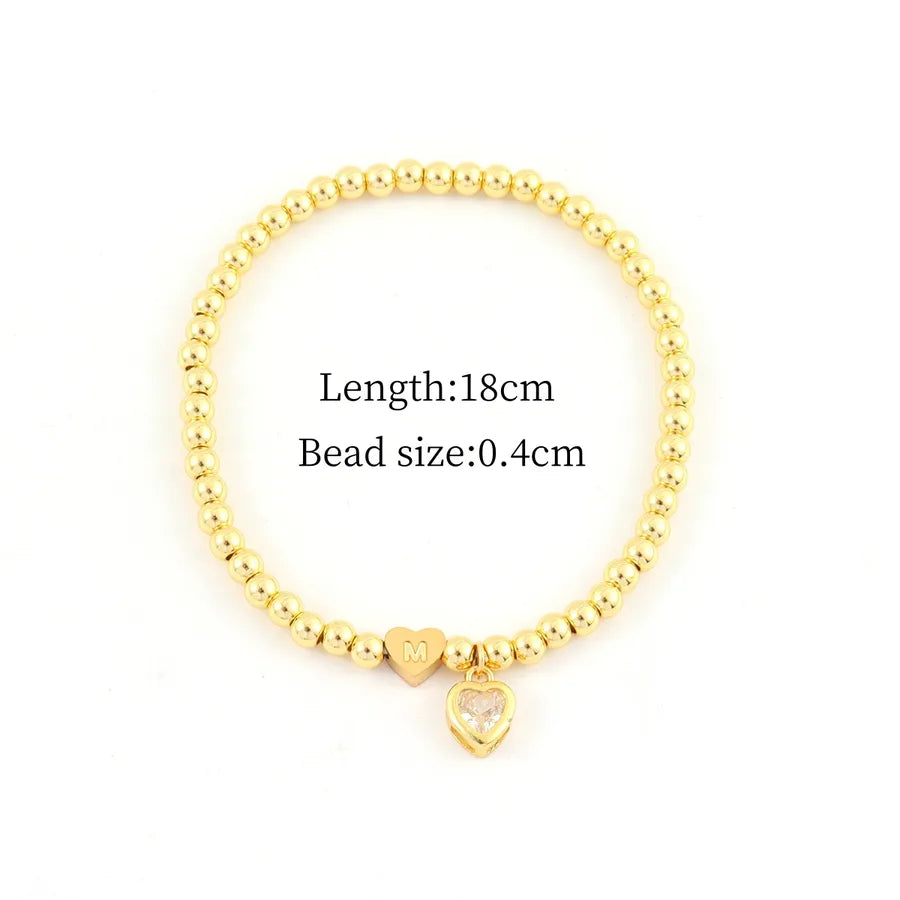 Vacuum Electroplating 18K Real Gold Fashion Gold Heart-shaped Initial Copper Bead Bracelet for Women Simple Style Classic No Buckle Non-adjustable Bead Chain