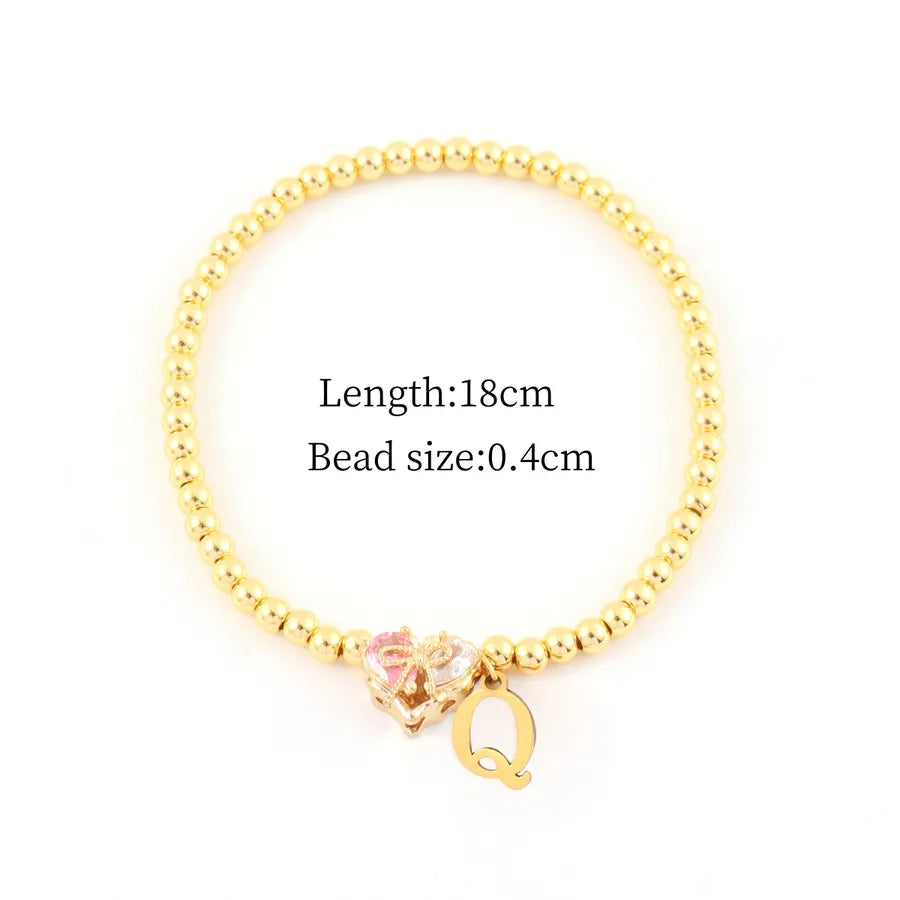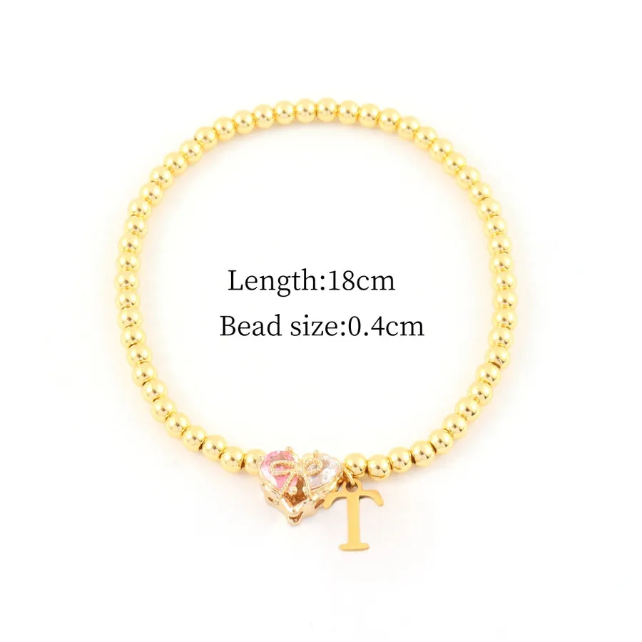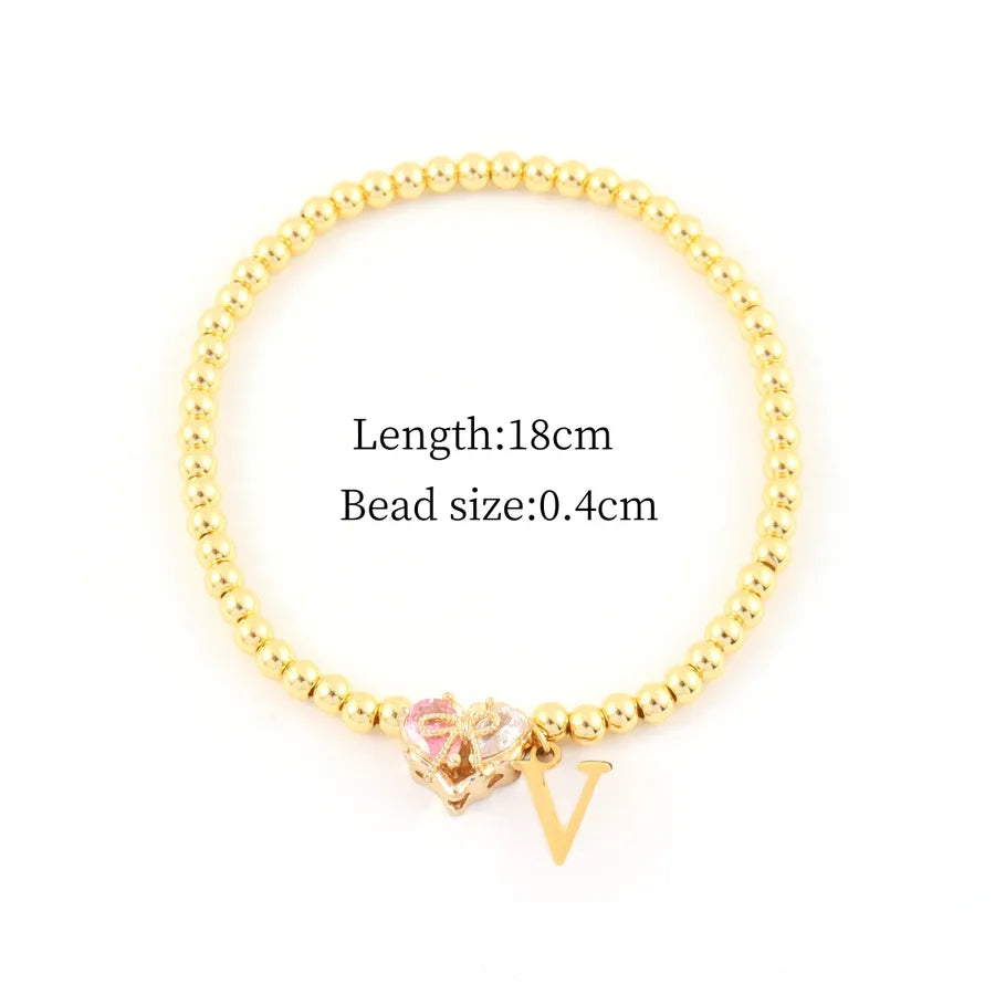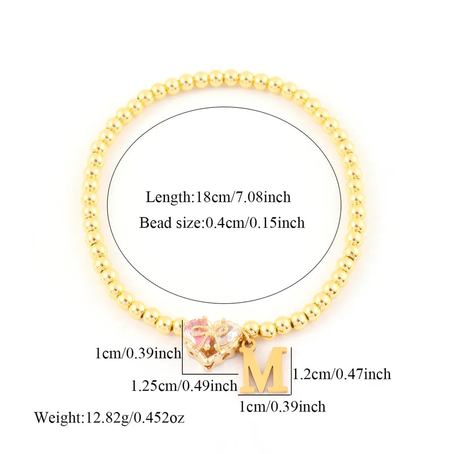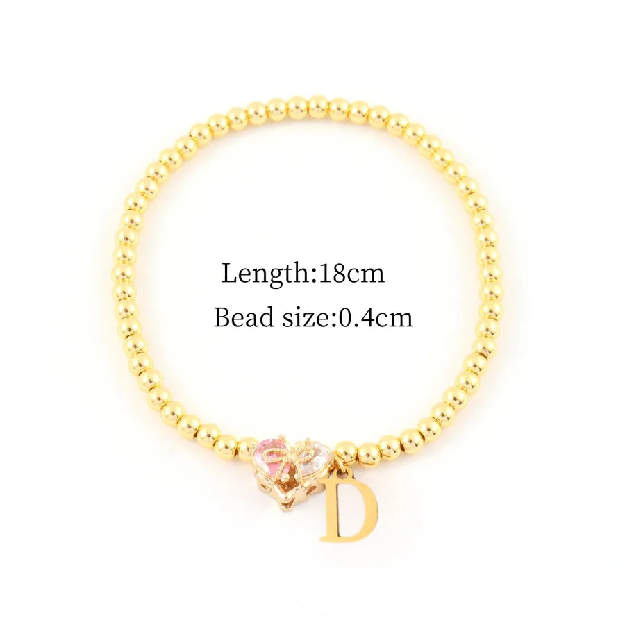 Vacuum Electroplating 18K Real Gold Fashion Versatile Initial Artificial Crystal Heart-shaped Gold Copper Bead Women's Bracelet Elegant Romantic Simple Style