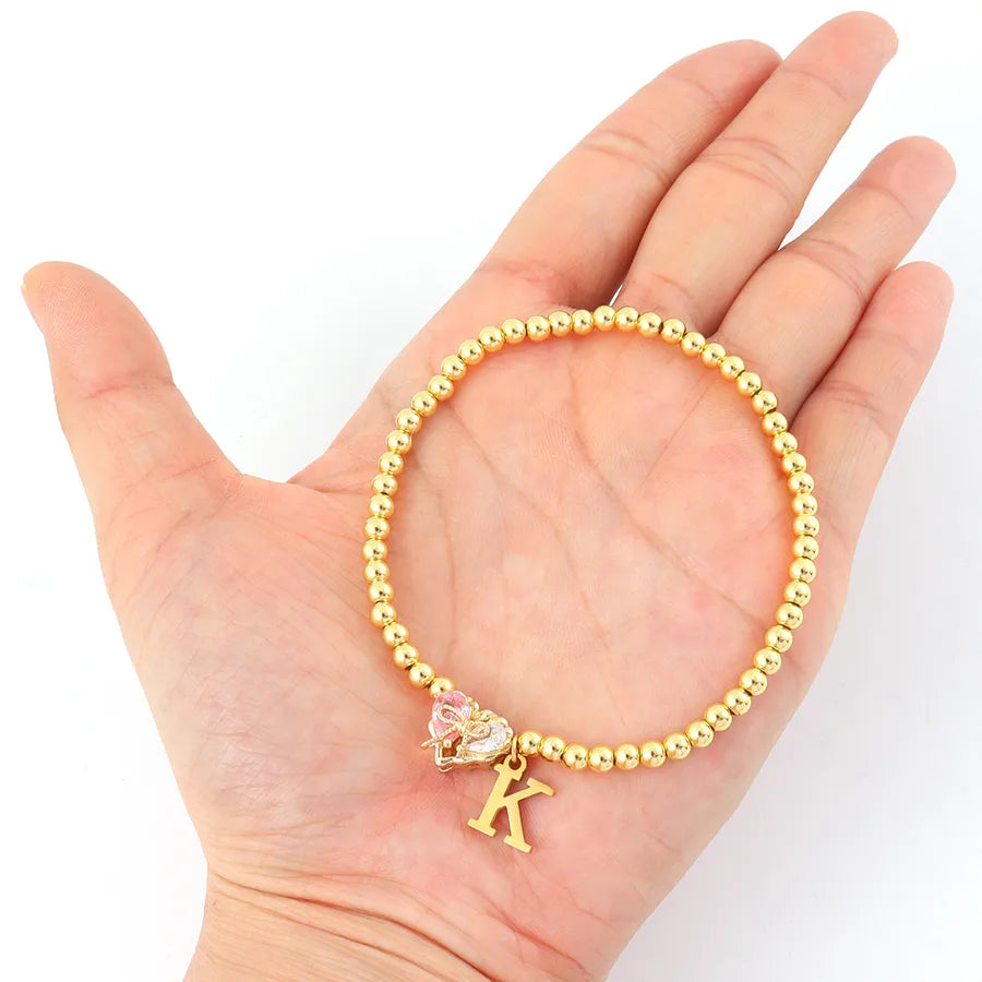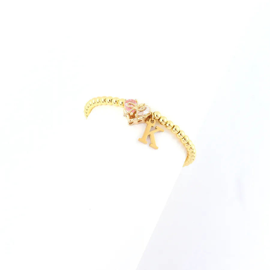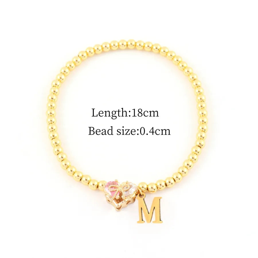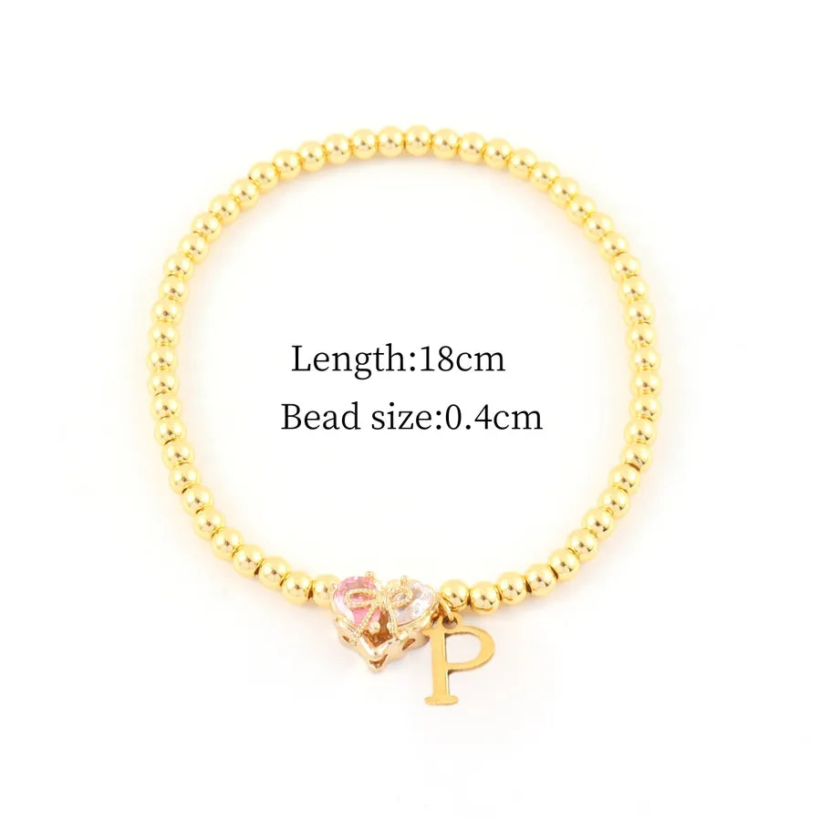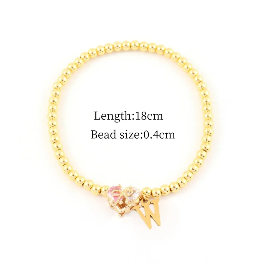 Vacuum Electroplating 18K Real Gold Fashion Versatile Initial Artificial Crystal Heart-shaped Gold Copper Bead Women's Bracelet Elegant Romantic Simple Style