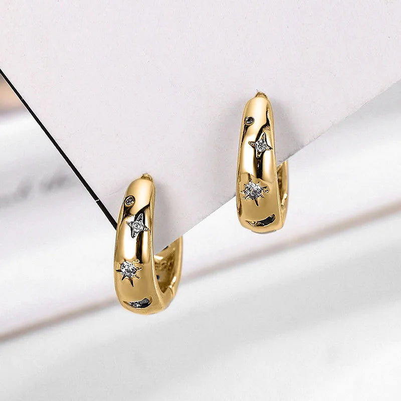 Fashionable Star Moon Jewelry Earrings Women's Popular Multiple Styles Copper Plated Zirconia Studs Universal For Men And Women