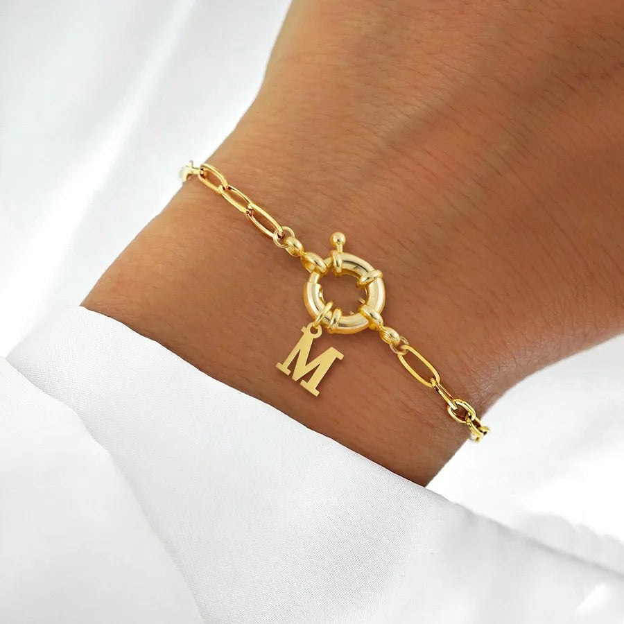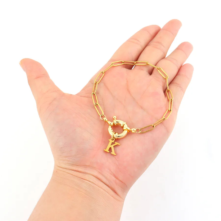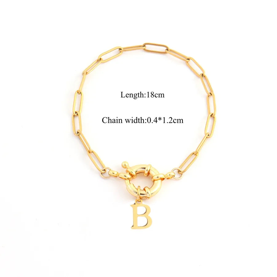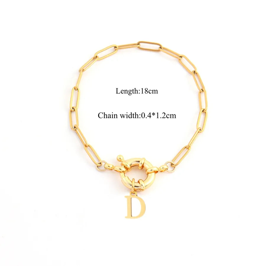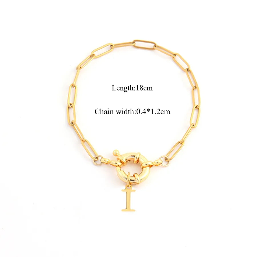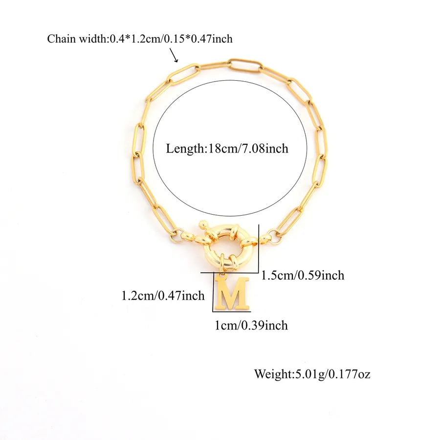 Vacuum Electroplating 18K Real Gold Simple Classic Initial Spring Clasp Gold 201 Stainless Steel Paperclip Chain Women's Bracelet