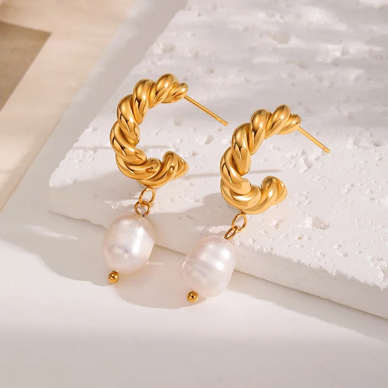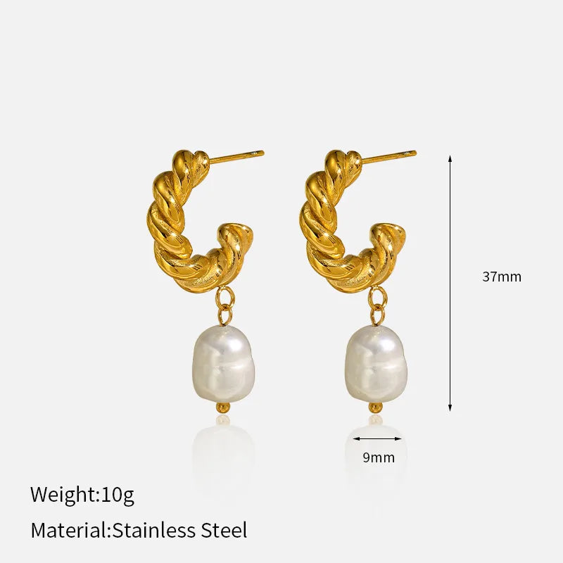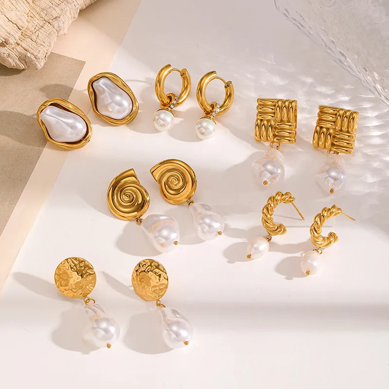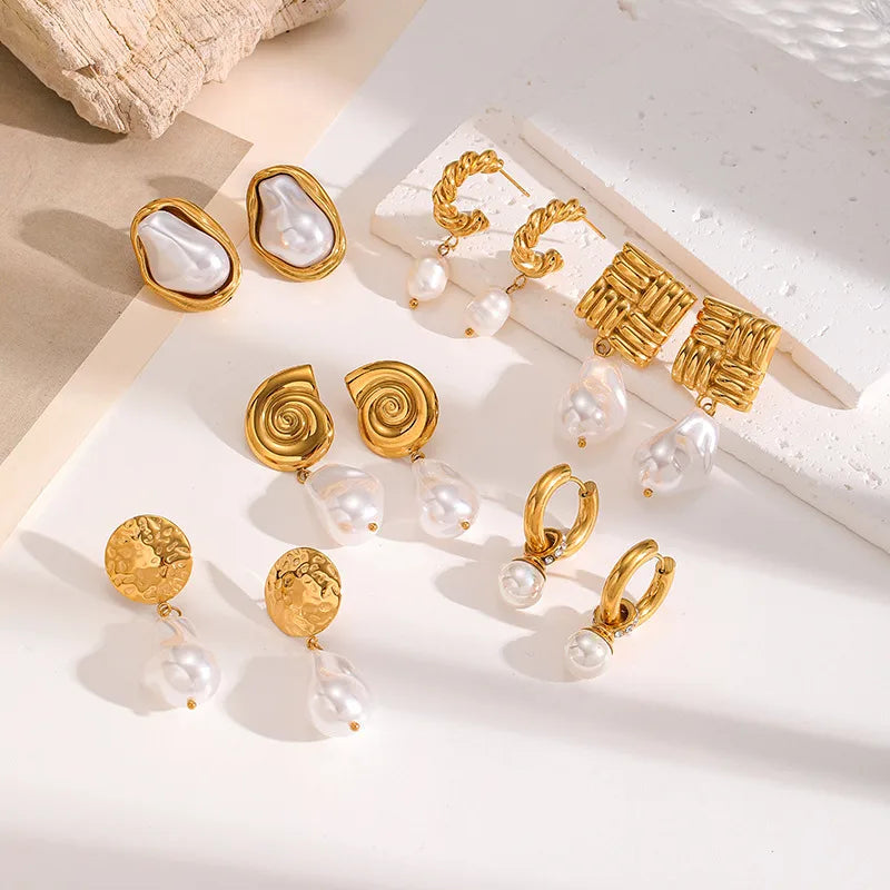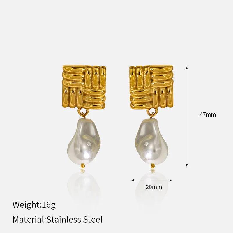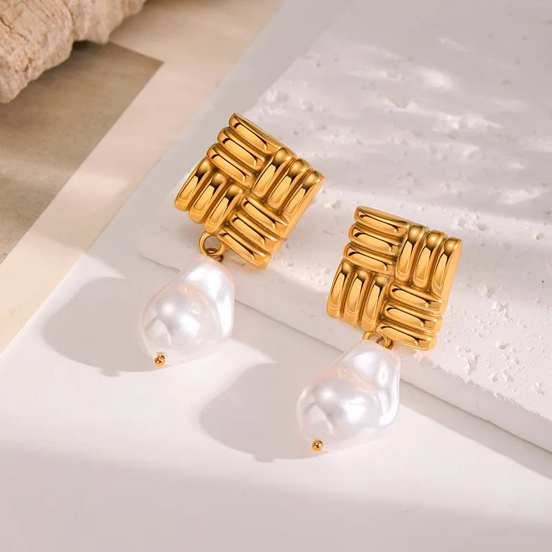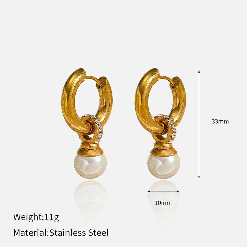 Ins Style Stainless Steel Pearl Diamond Embedded Earrings Women's High-End Feelings Titanium Steel Ear Jewelry Geometric Pattern