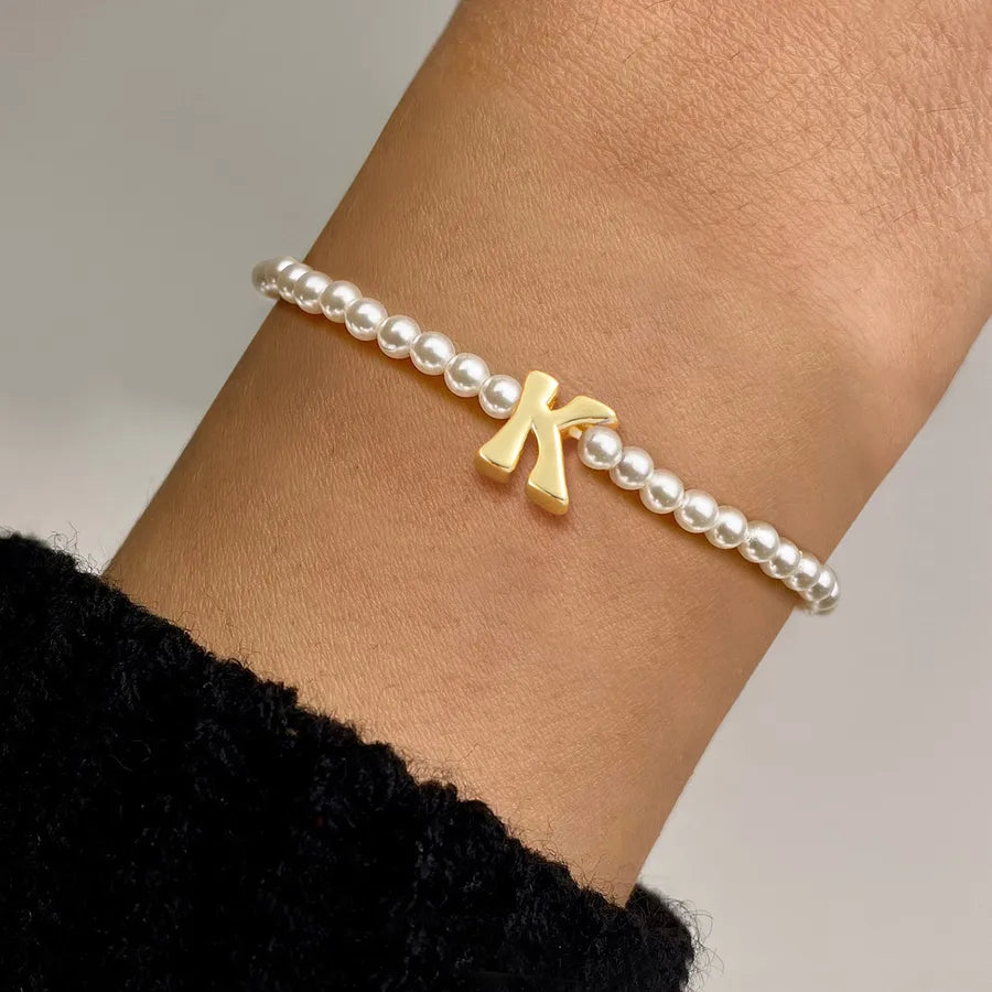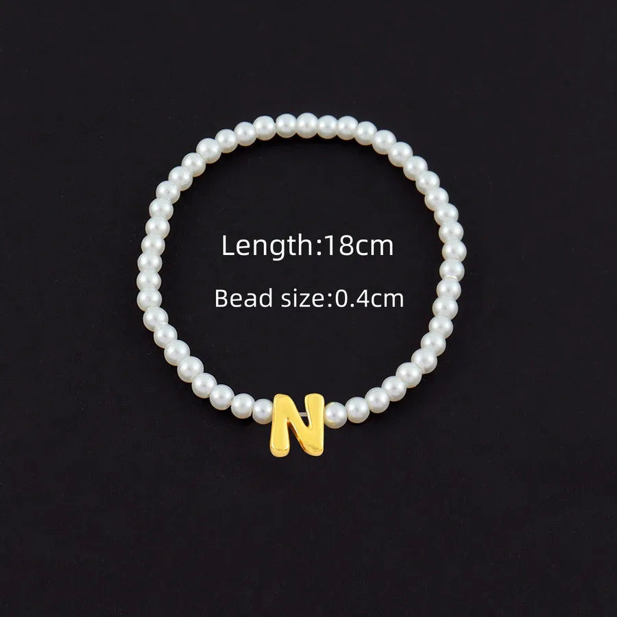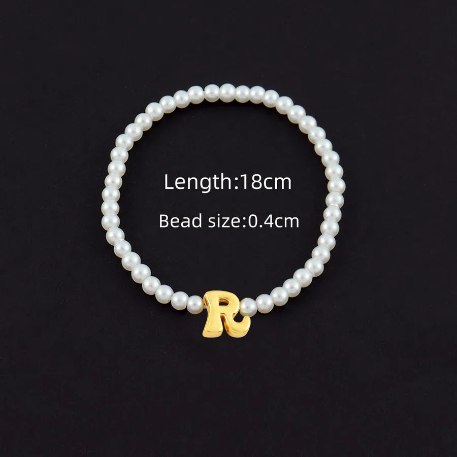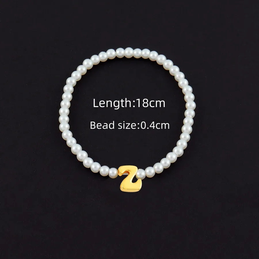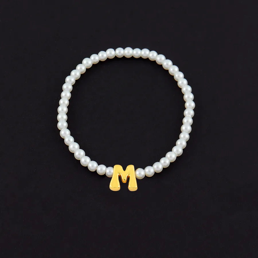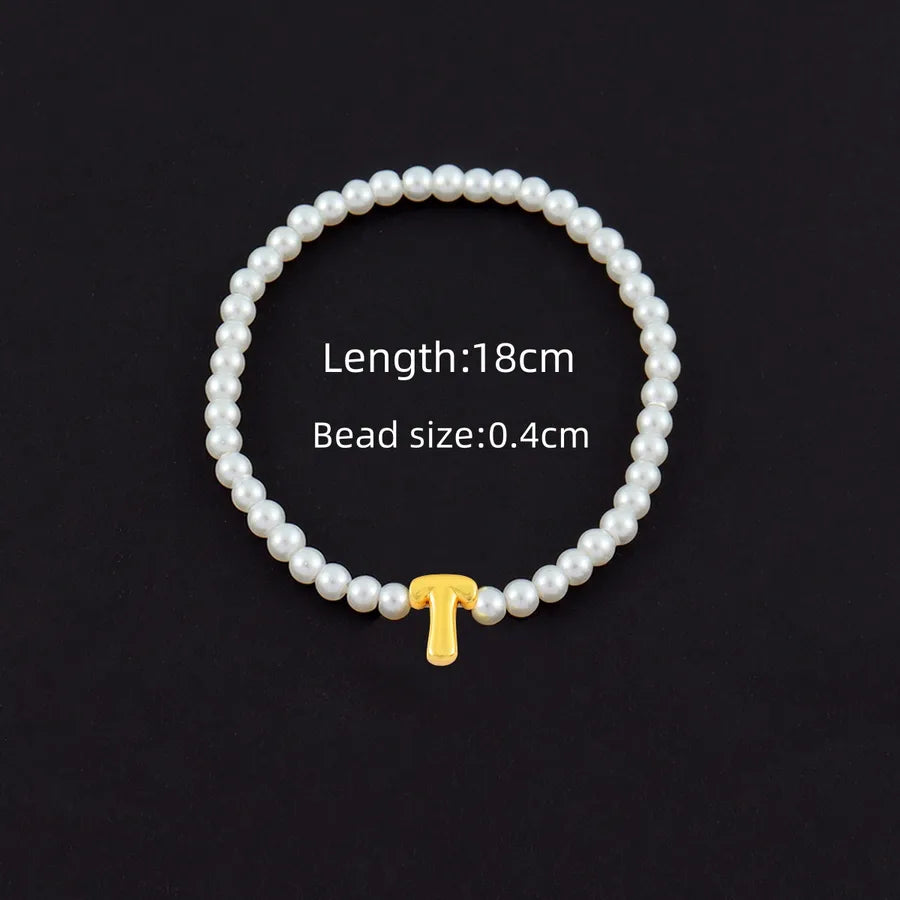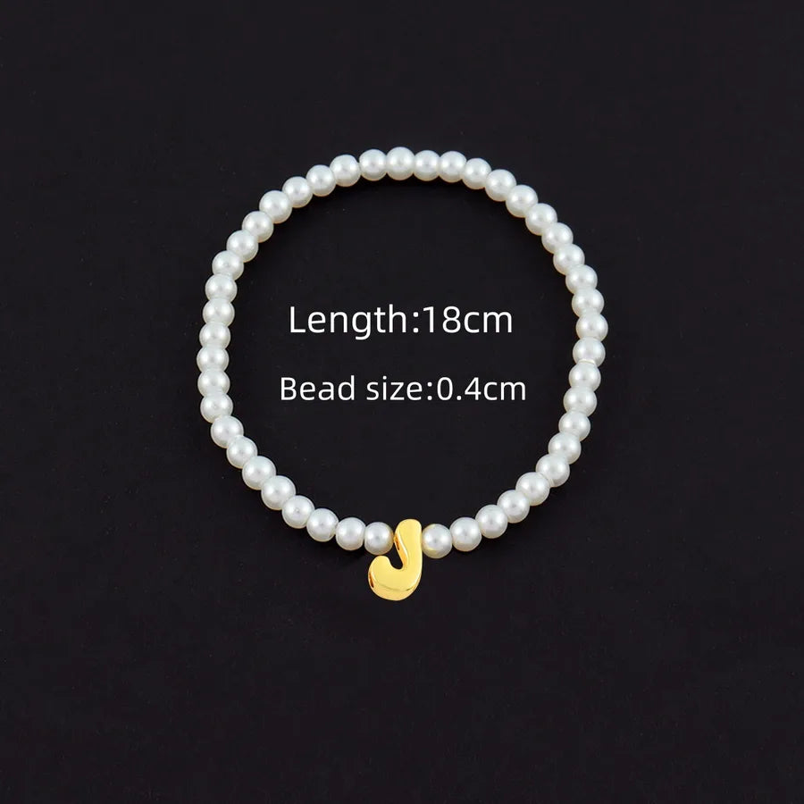 Universal Electroplated 14K Real Gold Cute Simple Bubble Initial Retro Artificial Pearl Beaded Women's Bracelet