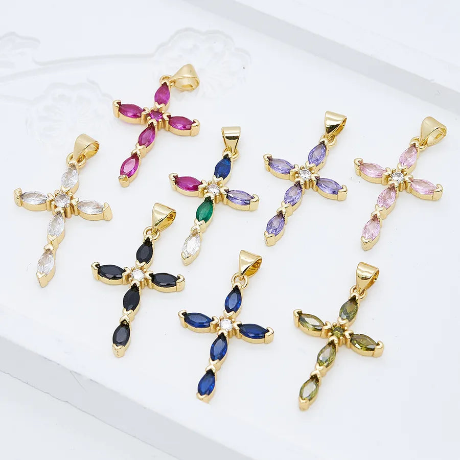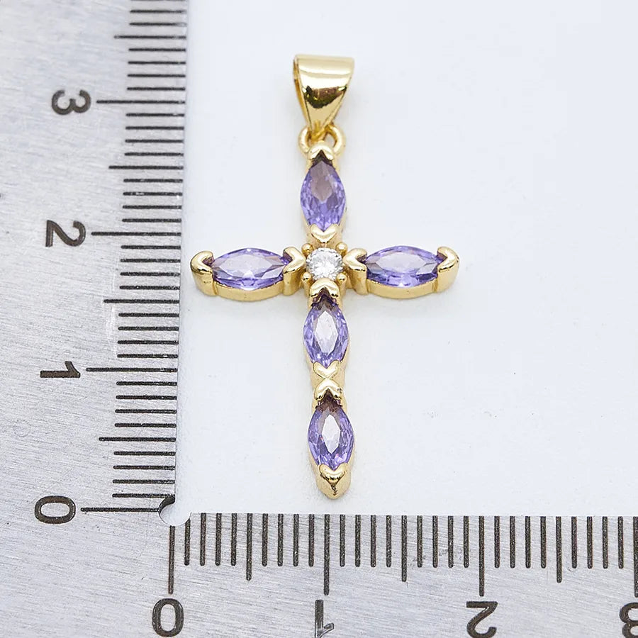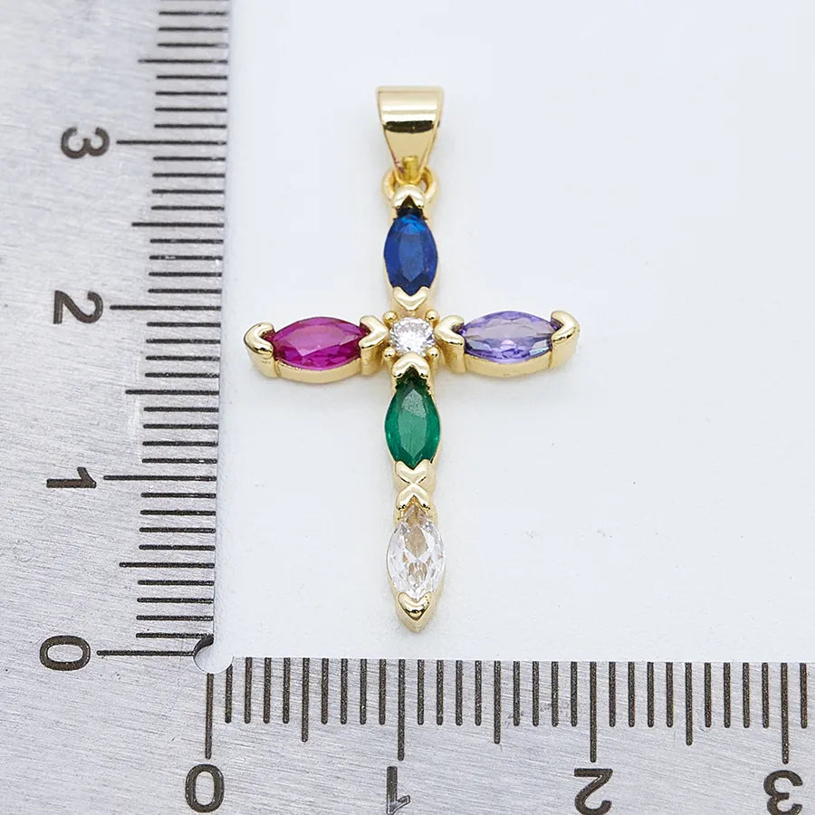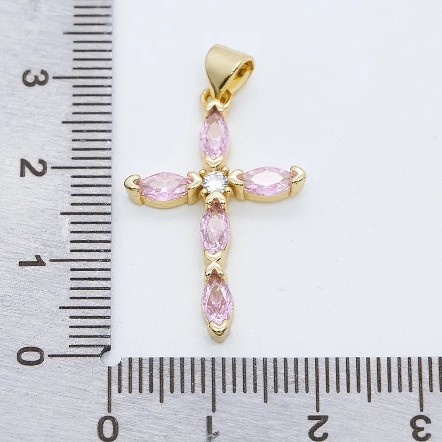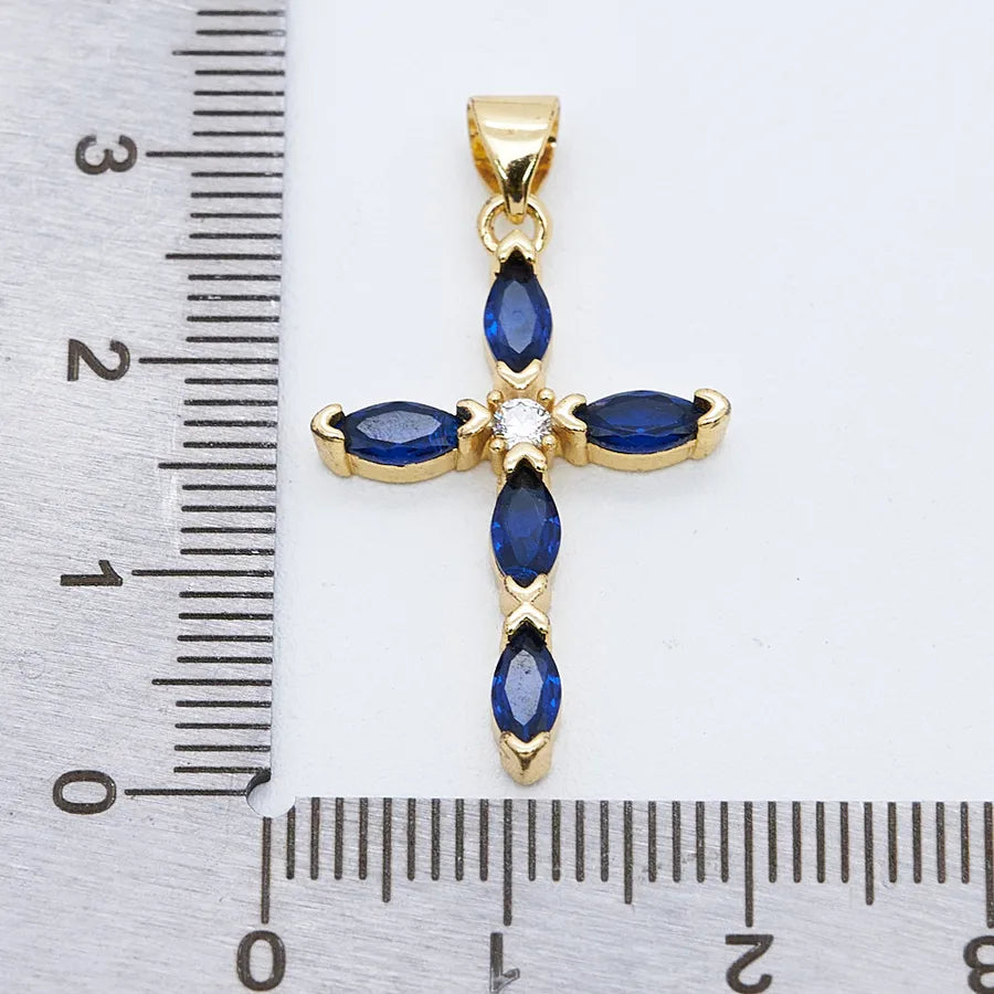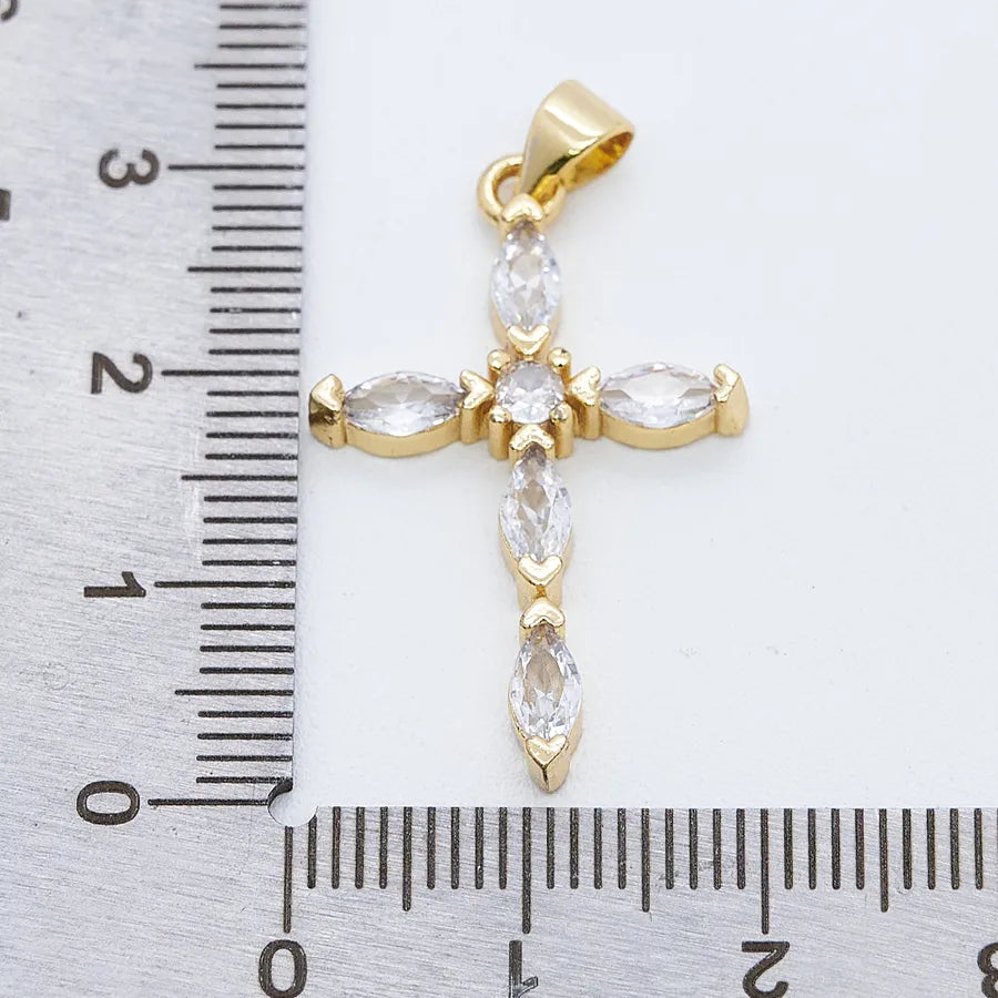 1 Pc/Package Copper Zircon 18K Gold Plated Cross Pendant