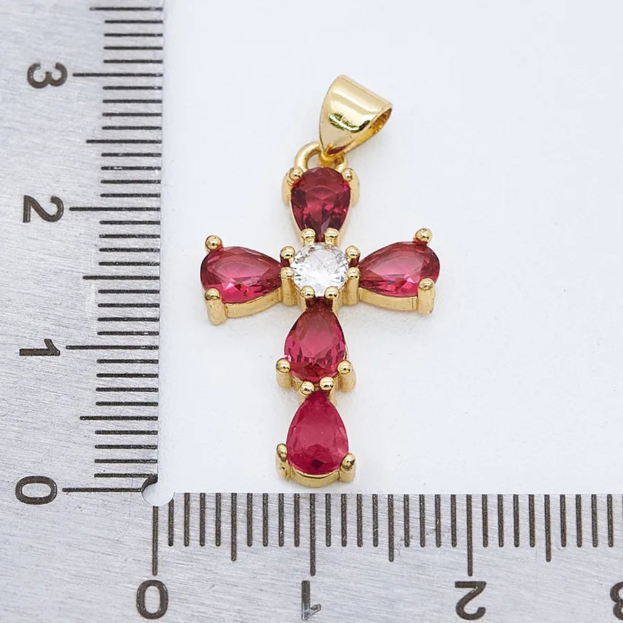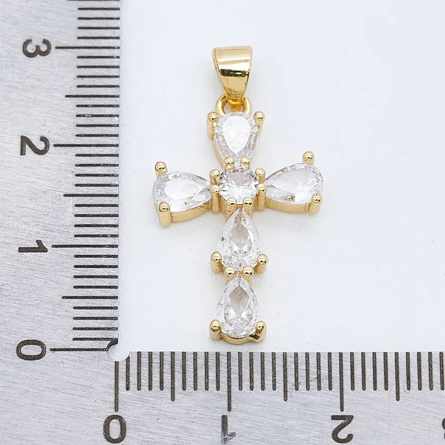 1 Pc/Package Copper Zircon 18K Gold Plated Cross Pendant