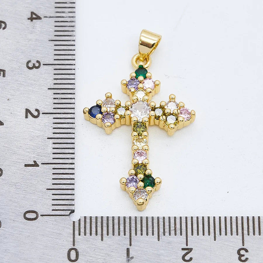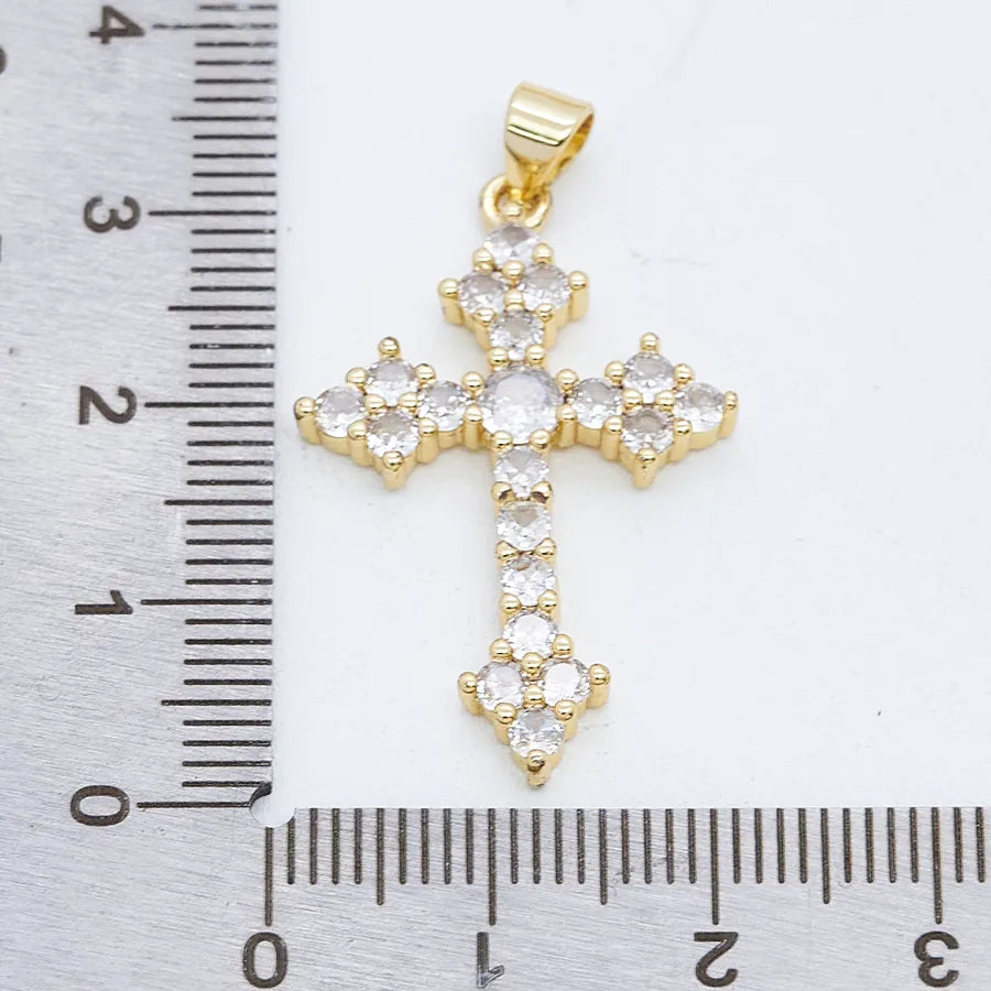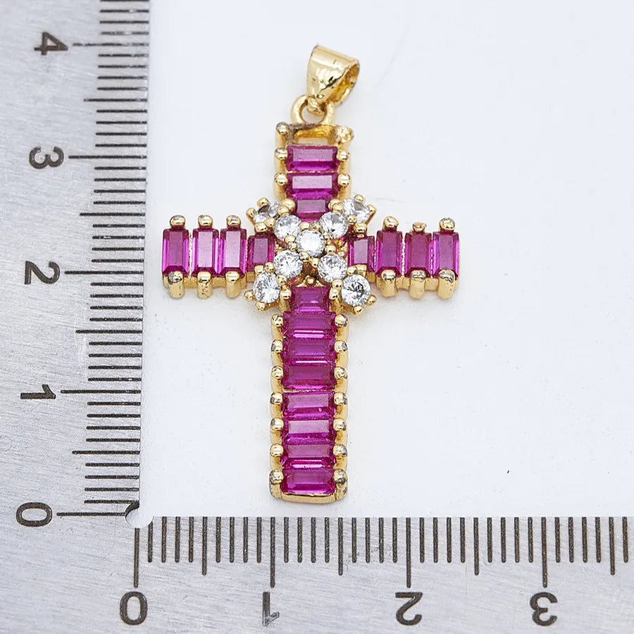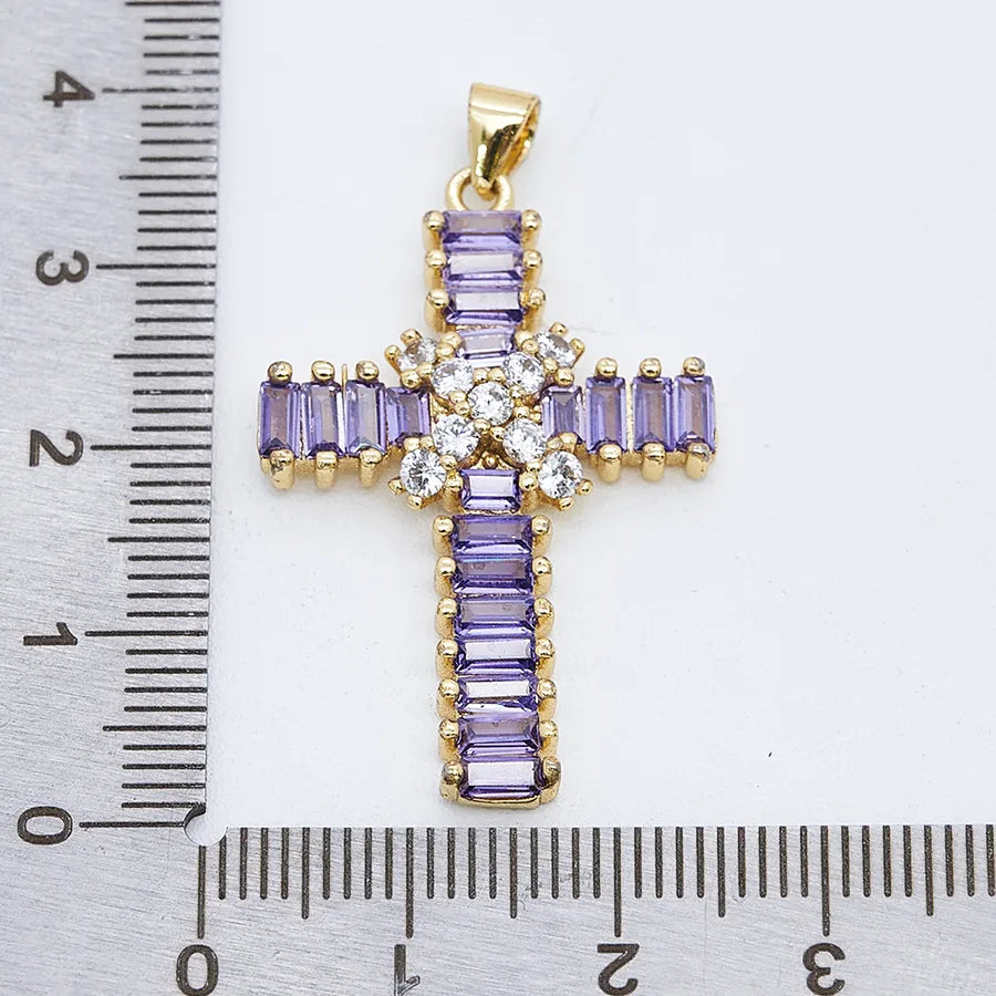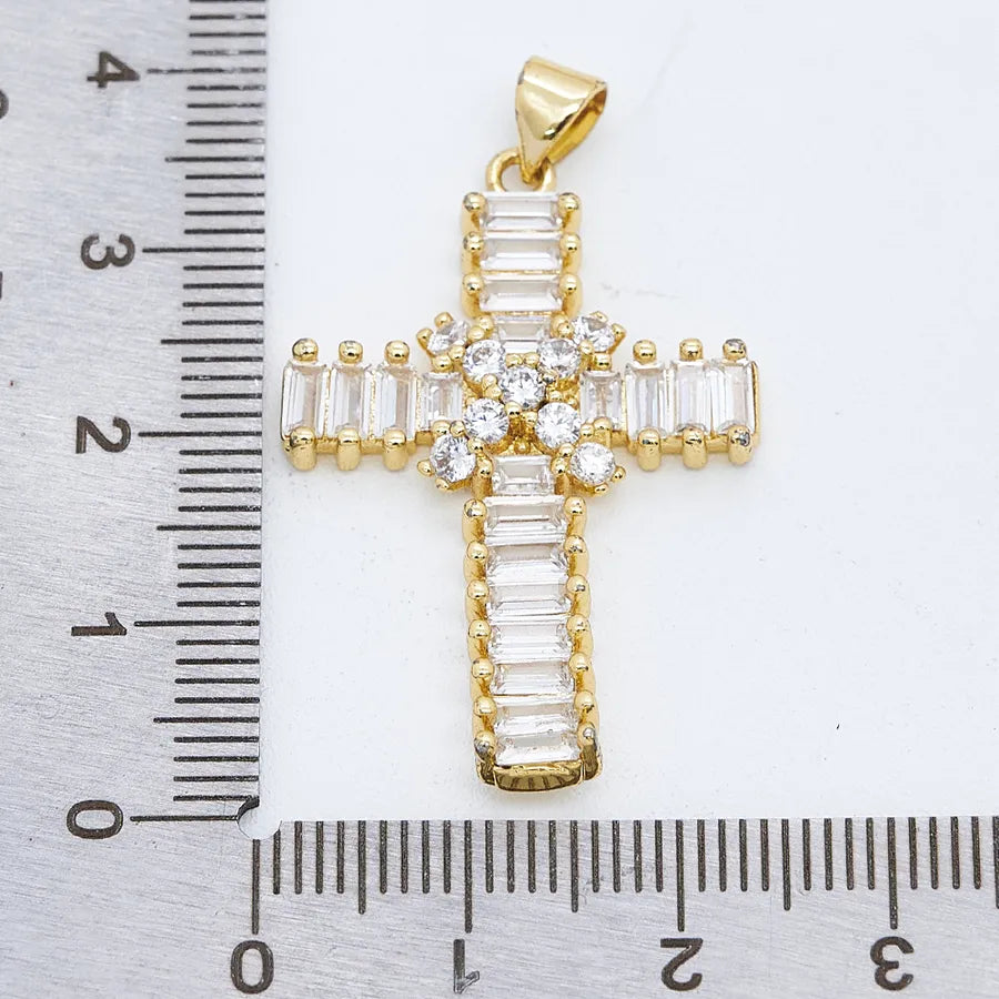 1 Pc/Package Copper Zircon 18K Gold Plated Cross Rectangle Pendant