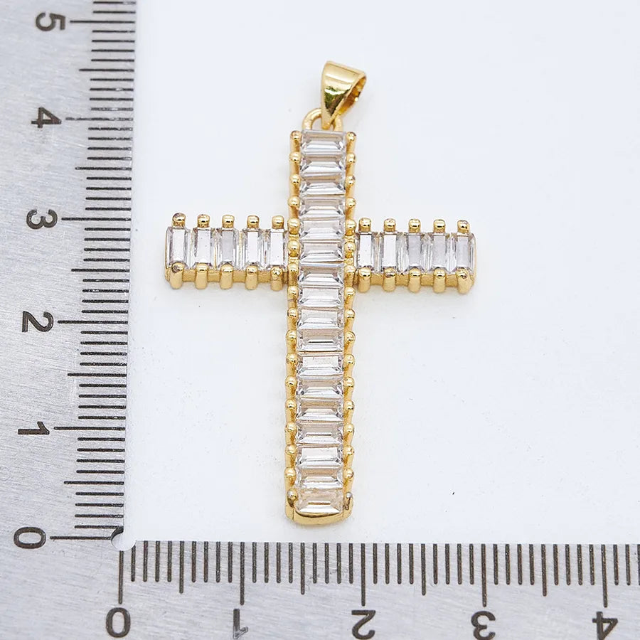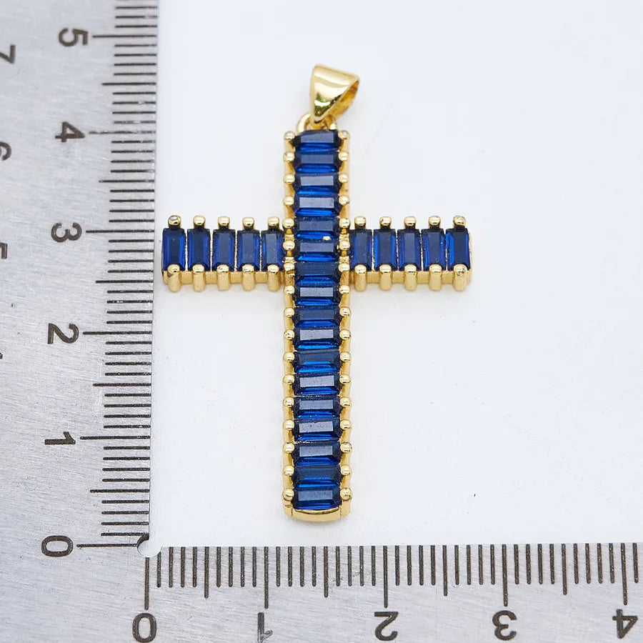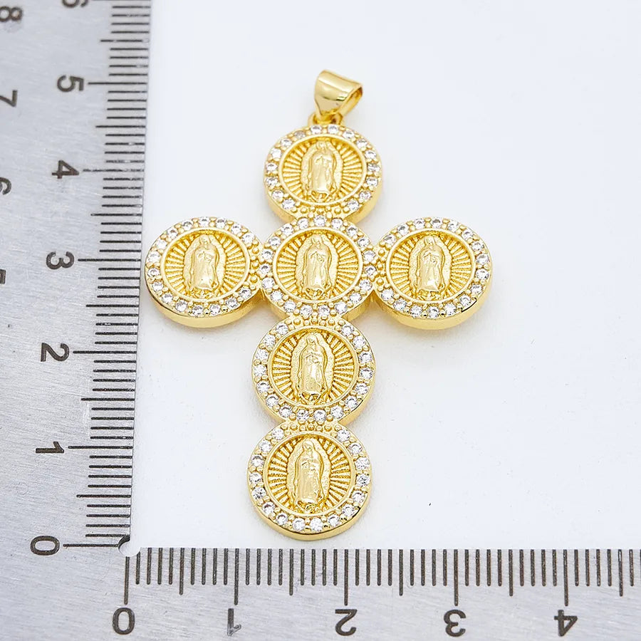 1 Pc/Package Copper Zircon 18K Gold Plated Cross Virgin Mary Rectangle Pendant