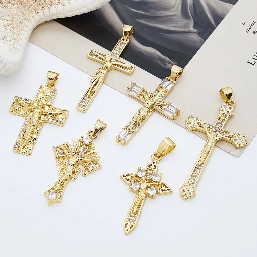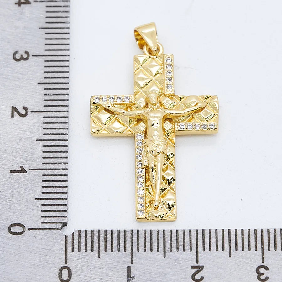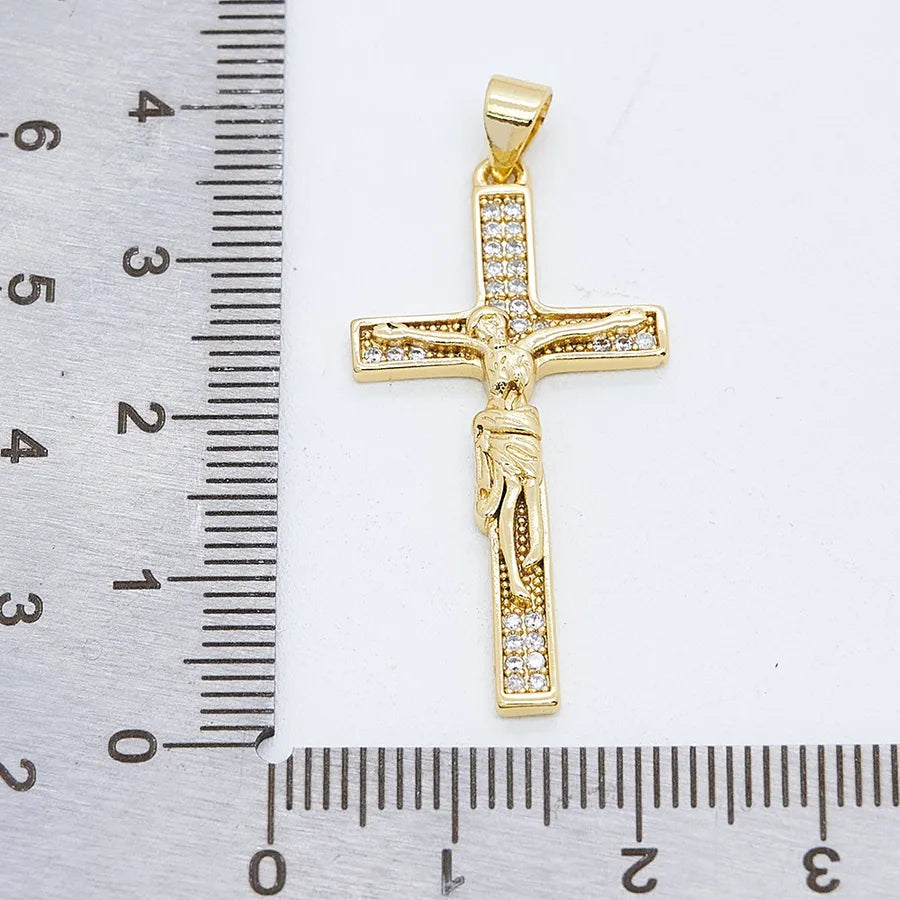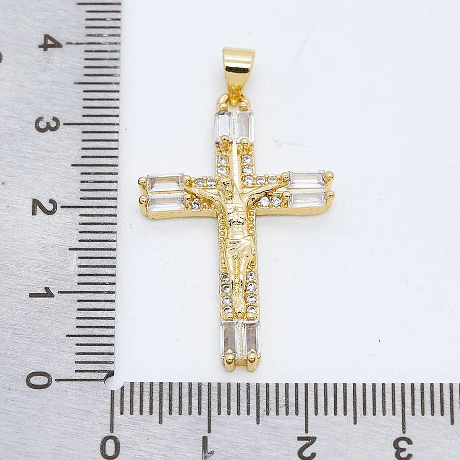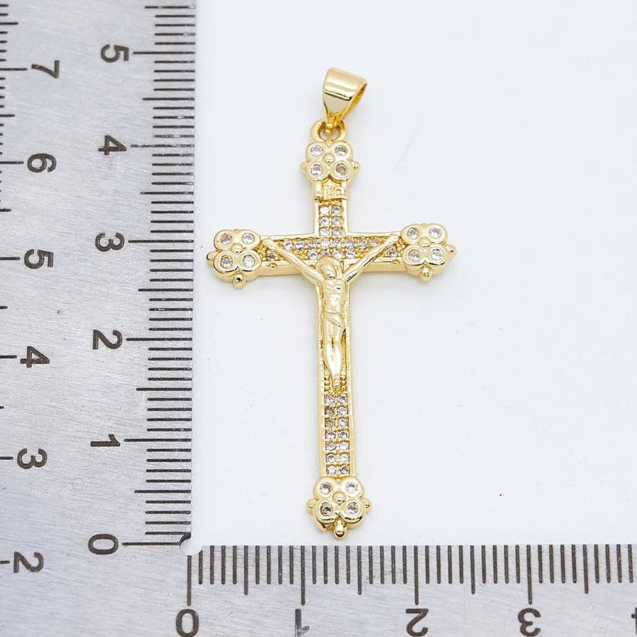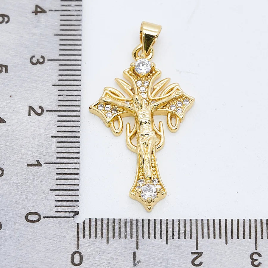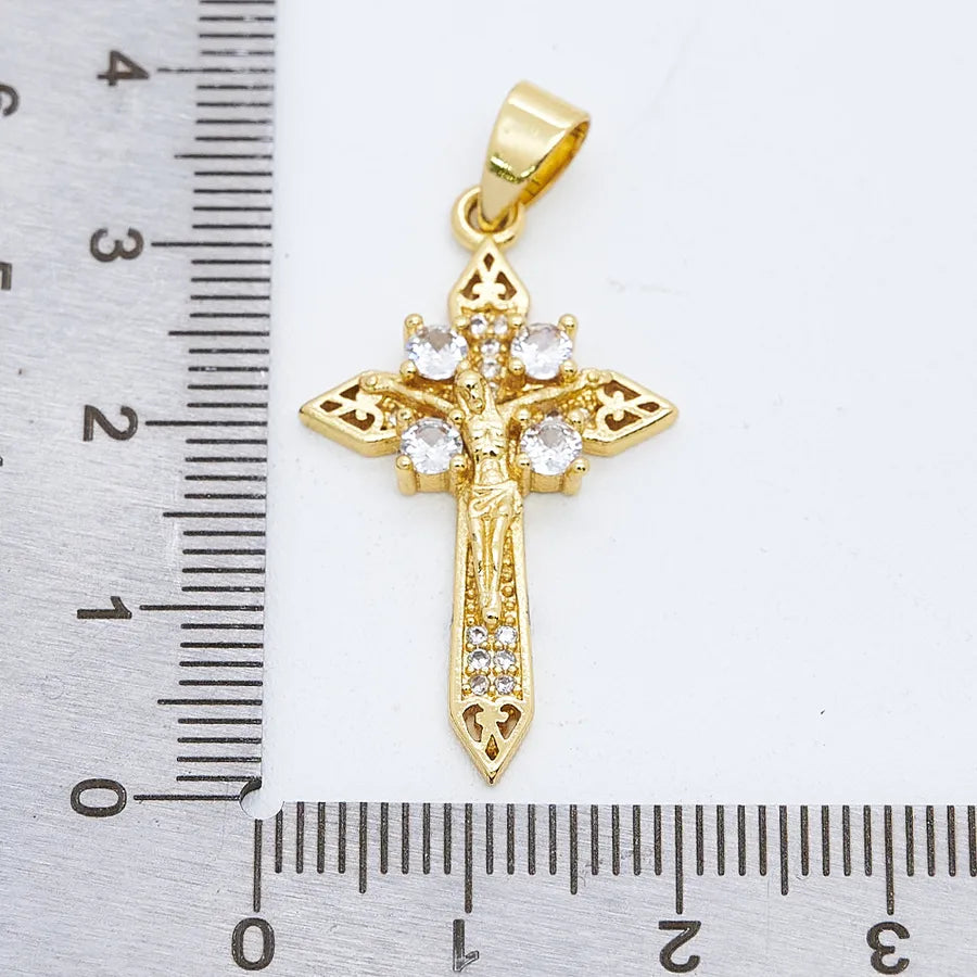 1 Pc/Package Copper Zircon 18K Gold Plated Crucifix Cross Pendant