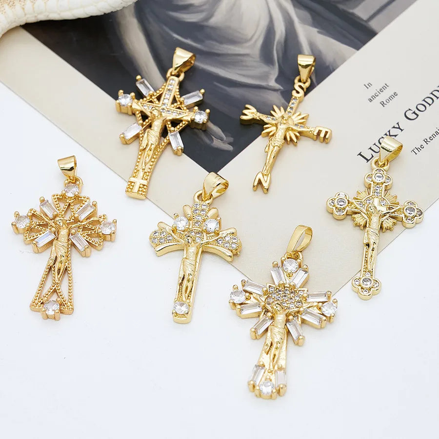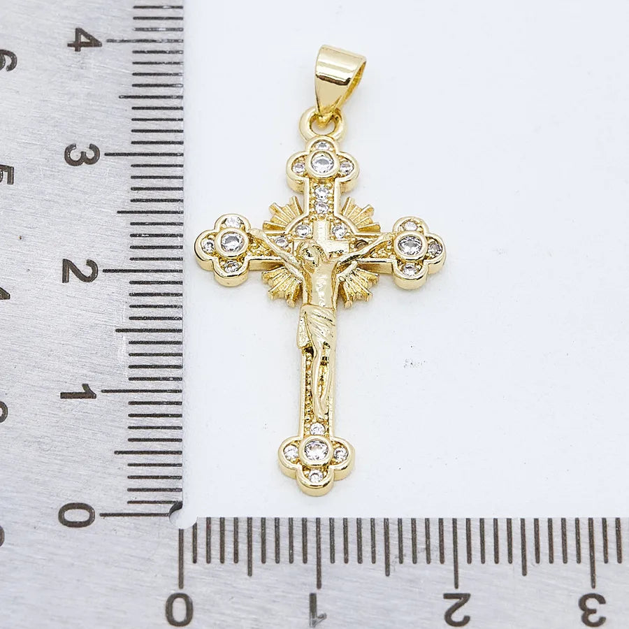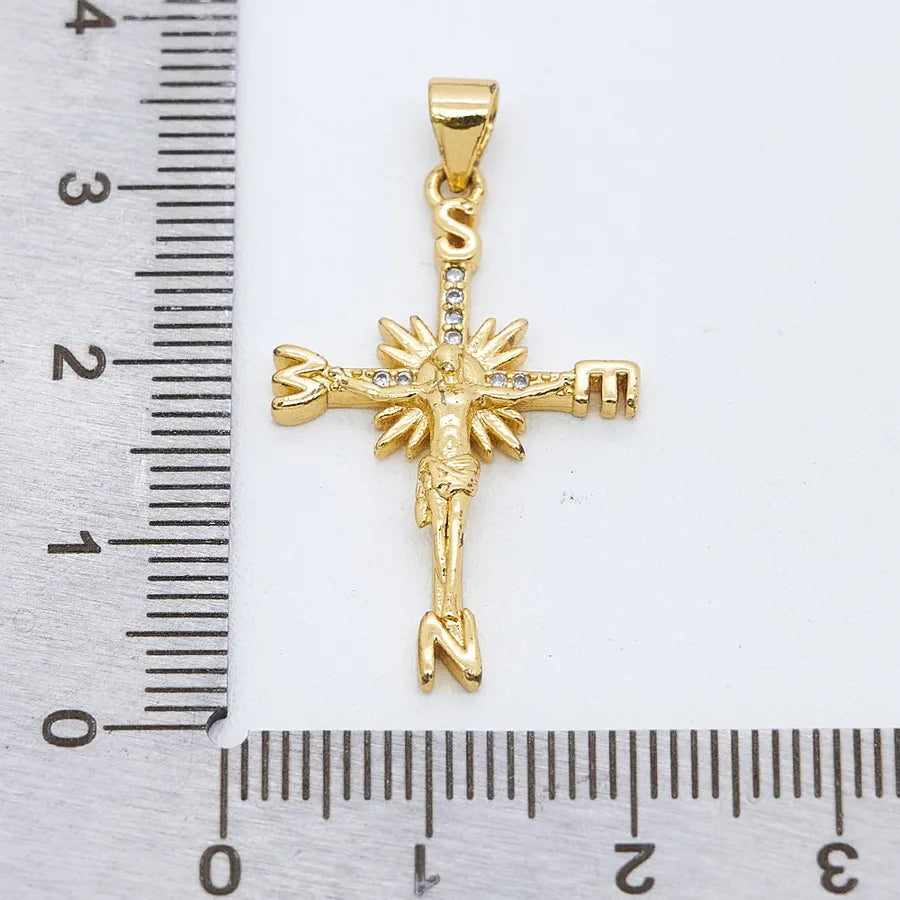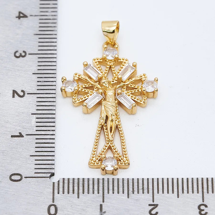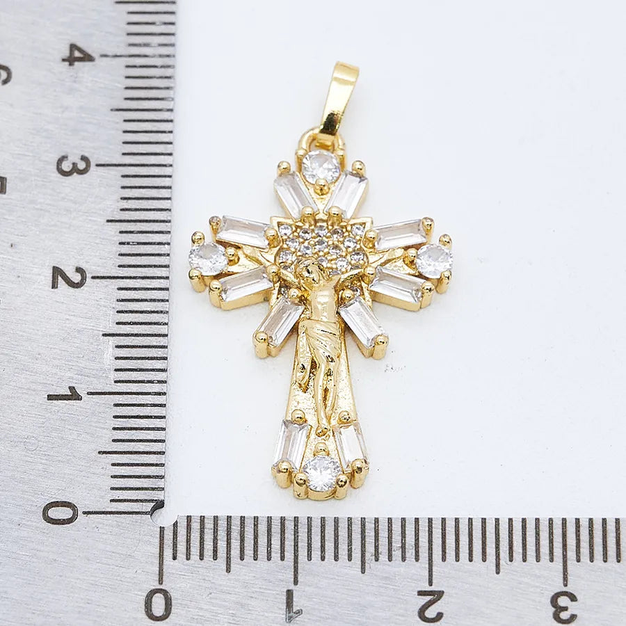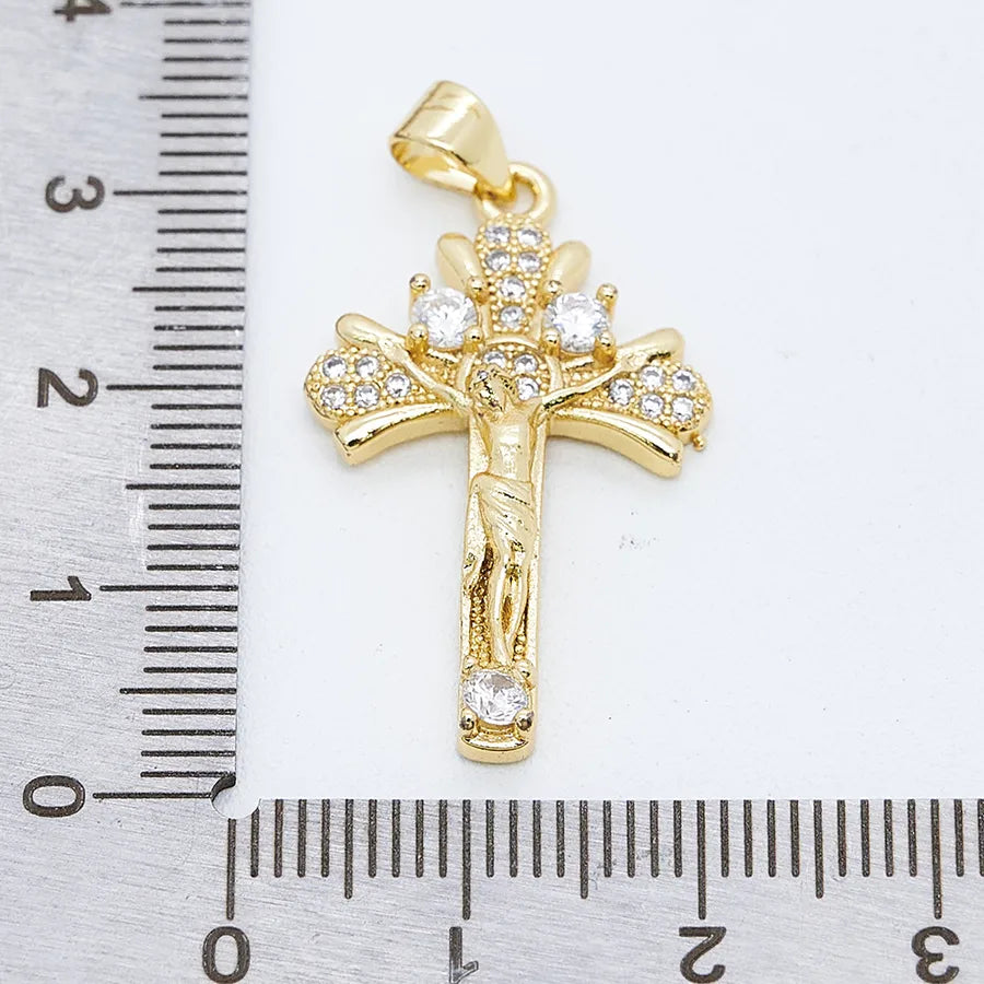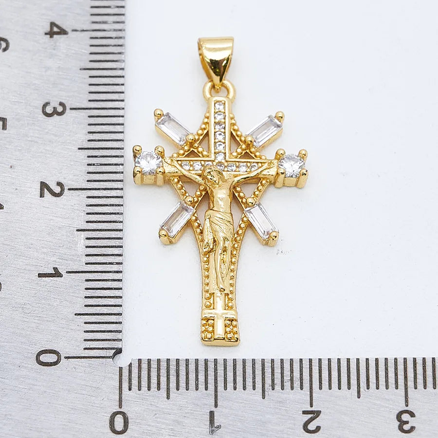 1 Pc/Package Copper Zircon 18K Gold Plated Crucifix Cross Pendant