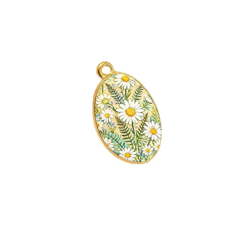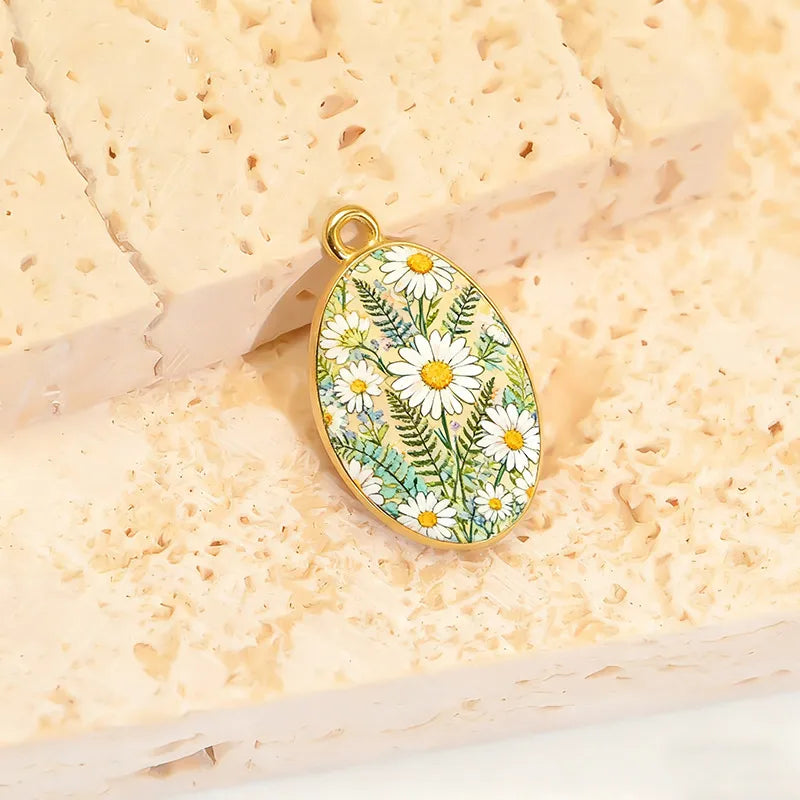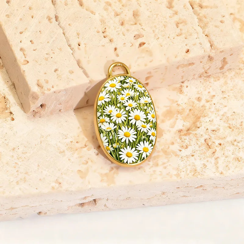 Stainless Steel Pendant Accessories Small Daisy Camellia Drop Oil Craft Jewelry Parts And Accessories