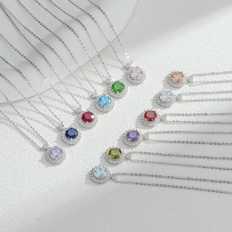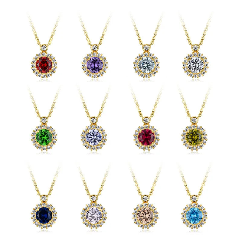 Twelve Zodiac Stones Necklace Women's S925 Sterling Silver Luxury Fashion Diamond Embedded Pendant Clavicle Chain Geometric Pattern