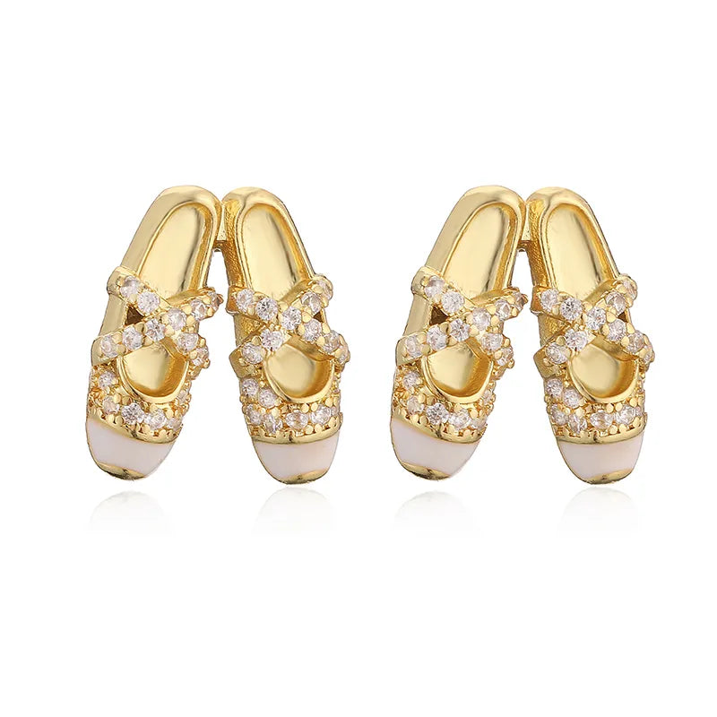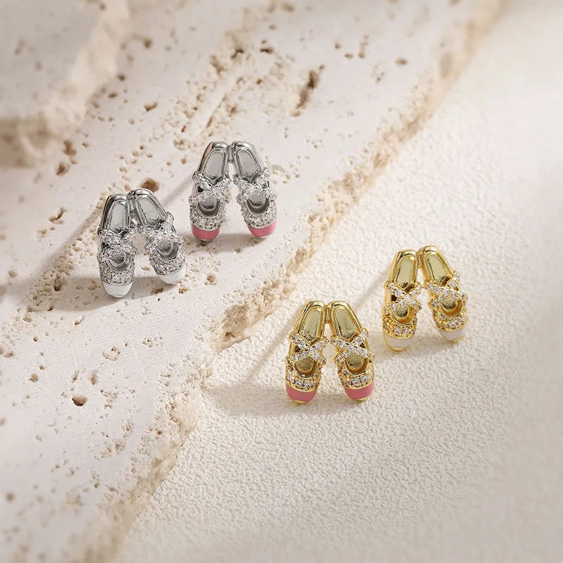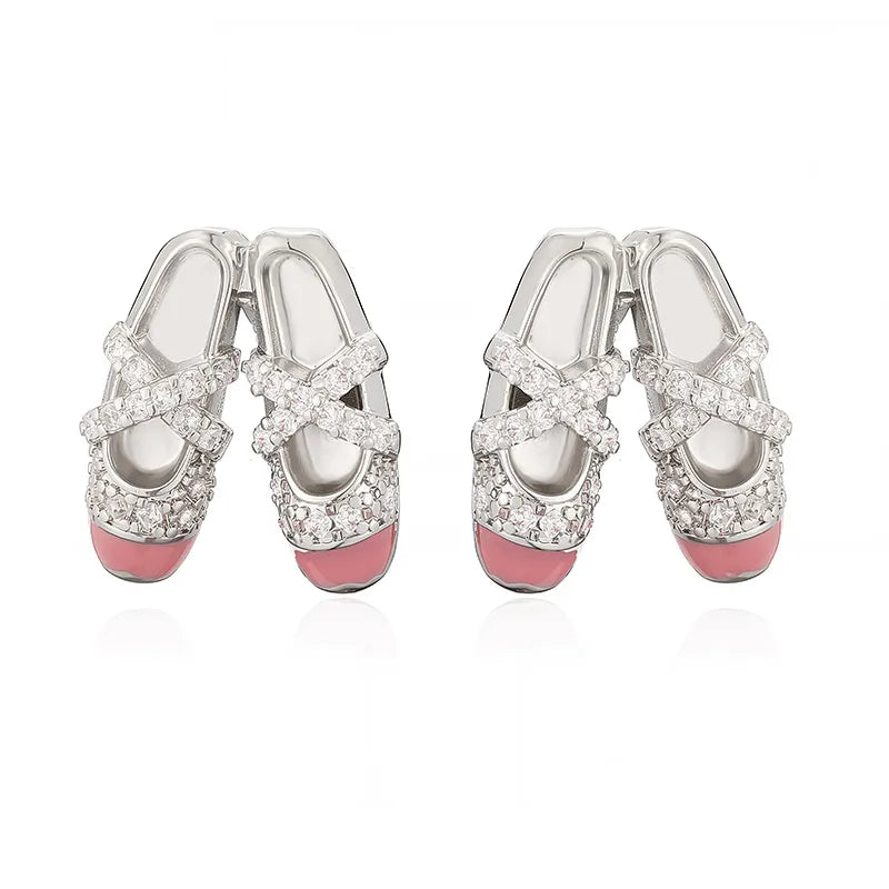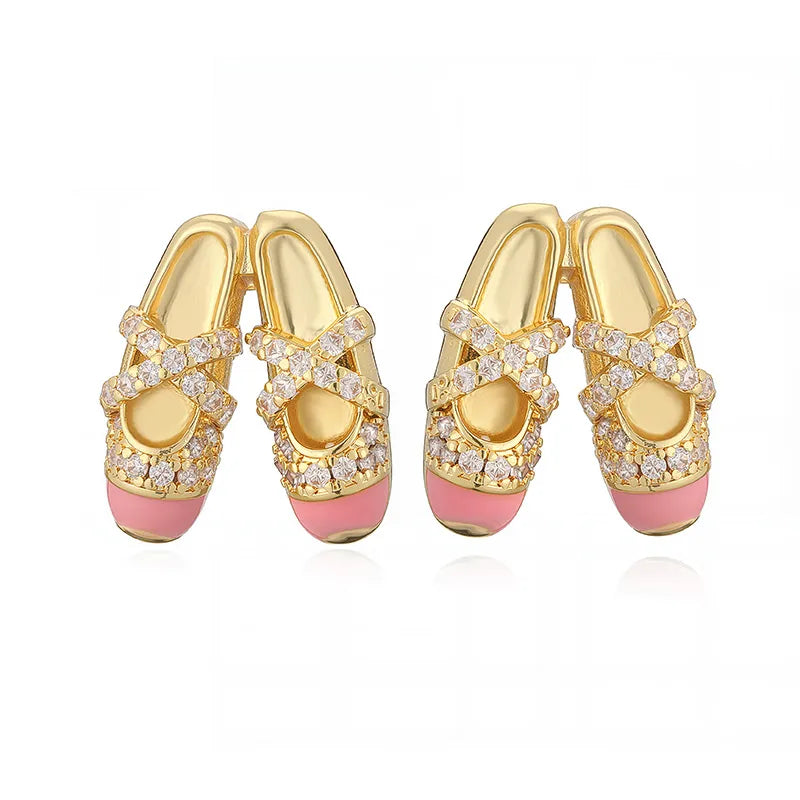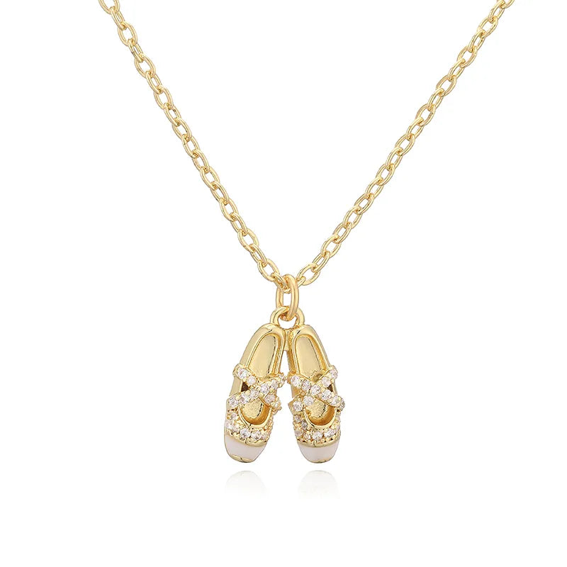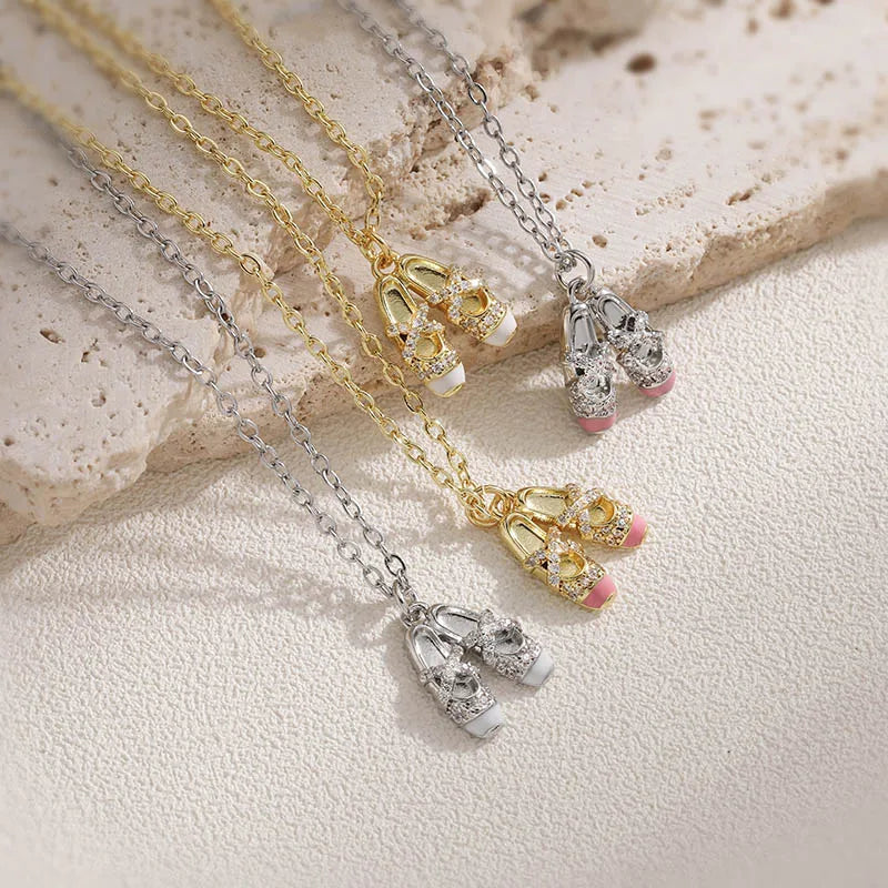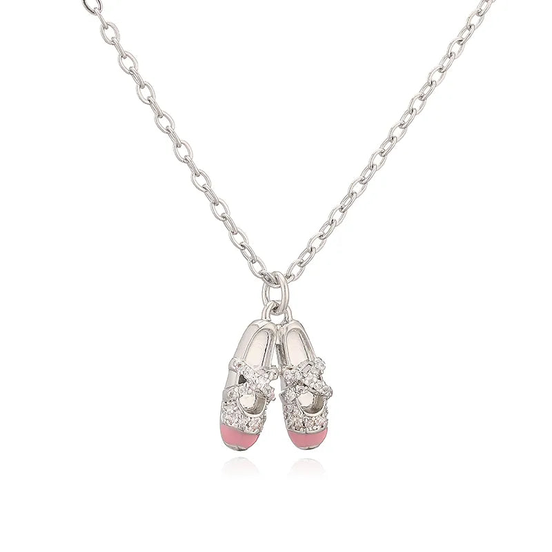 Elegant Sweet Colorful Oil Drop Ballet Shoes Necklace Earrings Niche Design Ins Layered Jewelry Set Wholesale