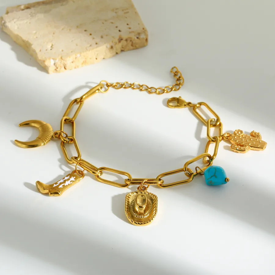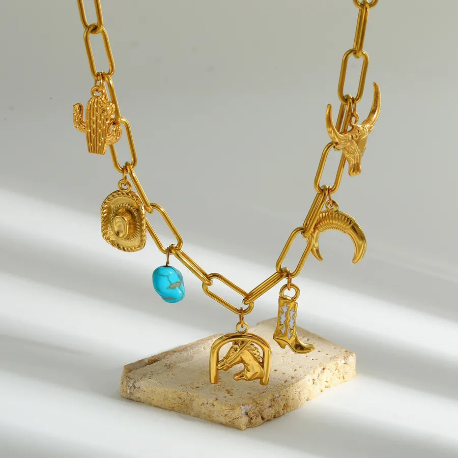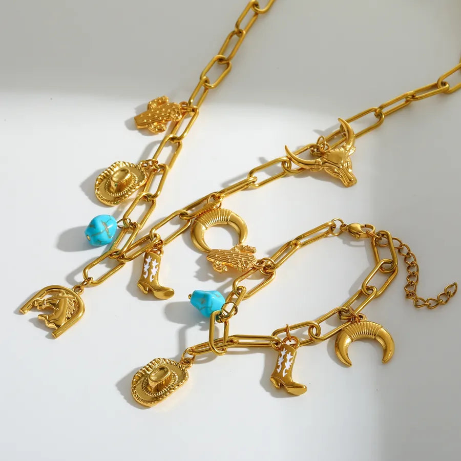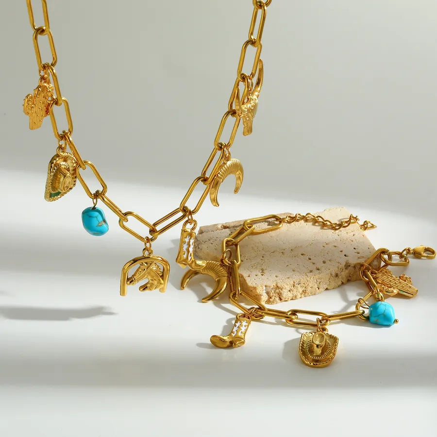 Fashion Casual 18K Gold Plated Stainless Steel Natural Stone High Top Boot Pendant Necklace Bracelet Jewelry Set For Women