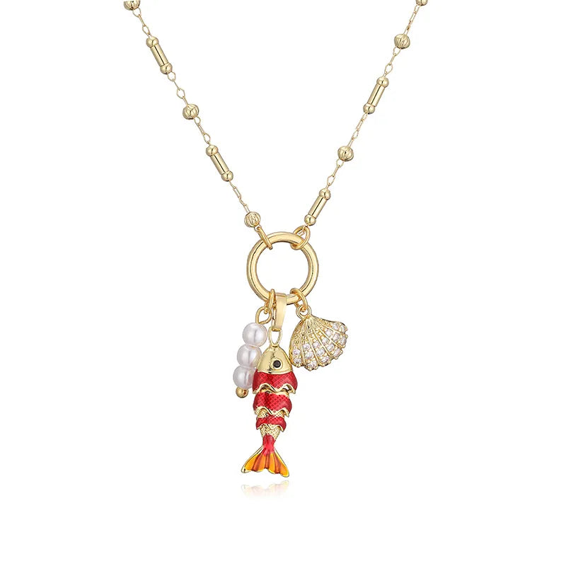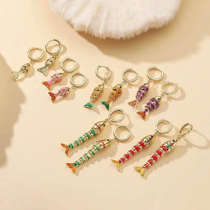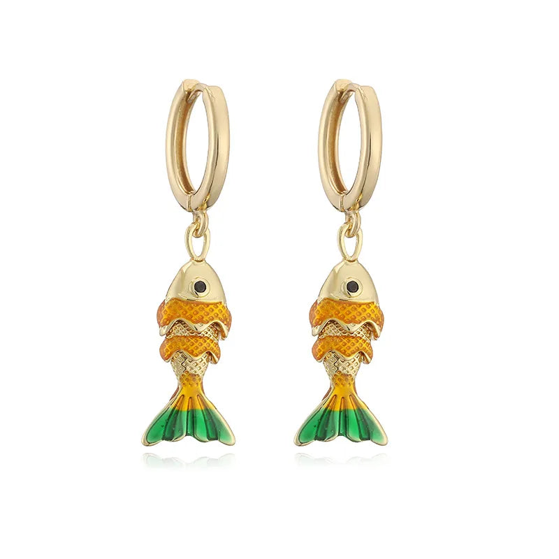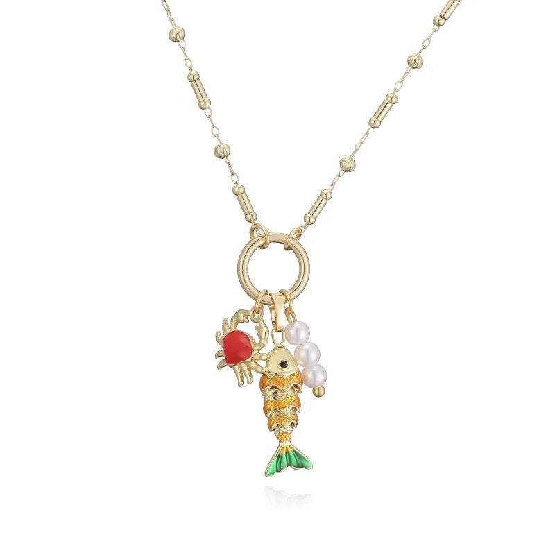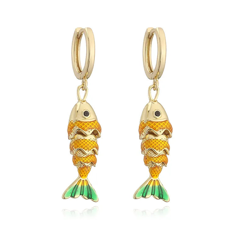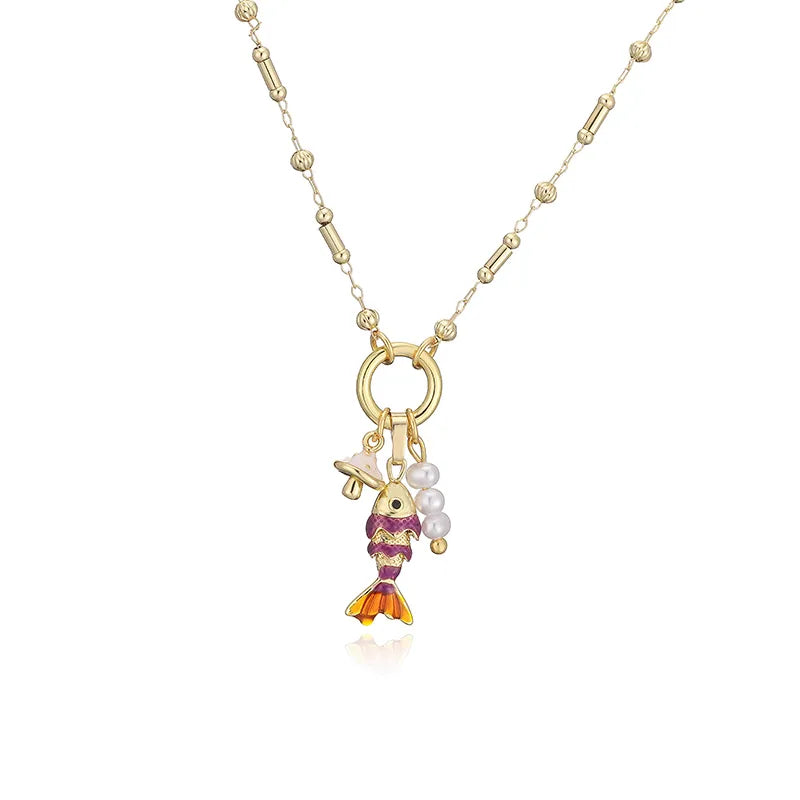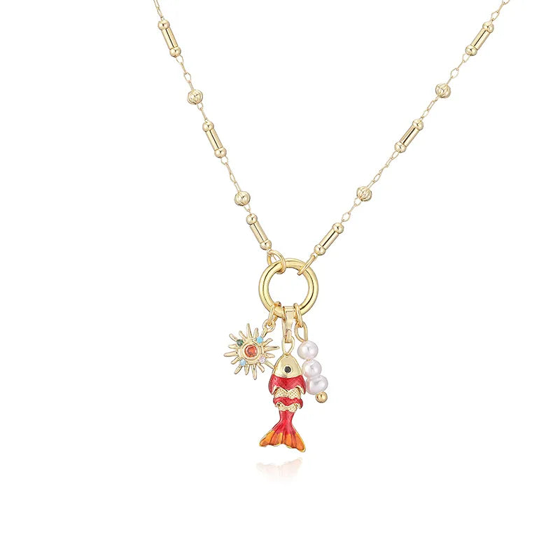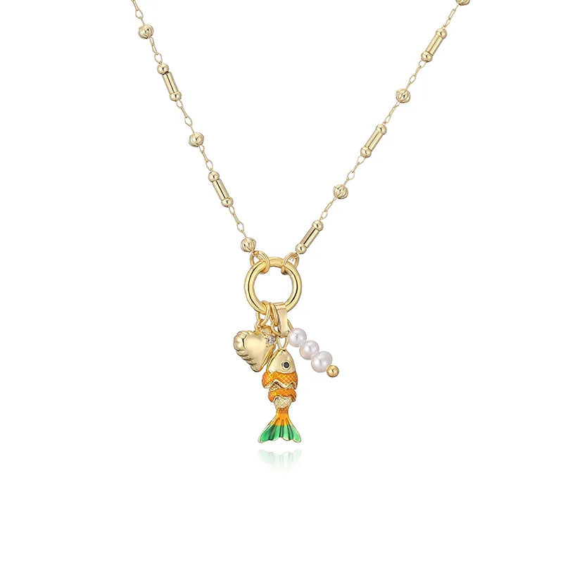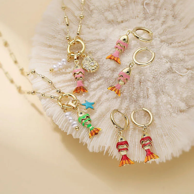 Hot Selling Enamel Color Swingable Goldfish Necklace Earrings Niche Design Ocean Series Koi Jewelry Set Water Plating 18K Real Gold