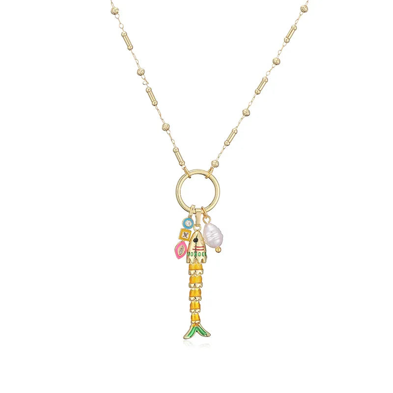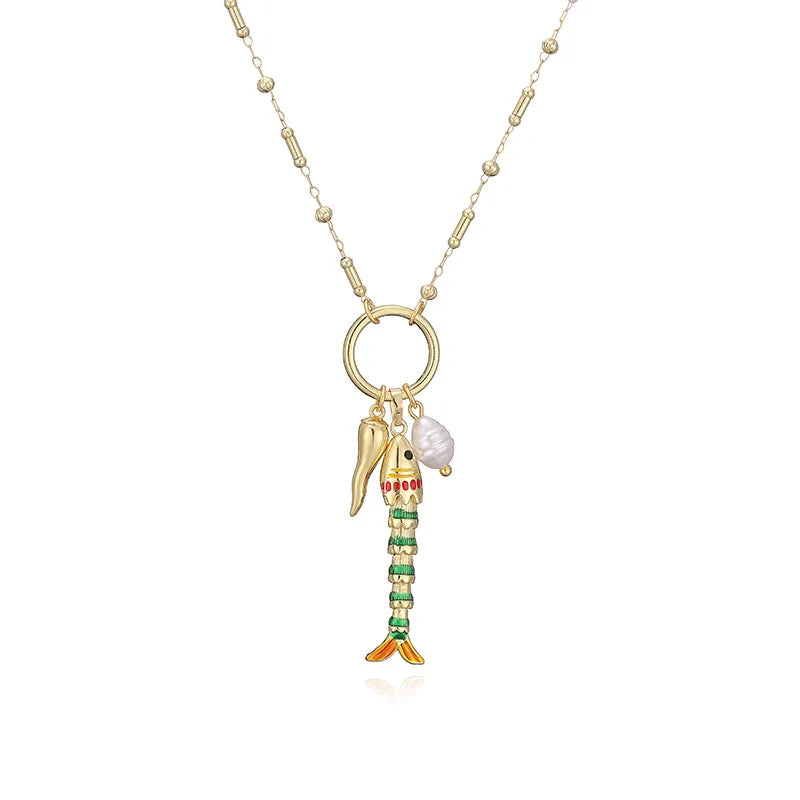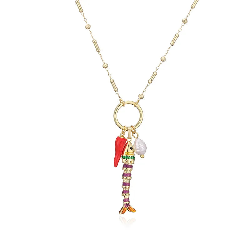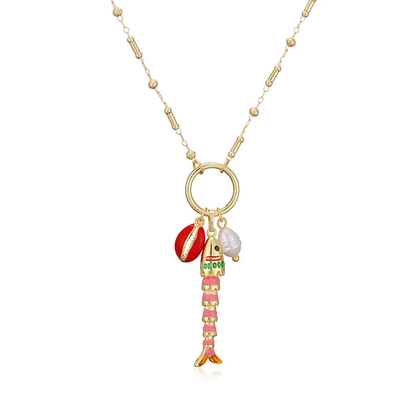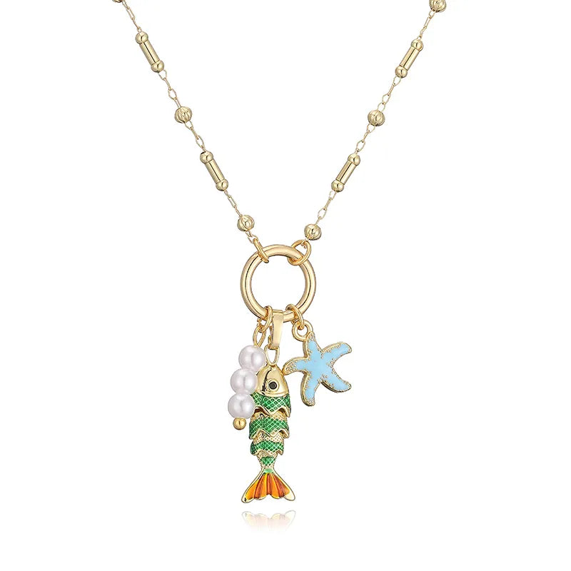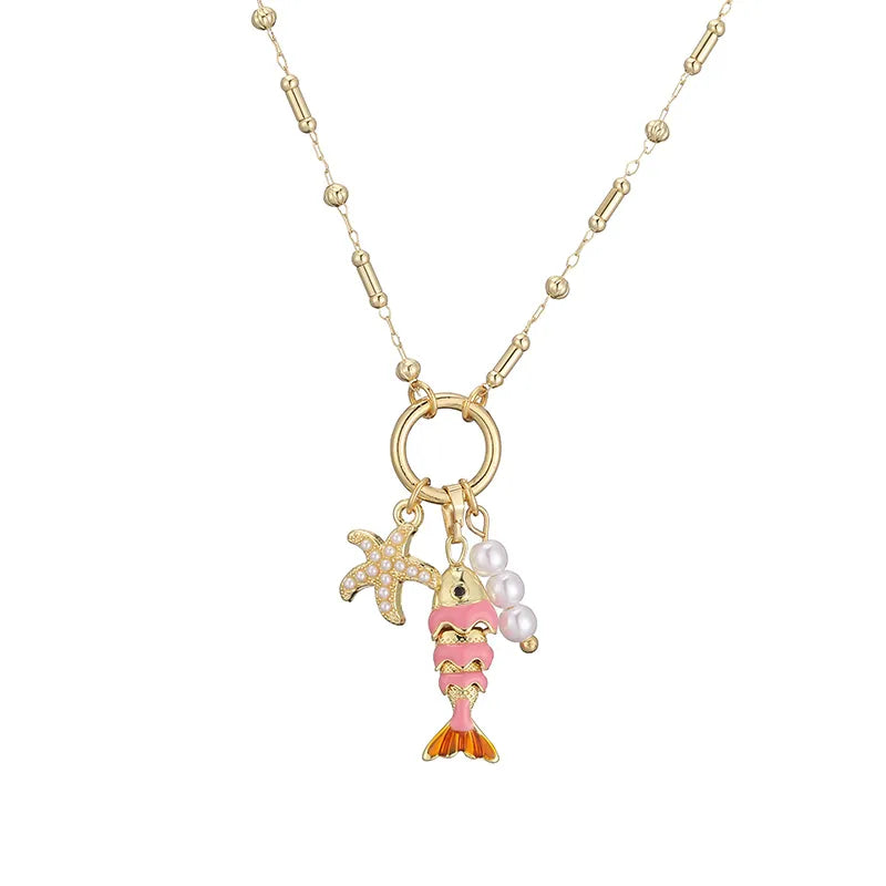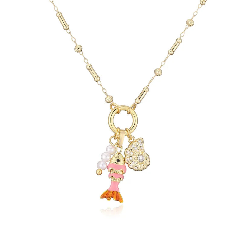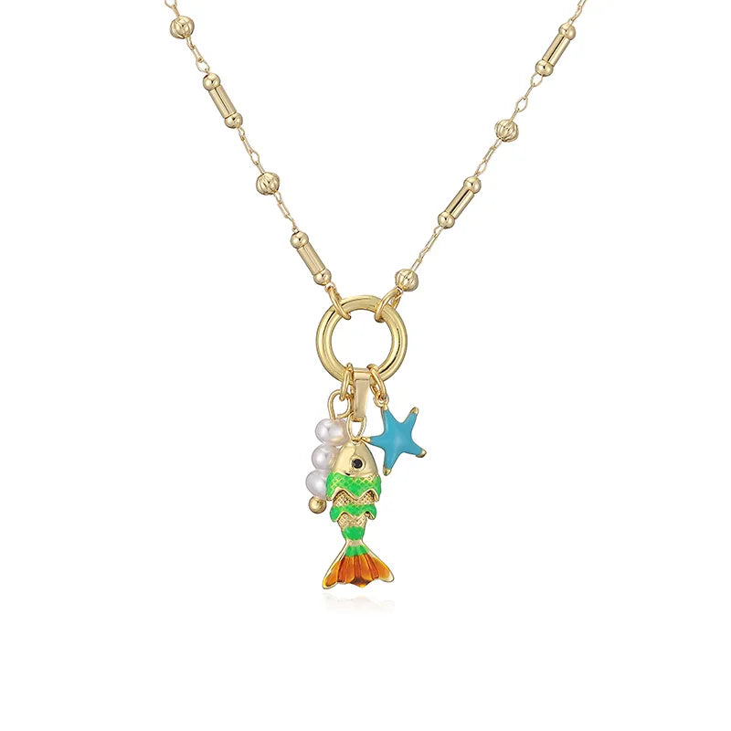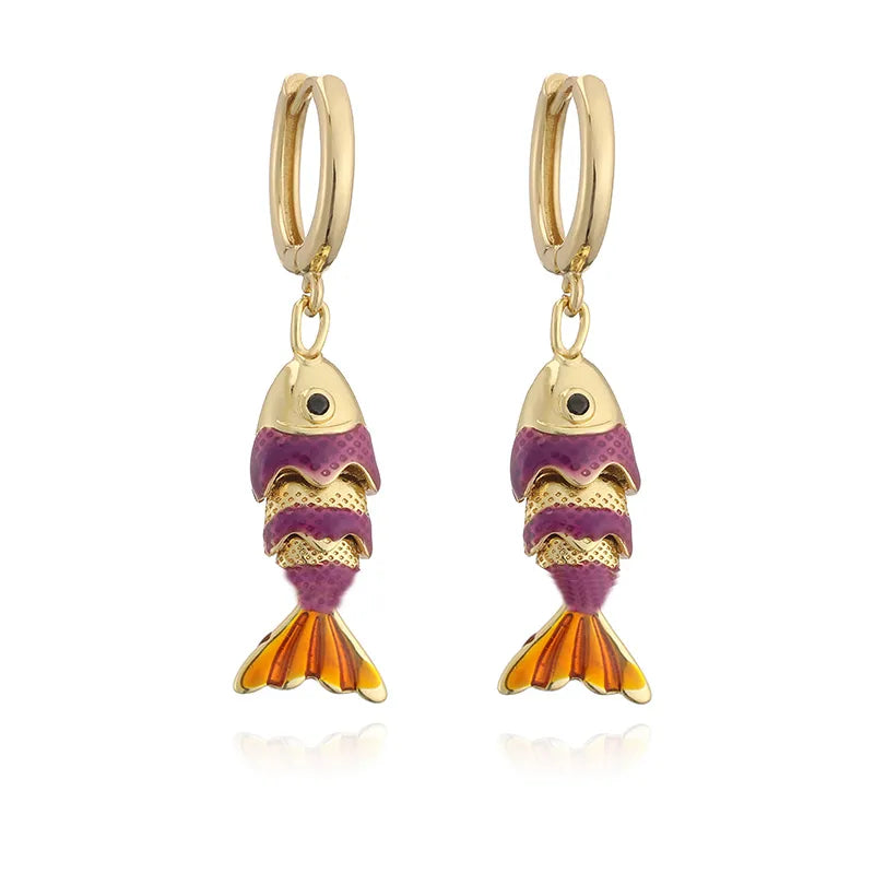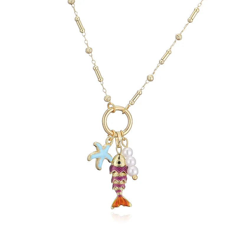 Hot Selling Enamel Color Swingable Goldfish Necklace Earrings Niche Design Ocean Series Koi Jewelry Set Water Plating 18K Real Gold