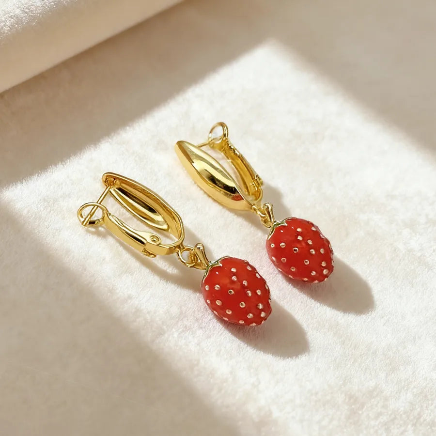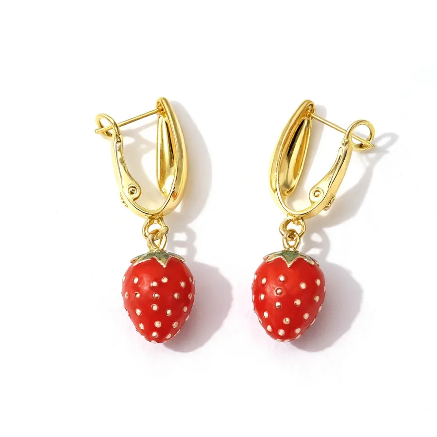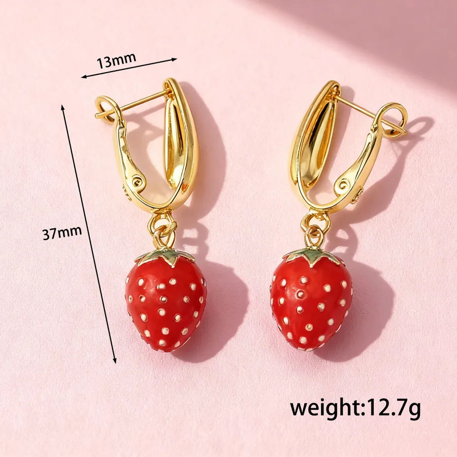 18K Gold Plated Copper Strawberry Earrings Casual Cute Simple Artistic Shiny Women's Jewelry Ear Studs For Daily Party Birthday Date Festival