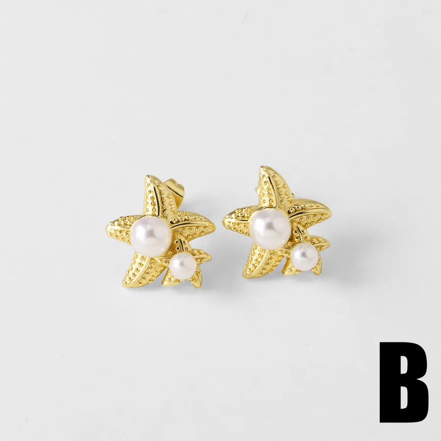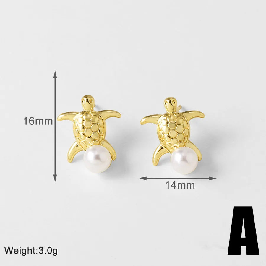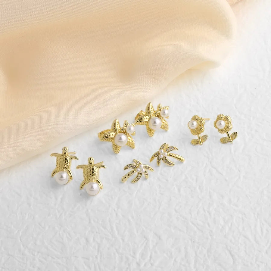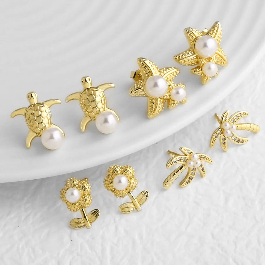AS Jewelry Hot-Selling Pearl Ocean Style Copper Plated 18K Gold Starfish Turtle Earrings Studs Ert06