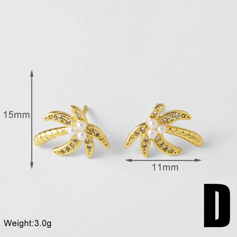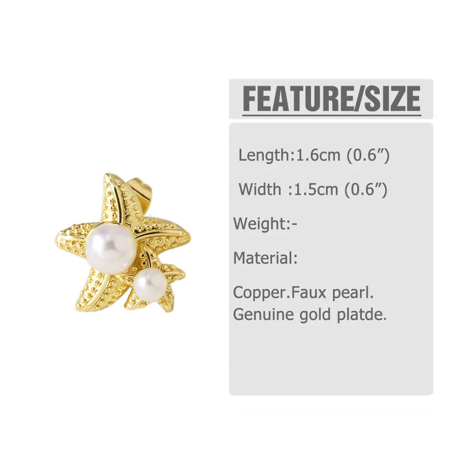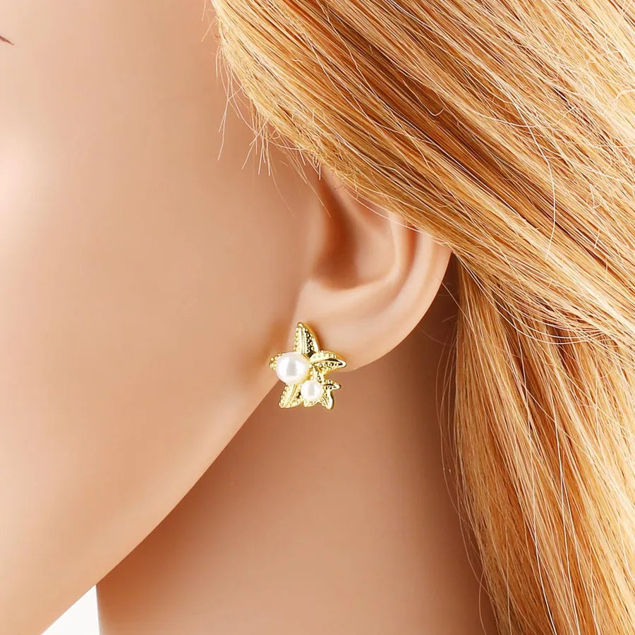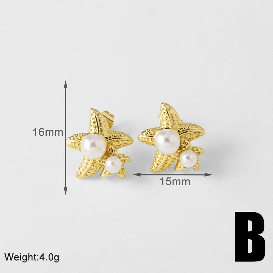 AS Jewelry Hot-Selling Pearl Ocean Style Copper Plated 18K Gold Starfish Turtle Earrings Studs Ert06