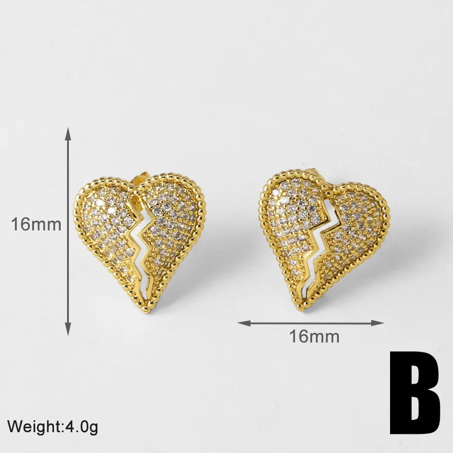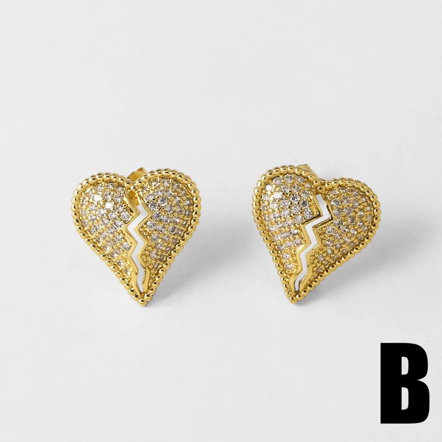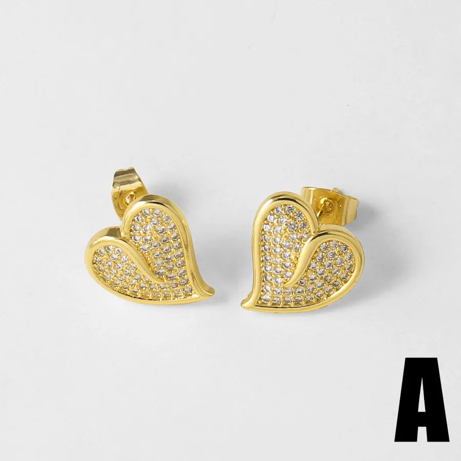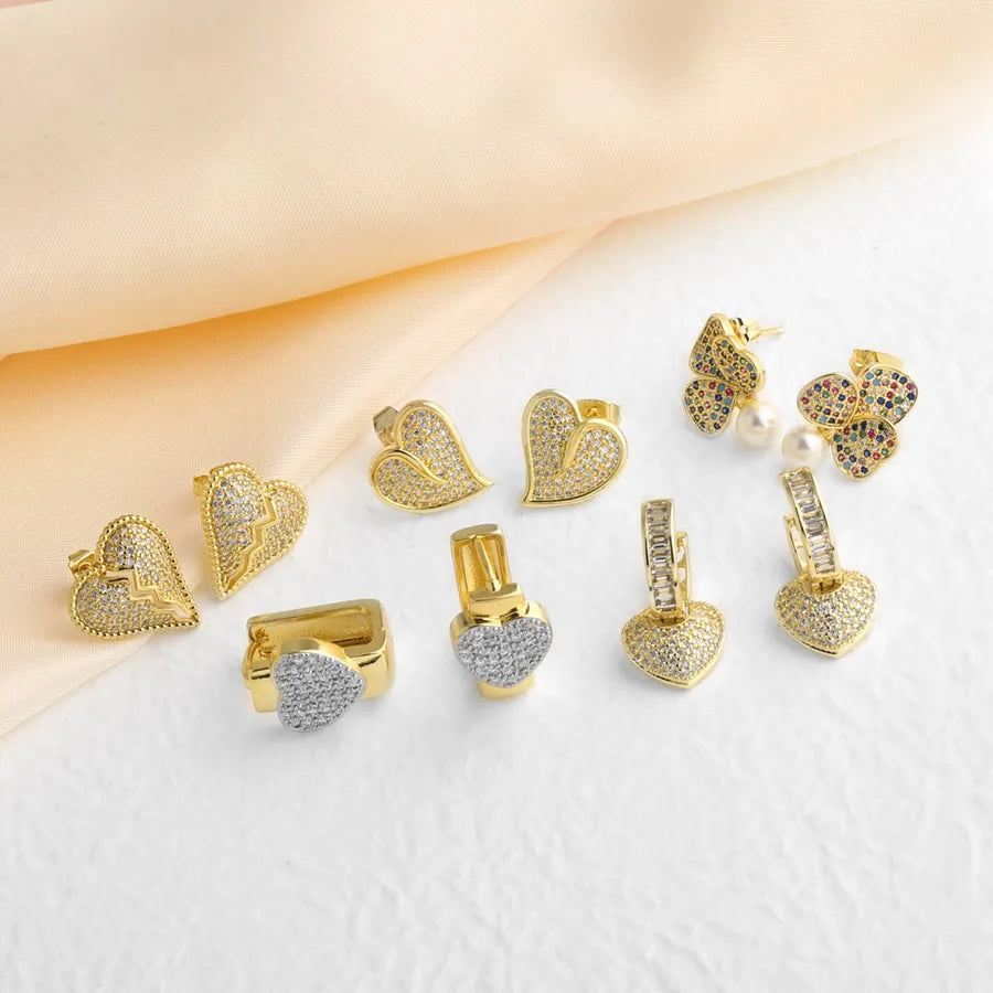 AS Jewelry Xiyin Hot-Selling Two-Tone Full Zircon Heart Earrings Copper Plated 18K Gold Stud Earrings Erv69