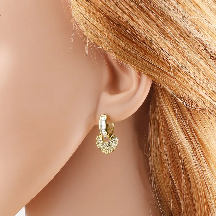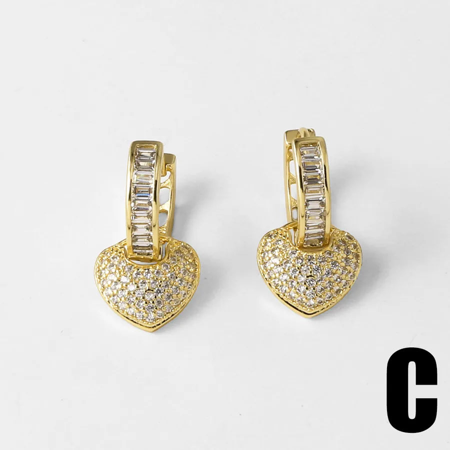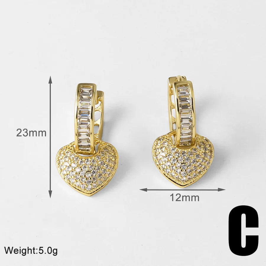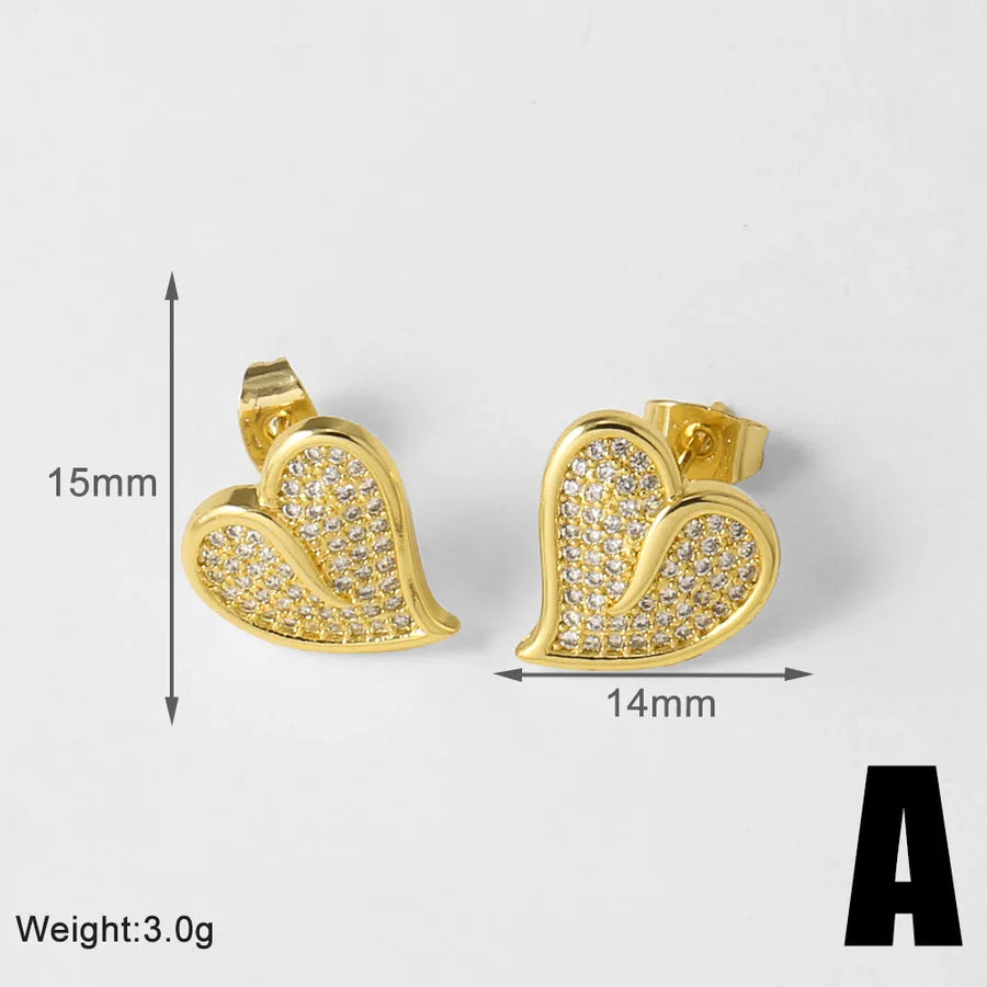 AS Jewelry Xiyin Hot-Selling Two-Tone Full Zircon Heart Earrings Copper Plated 18K Gold Stud Earrings Erv69