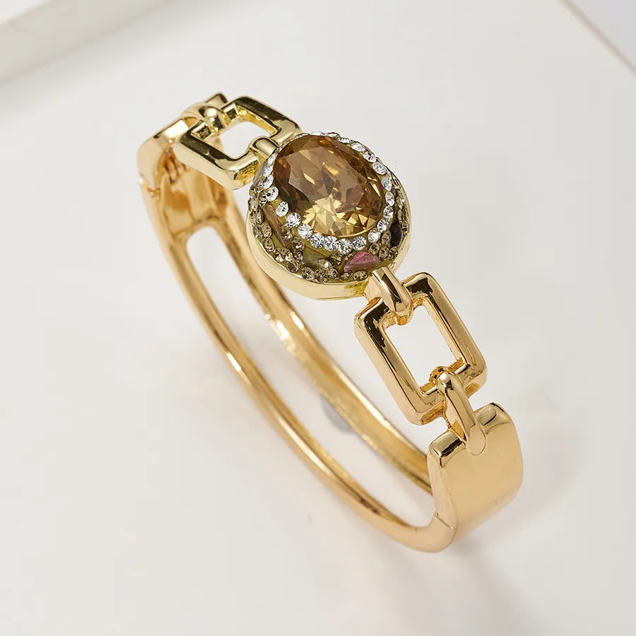 Long-Lasting Plated 14K Real Gold Plated Round Copper Casual Vintage Style Vacation Inlay Bangle