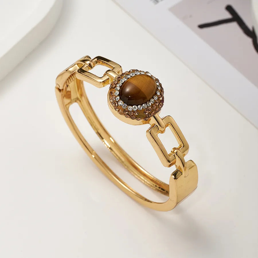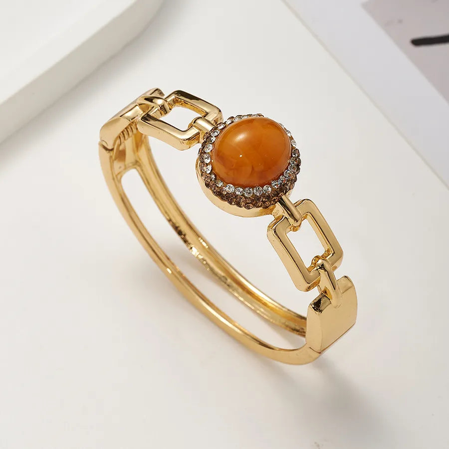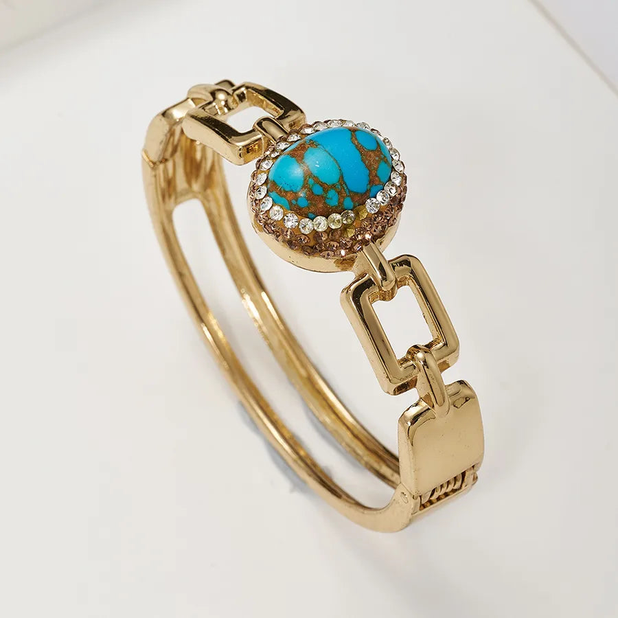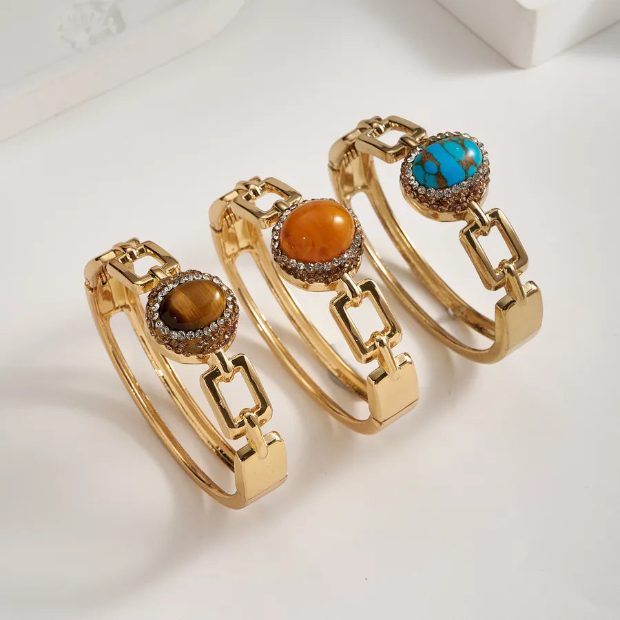 Long-Lasting Plated 14K Real Gold Plated Round Oval Copper Casual Vintage Style Vacation Inlay Bangle