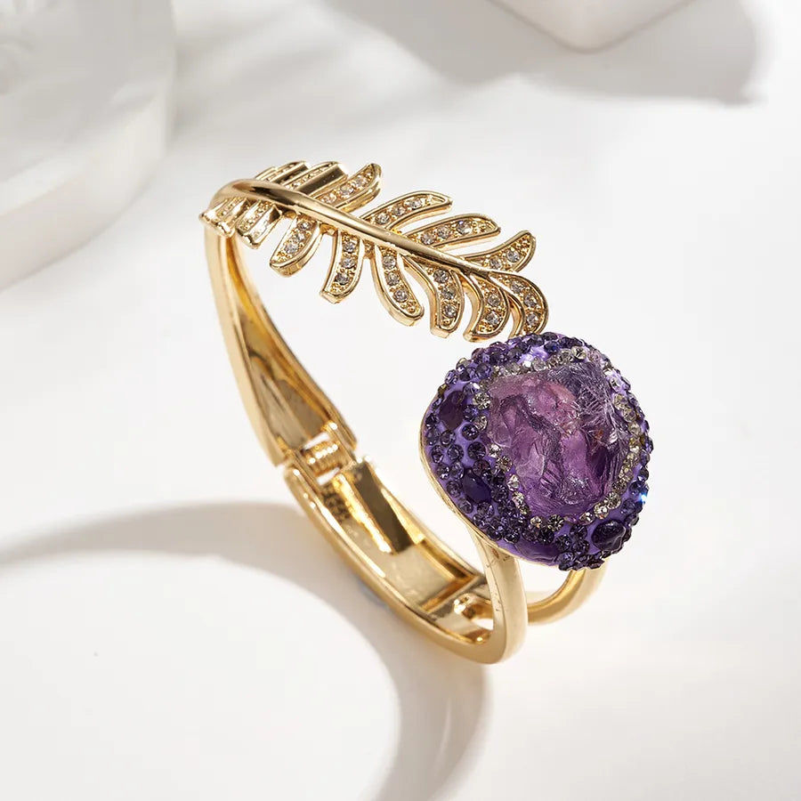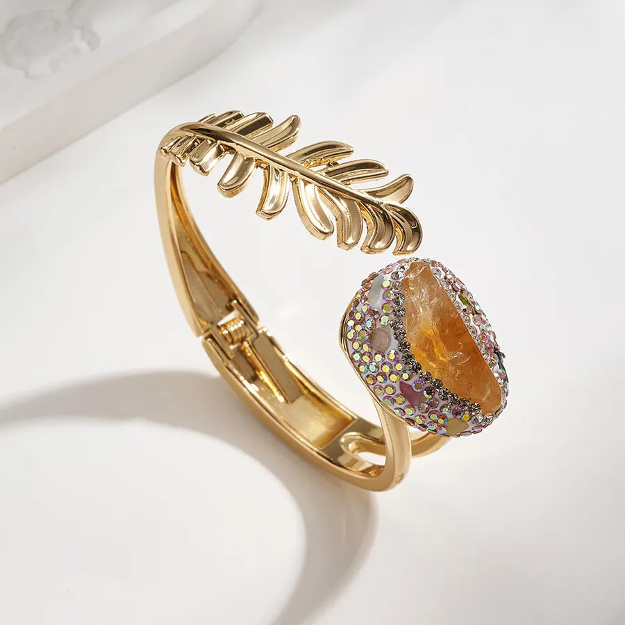 Long-Lasting Plated 14K Real Gold Plated Water Droplets Feather Copper Casual Vintage Style Vacation Inlay Bangle